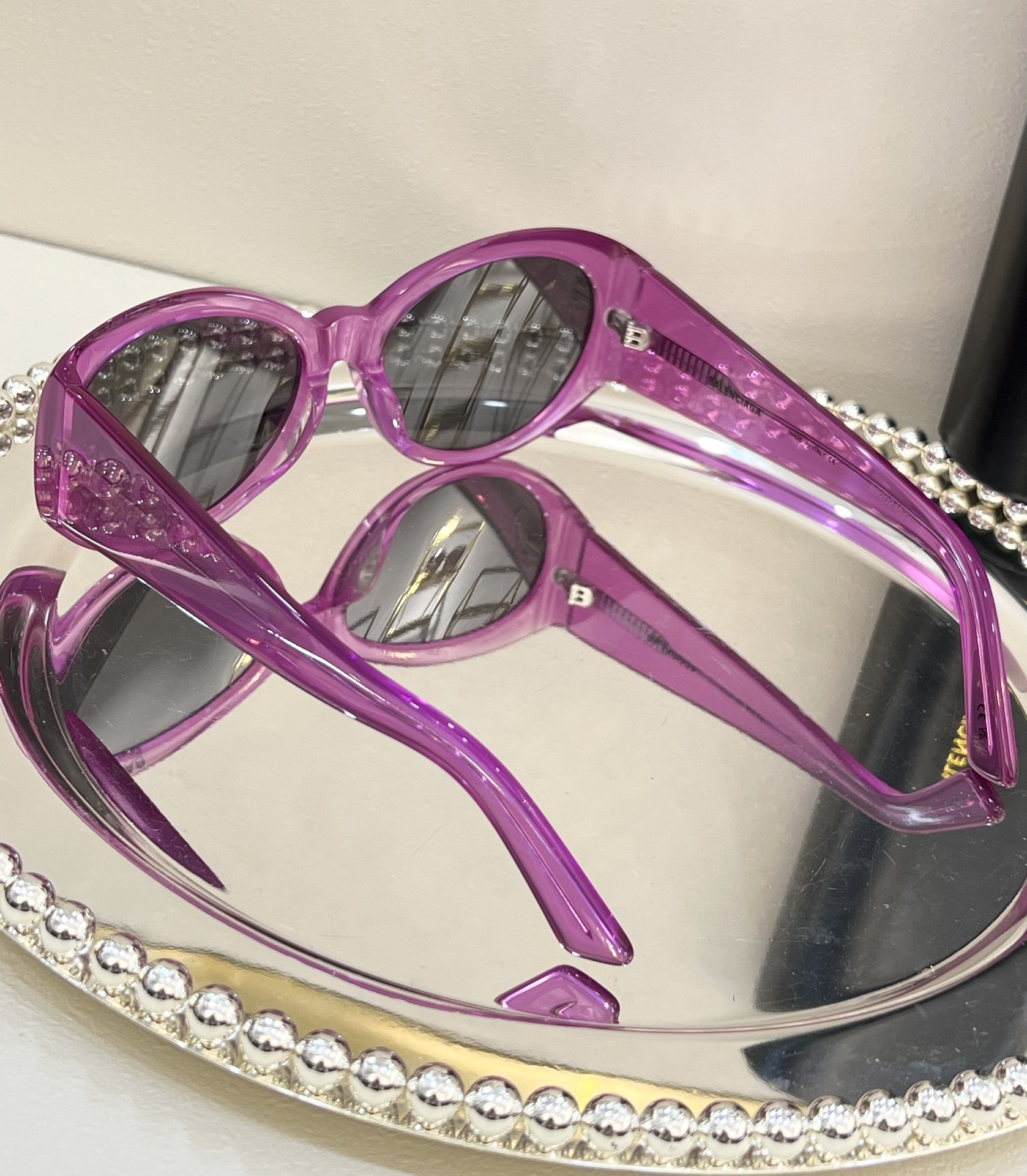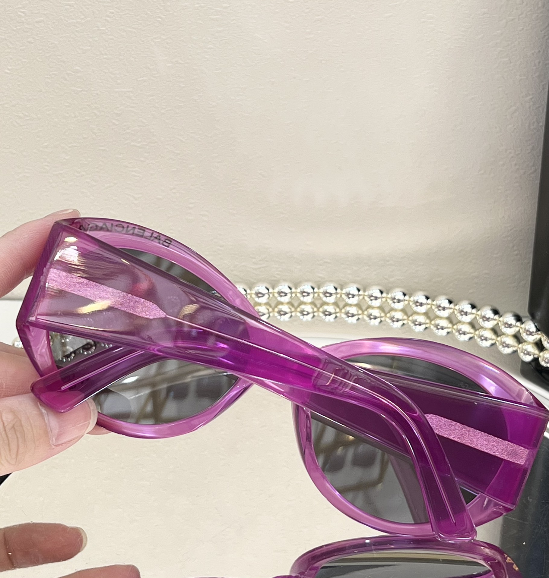 这款太阳眼镜是AAAAA 1:1 质量 (非常棒). 使用了和原版一模一样的材料. 商标部分也保持了和巴黎世家/Balenciaga一样. 图片拍摄是实物太阳眼镜拍摄, 您所收到的实物保证和我们图片一模一样.