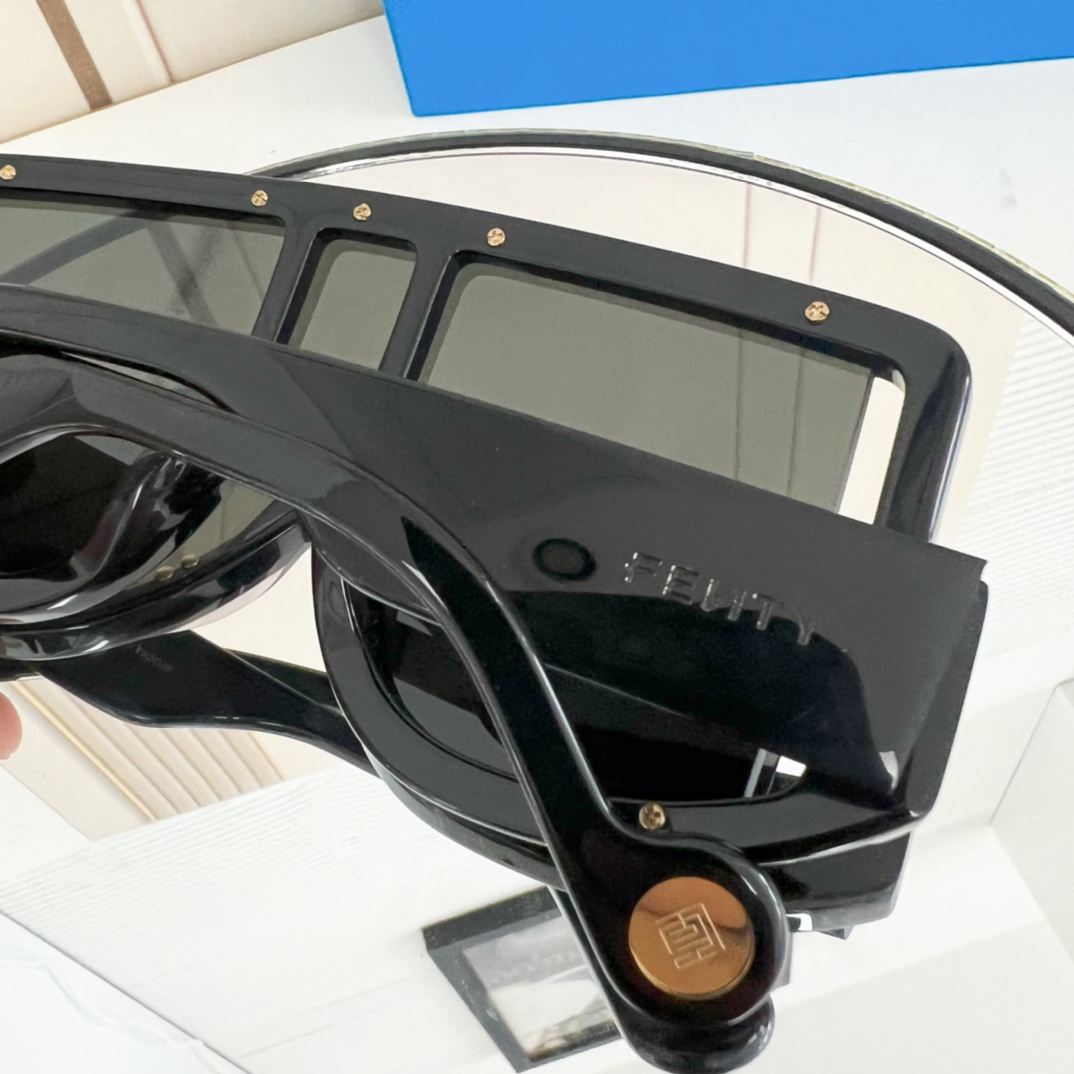 这款太阳眼镜是AAAAA 1:1 质量 (非常棒). 使用了和原版一模一样的材料. 商标部分也保持了和FENTY一样. 图片拍摄是实物太阳眼镜拍摄, 您所收到的实物保证和我们图片一模一样.