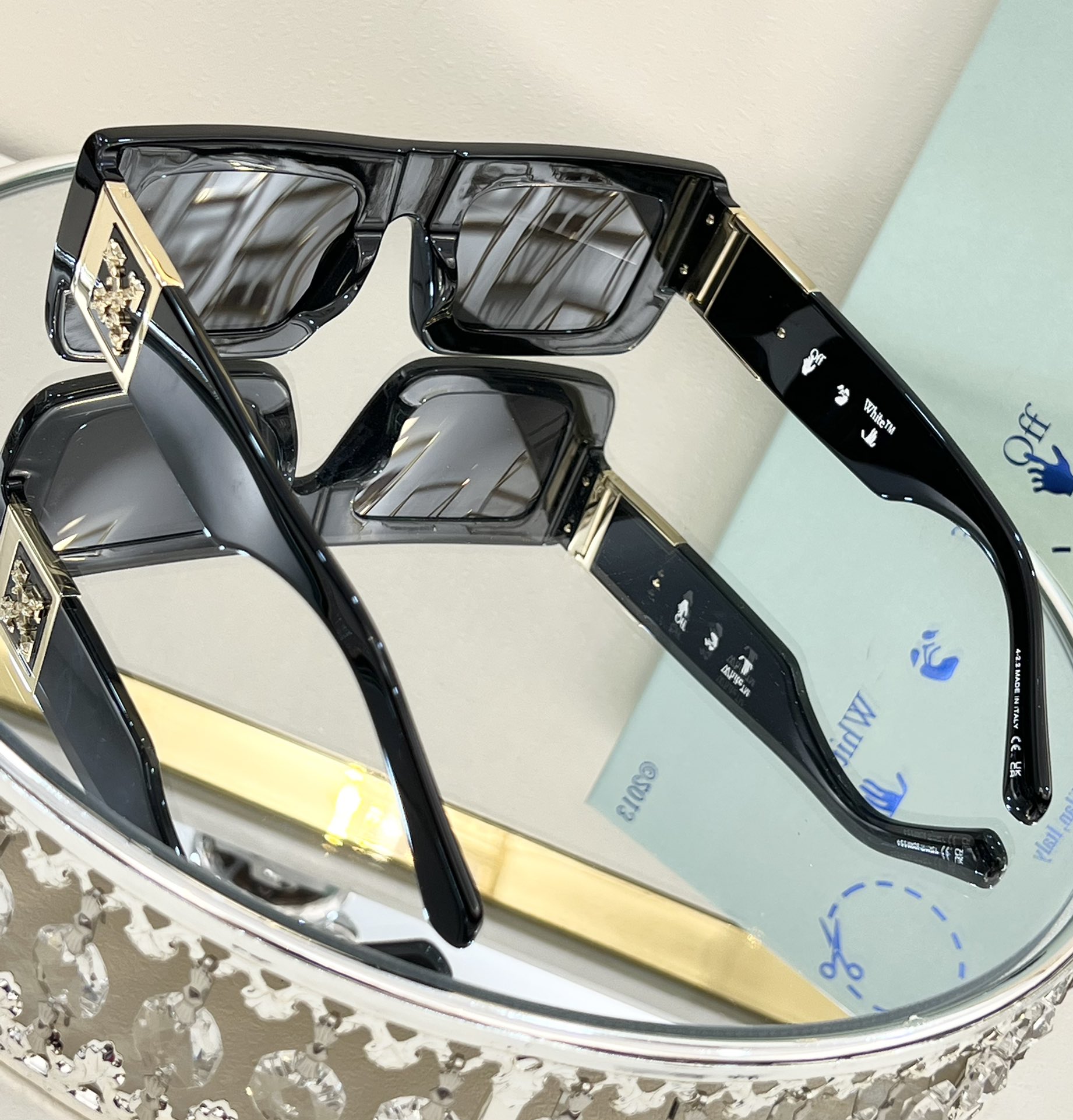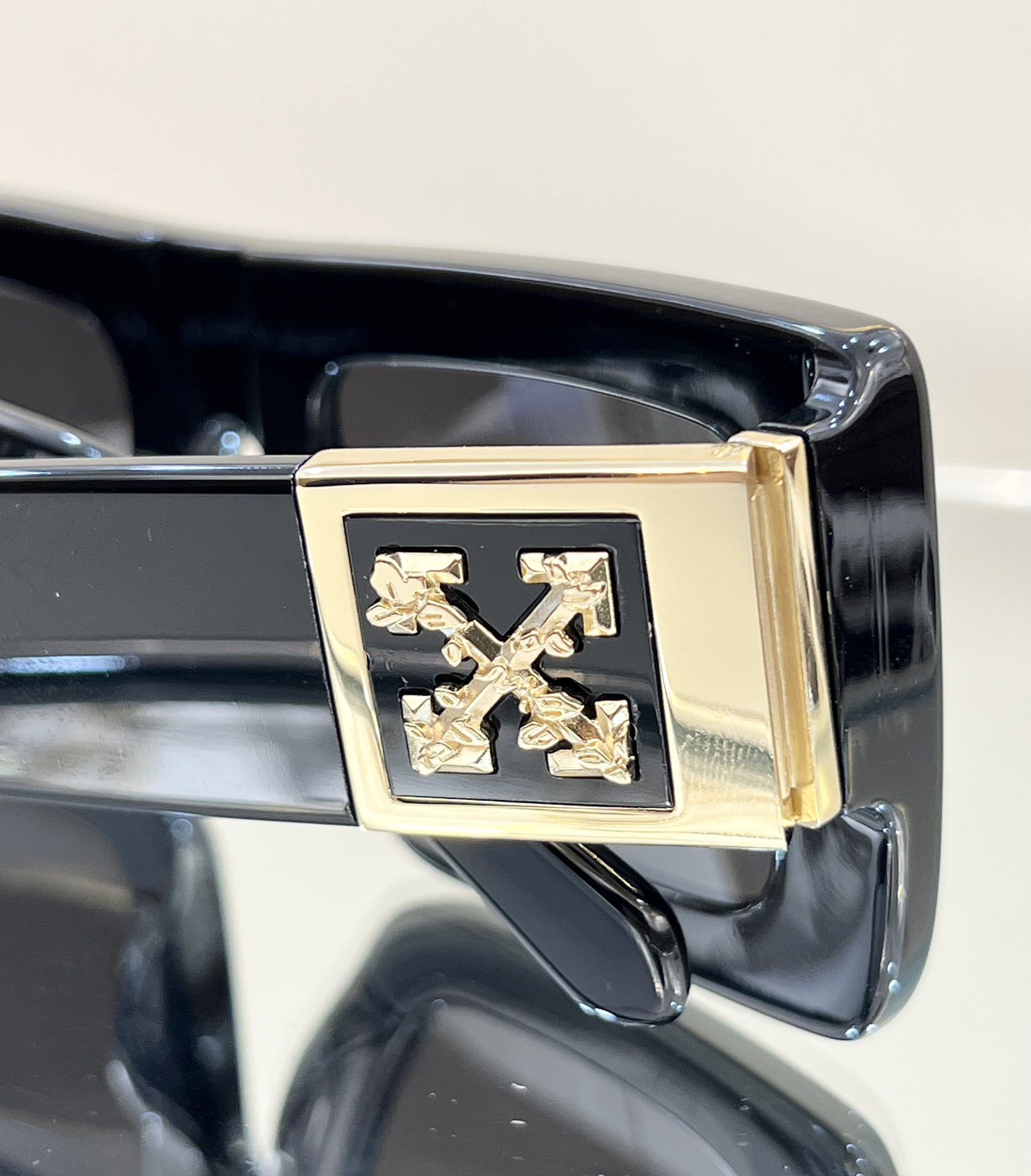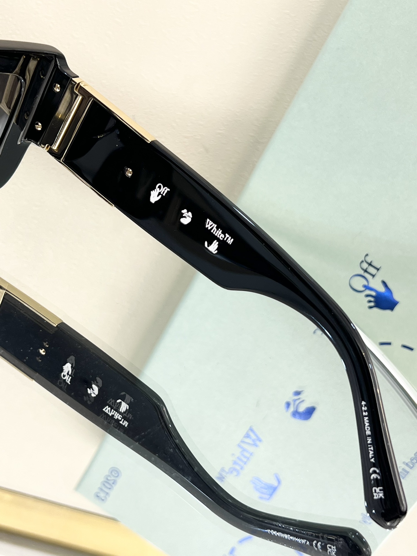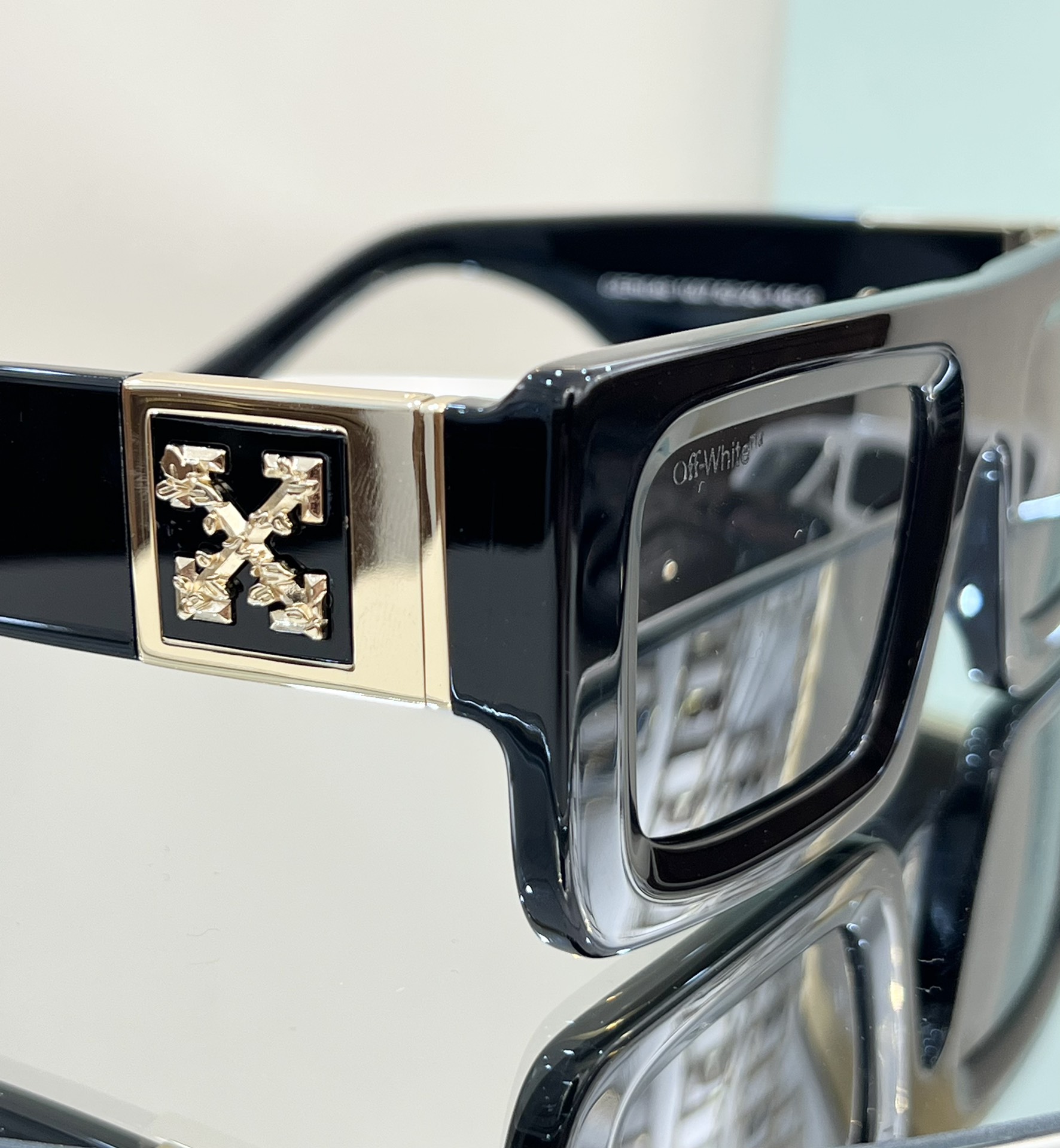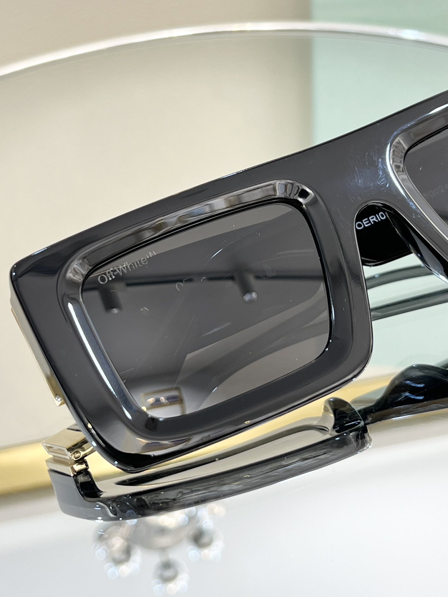 这款太阳眼镜是AAAAA 1:1 质量 (非常棒). 使用了和原版一模一样的材料. 商标部分也保持了和OFF WHITE一样. 图片拍摄是实物太阳眼镜拍摄, 您所收到的实物保证和我们图片一模一样.