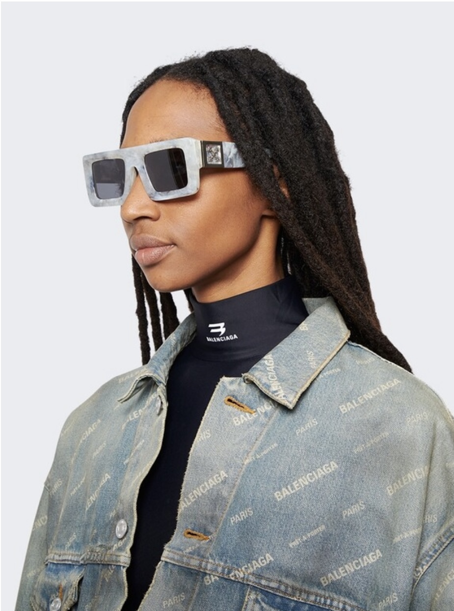 这款太阳眼镜是AAAAA 1:1 质量 (非常棒). 使用了和原版一模一样的材料. 商标部分也保持了和OFF WHITE一样. 图片拍摄是实物太阳眼镜拍摄, 您所收到的实物保证和我们图片一模一样.