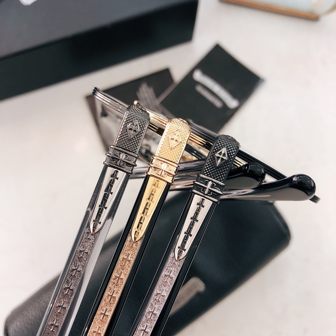 这款太阳眼镜是AAAAA 1:1 质量 (非常棒). 使用了和原版一模一样的材料. 商标部分也保持了和克罗心/Chrome Hearts一样. 图片拍摄是实物太阳眼镜拍摄, 您所收到的实物保证和我们图片一模一样.