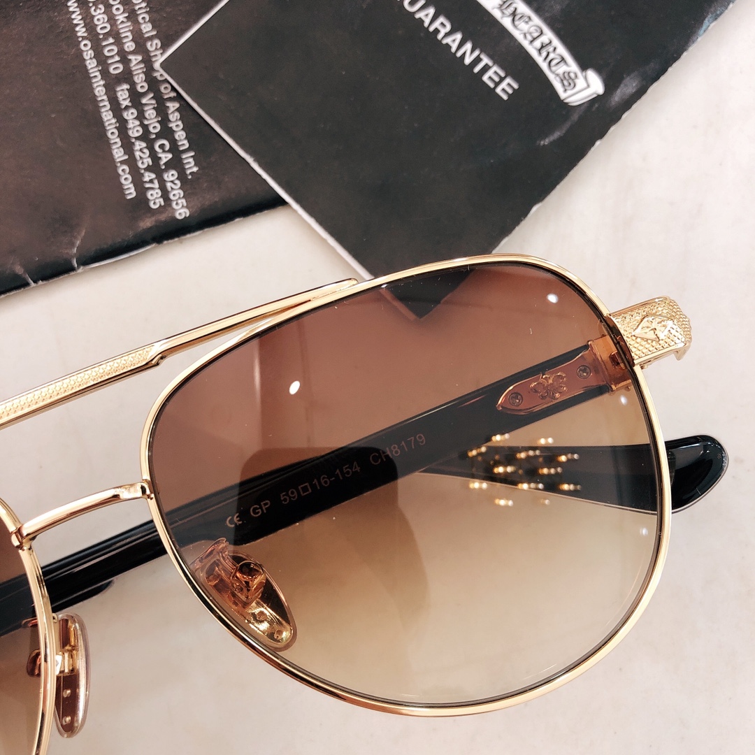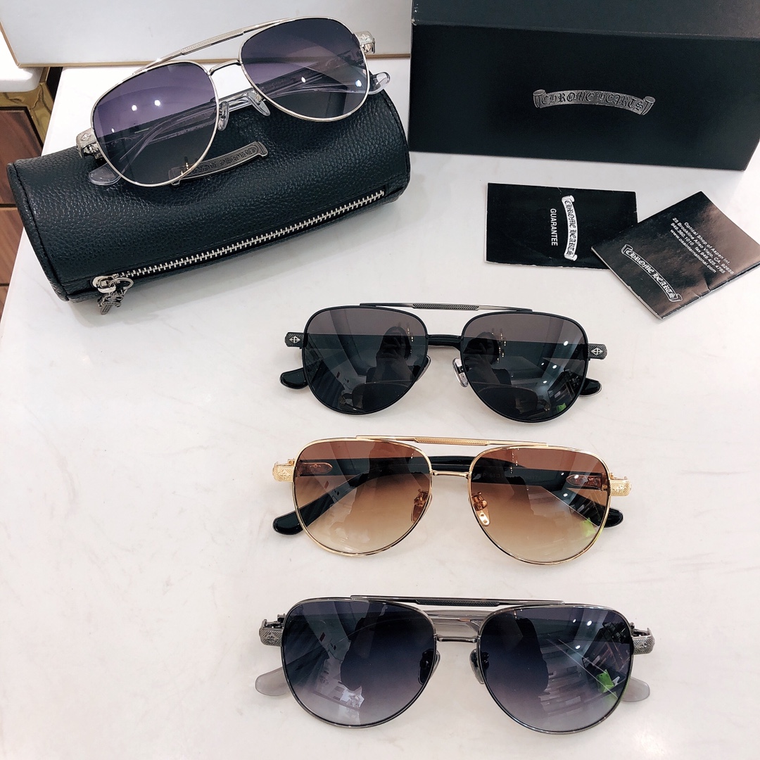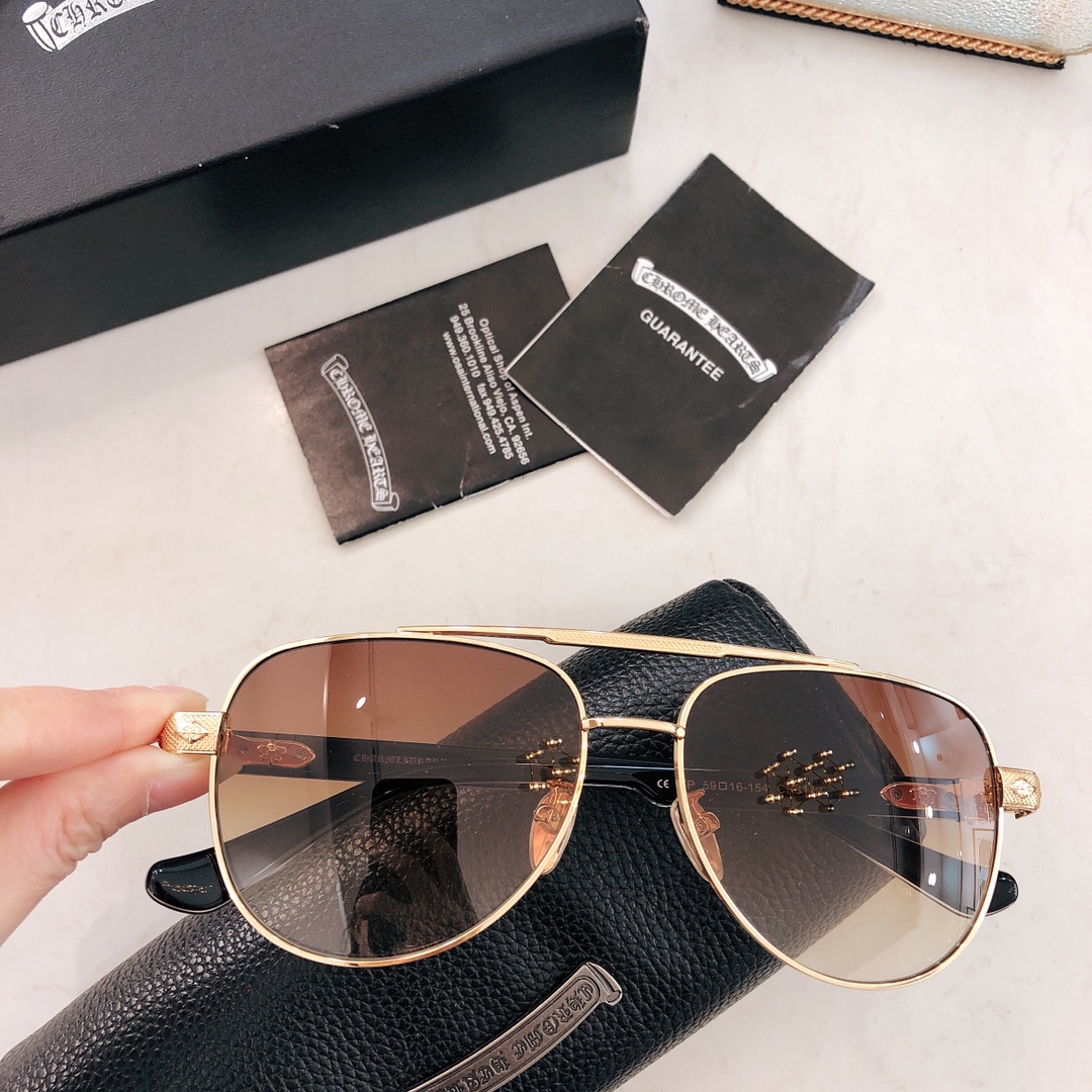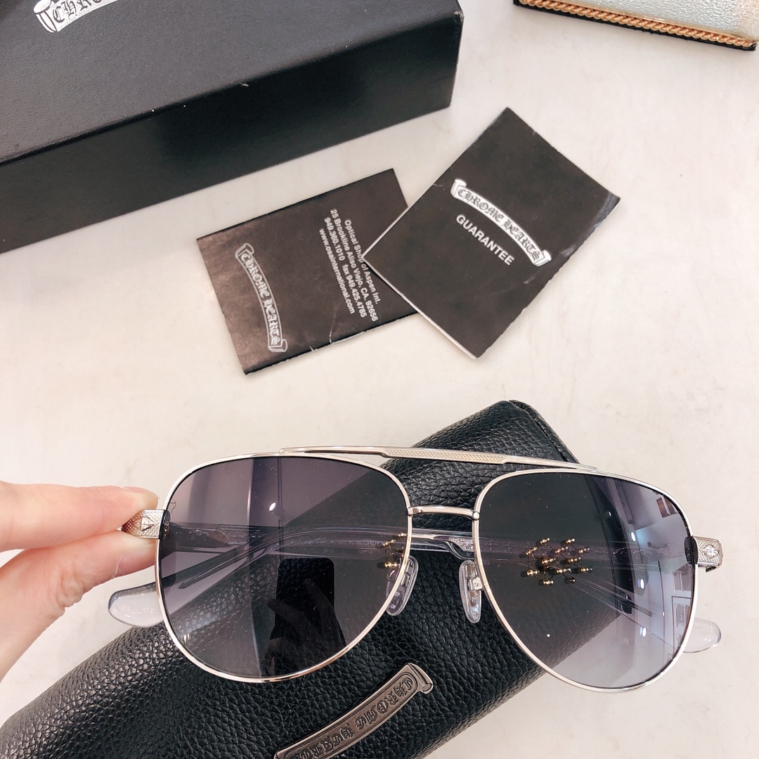 这款太阳眼镜是AAAAA 1:1 质量 (非常棒). 使用了和原版一模一样的材料. 商标部分也保持了和克罗心/Chrome Hearts一样. 图片拍摄是实物太阳眼镜拍摄, 您所收到的实物保证和我们图片一模一样.