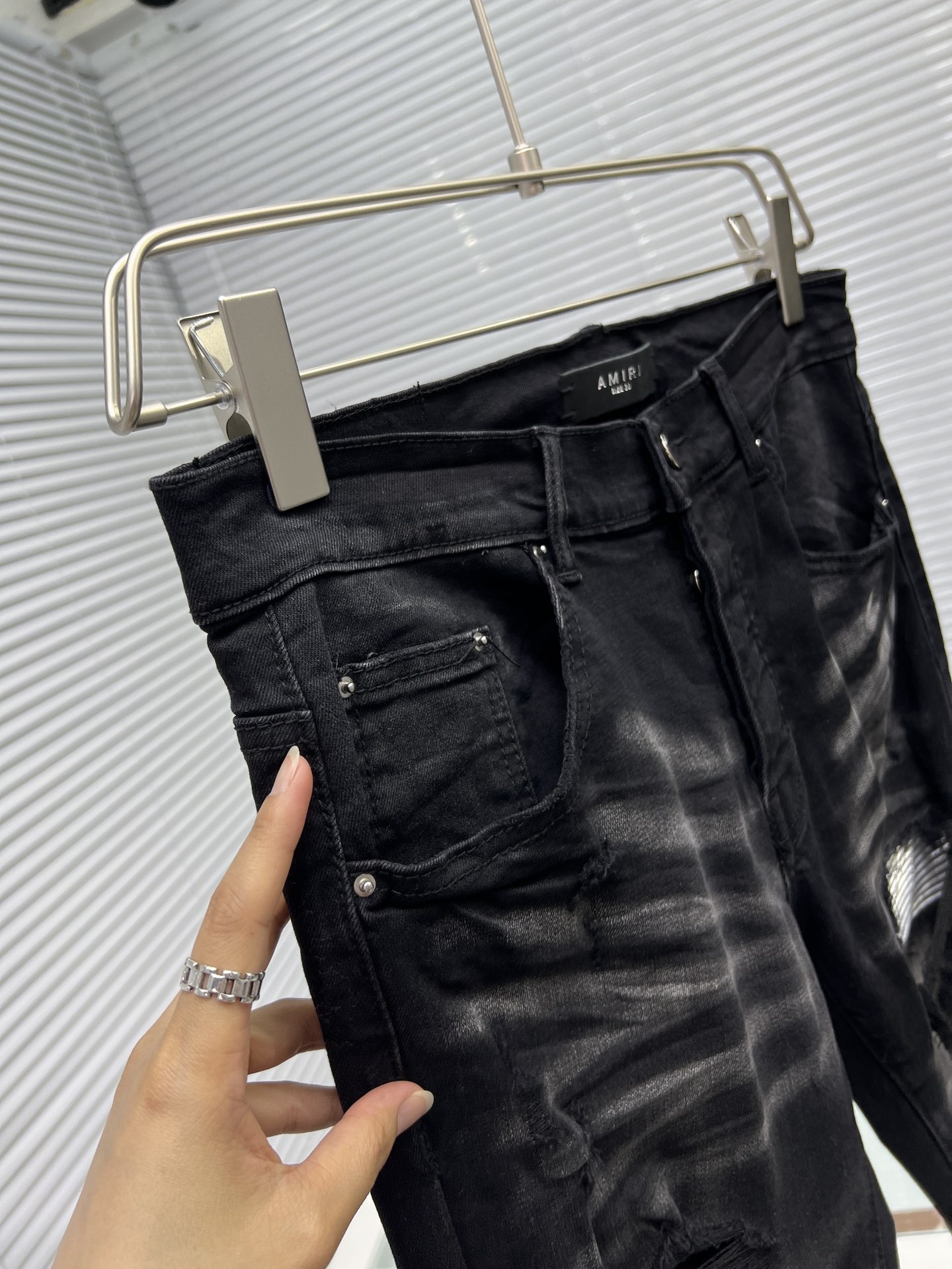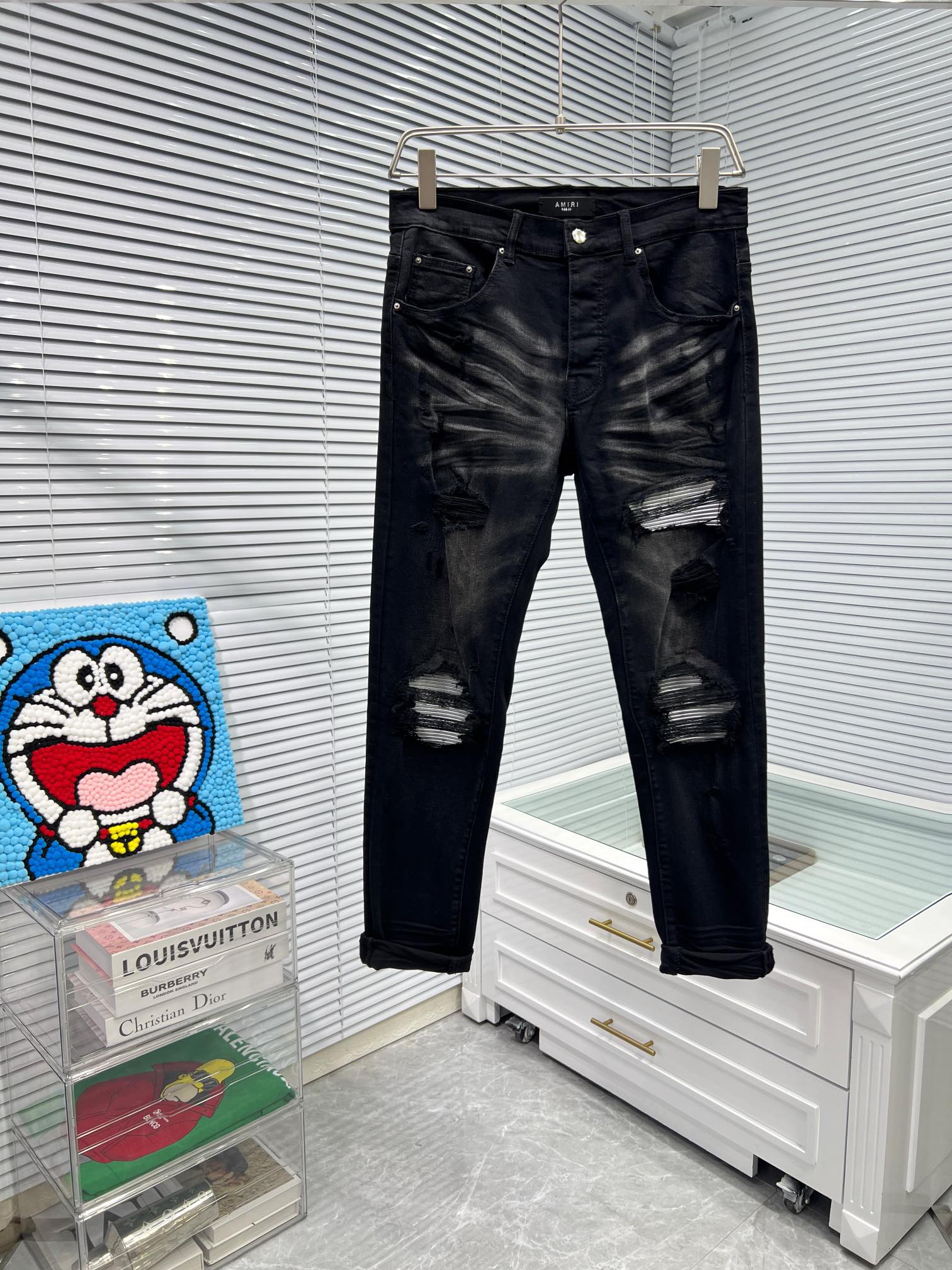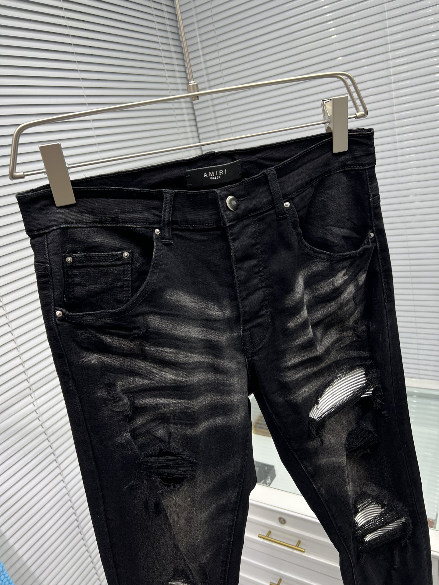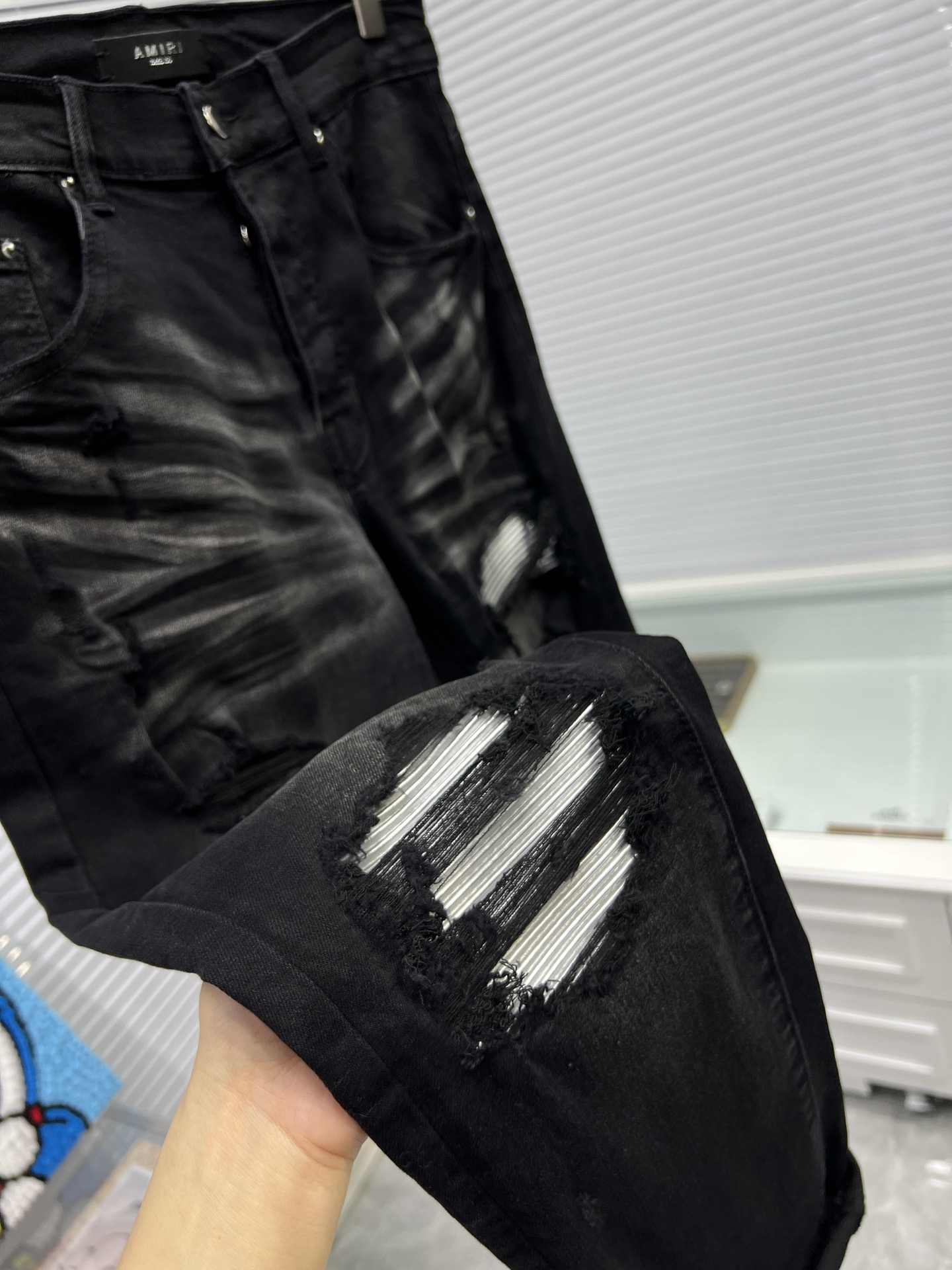 这款衣服是AAAAA 1:1 质量 (非常棒). 使用了和原版一模一样的材料. 商标部分也保持了和AMIRI一样. 图片拍摄是实物衣服拍摄, 您所收到的实物保证和我们图片一模一样.