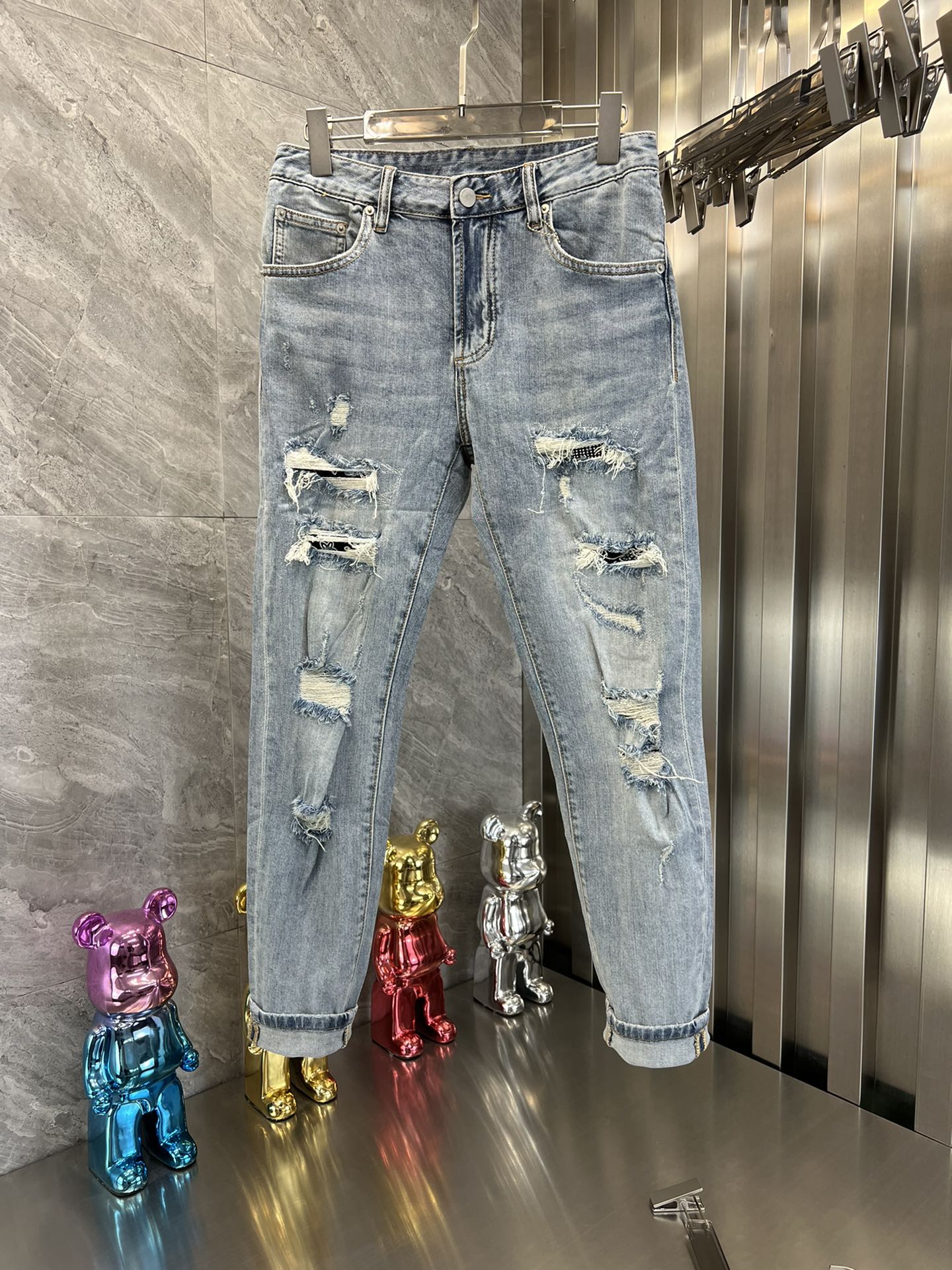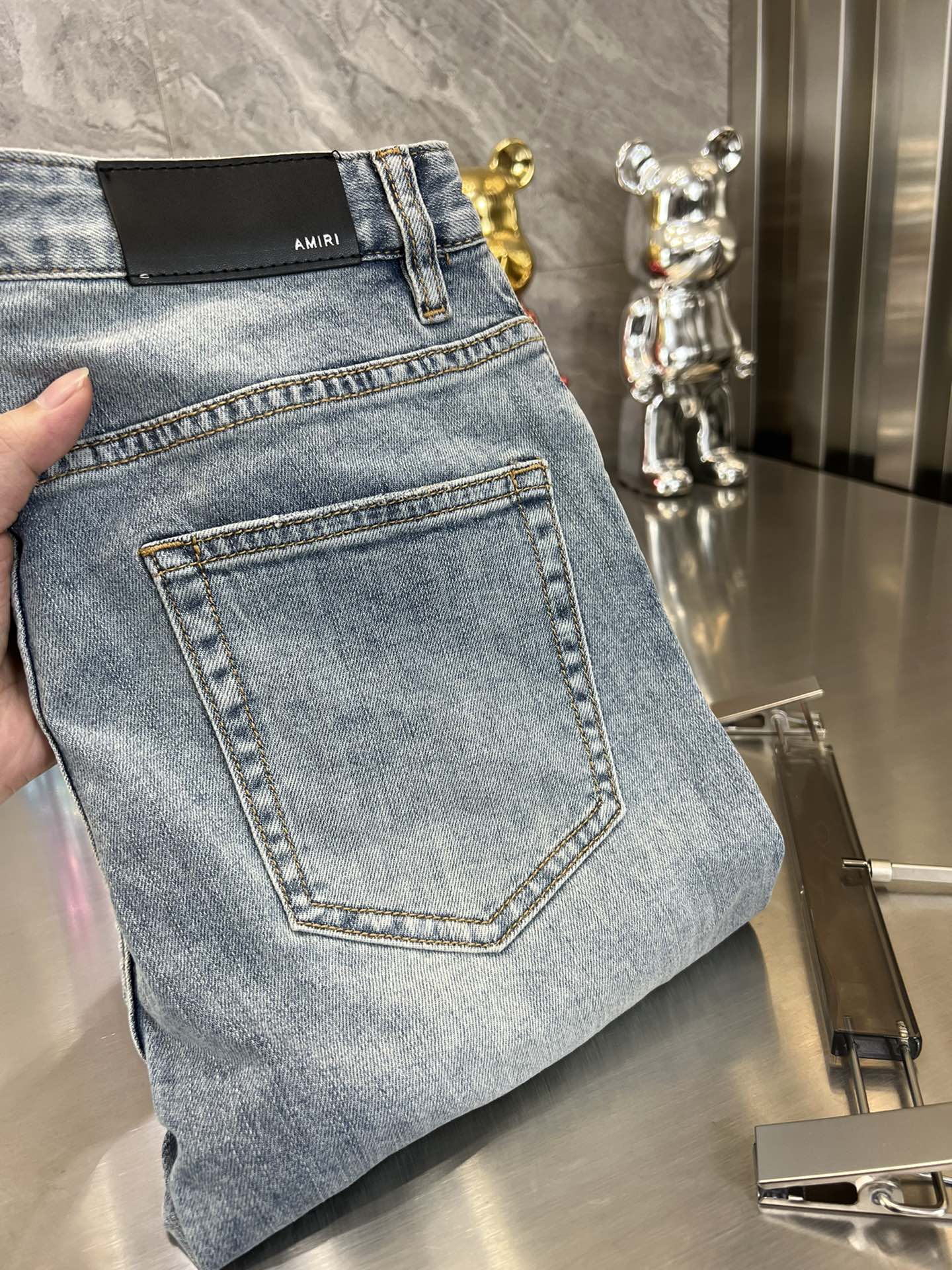 这款衣服是AAAAA 1:1 质量 (非常棒). 使用了和原版一模一样的材料. 商标部分也保持了和AMIRI一样. 图片拍摄是实物衣服拍摄, 您所收到的实物保证和我们图片一模一样.