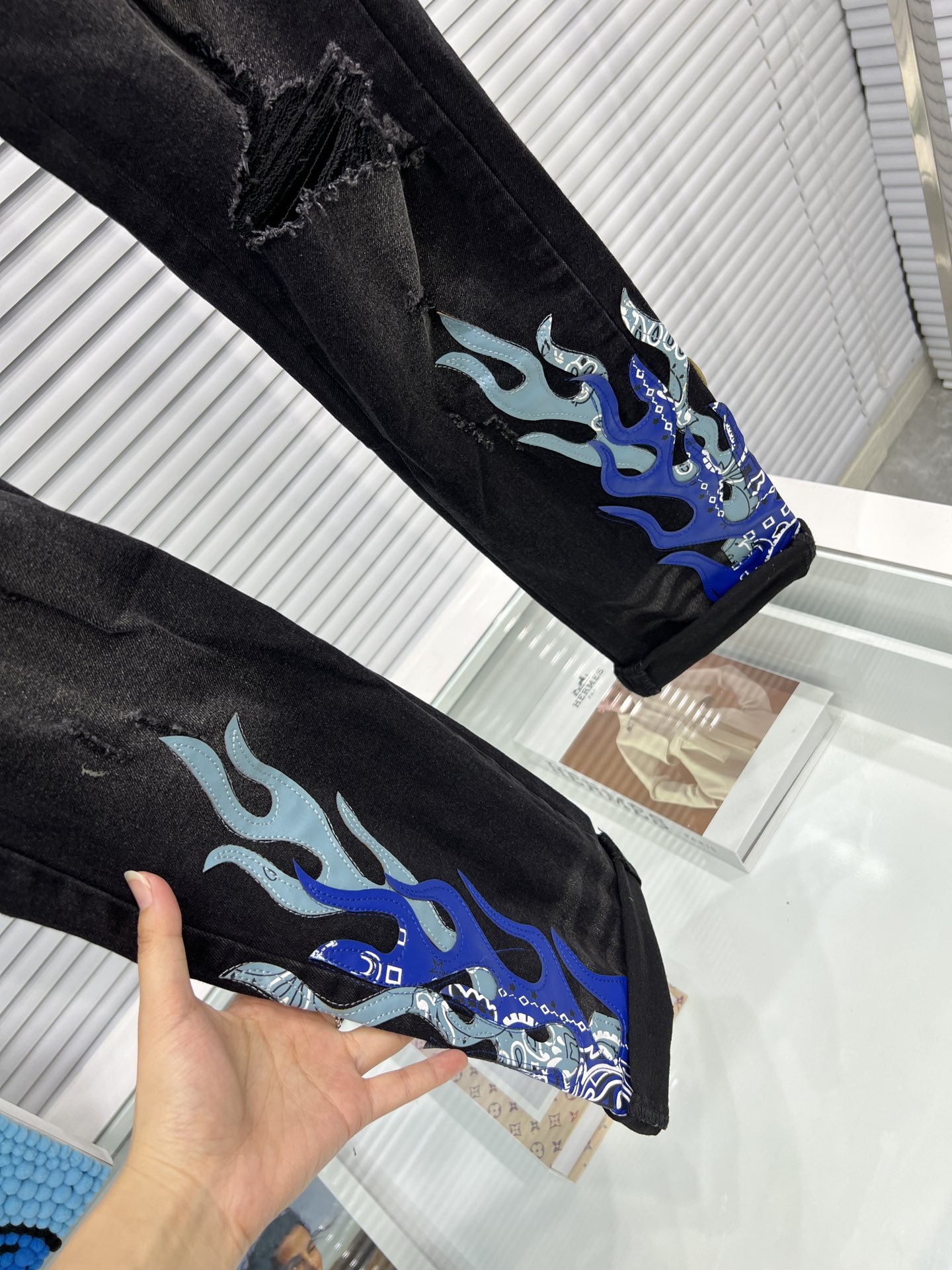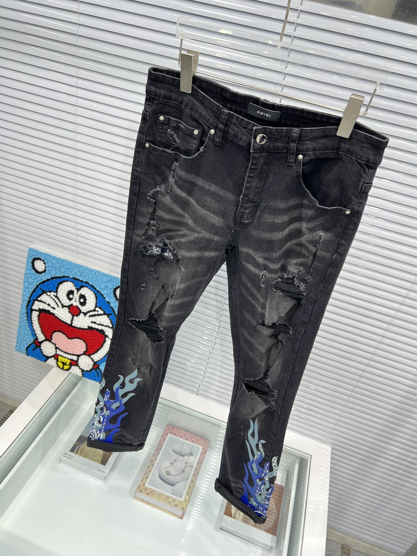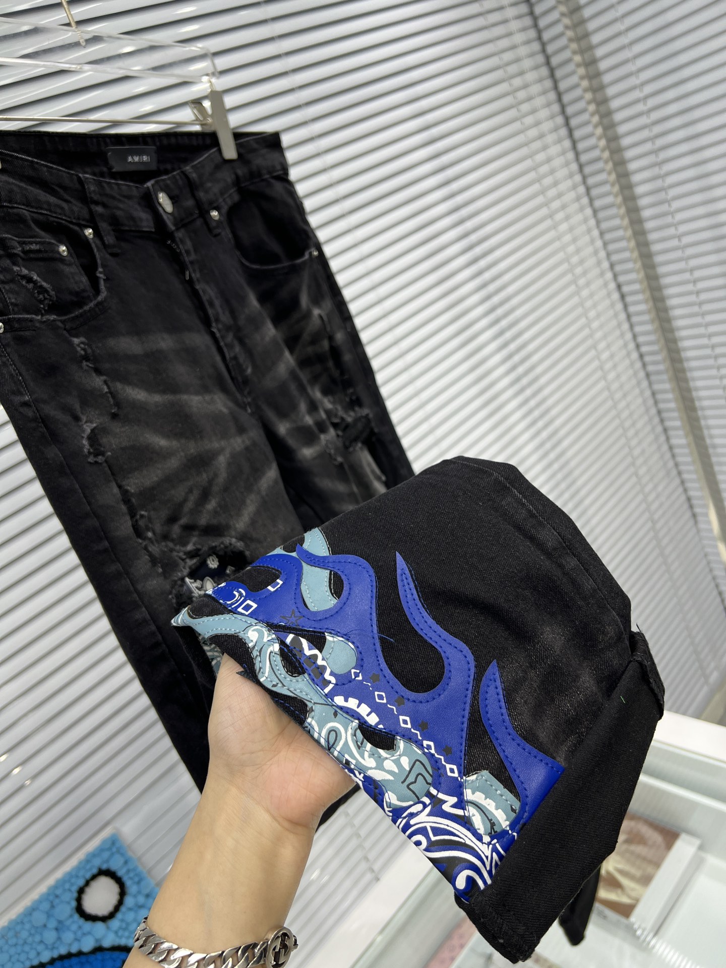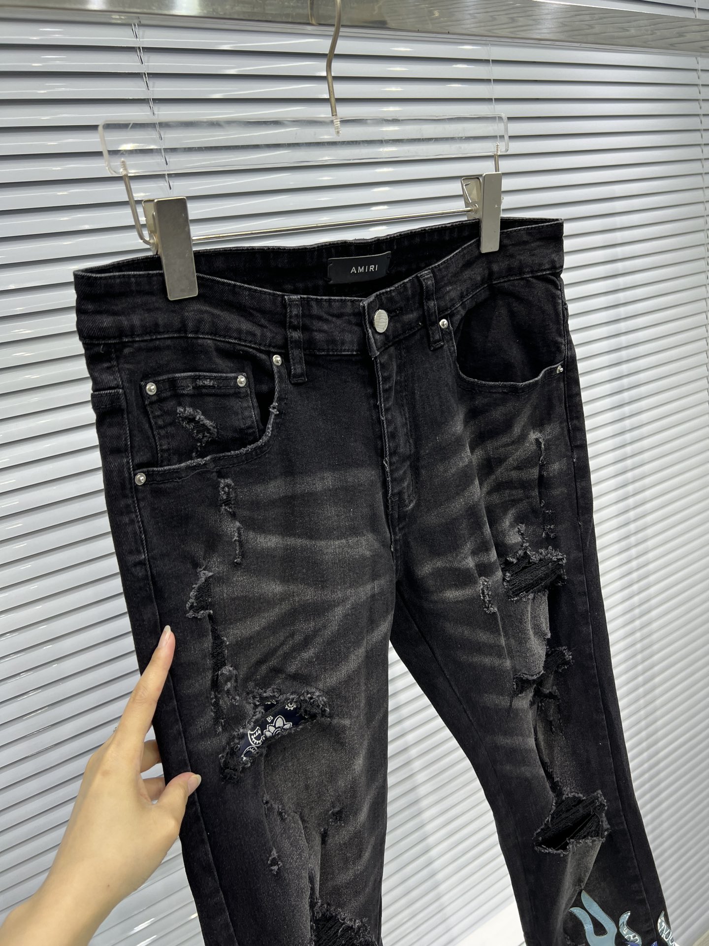 这款衣服是AAAAA 1:1 质量 (非常棒). 使用了和原版一模一样的材料. 商标部分也保持了和AMIRI一样. 图片拍摄是实物衣服拍摄, 您所收到的实物保证和我们图片一模一样.
