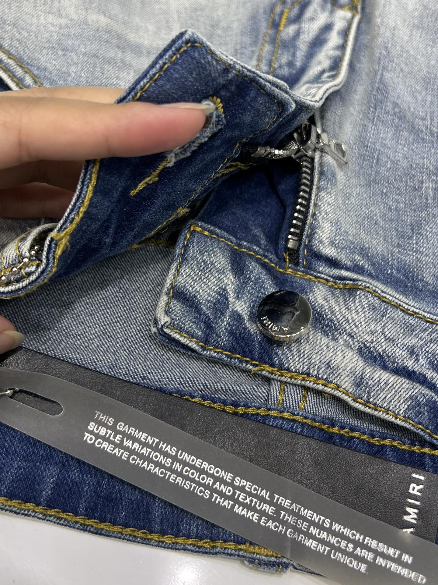 这款衣服是AAAAA 1:1 质量 (非常棒). 使用了和原版一模一样的材料. 商标部分也保持了和AMIRI一样. 图片拍摄是实物衣服拍摄, 您所收到的实物保证和我们图片一模一样.