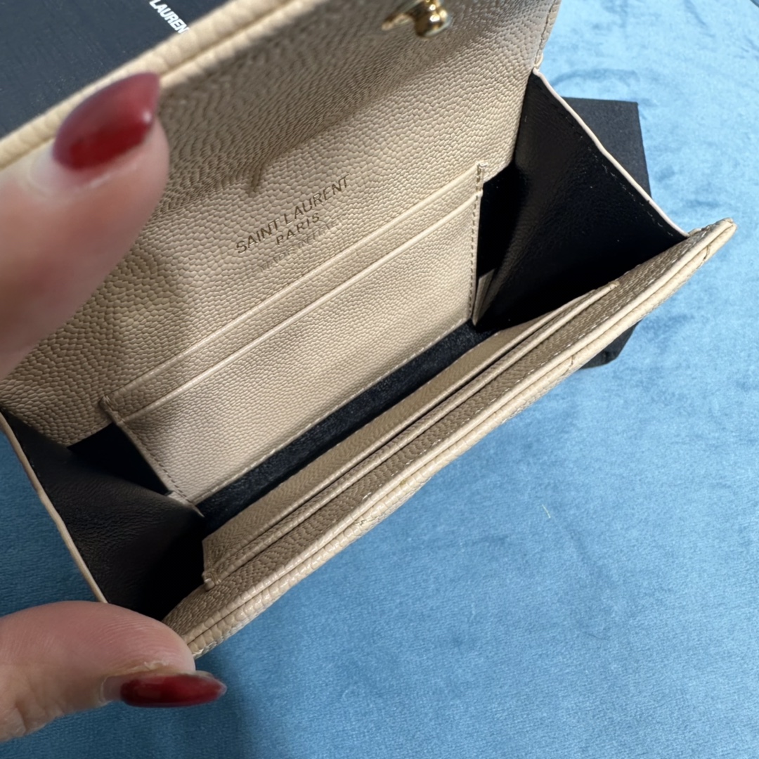 这款钱包是AAAAA 1:1 质量 (非常棒). 使用了和原版一模一样的材料. 商标部分也保持了和圣罗兰/Saint Laurent一样. 图片拍摄是实物钱包拍摄, 您所收到的实物保证和我们图片一模一样.