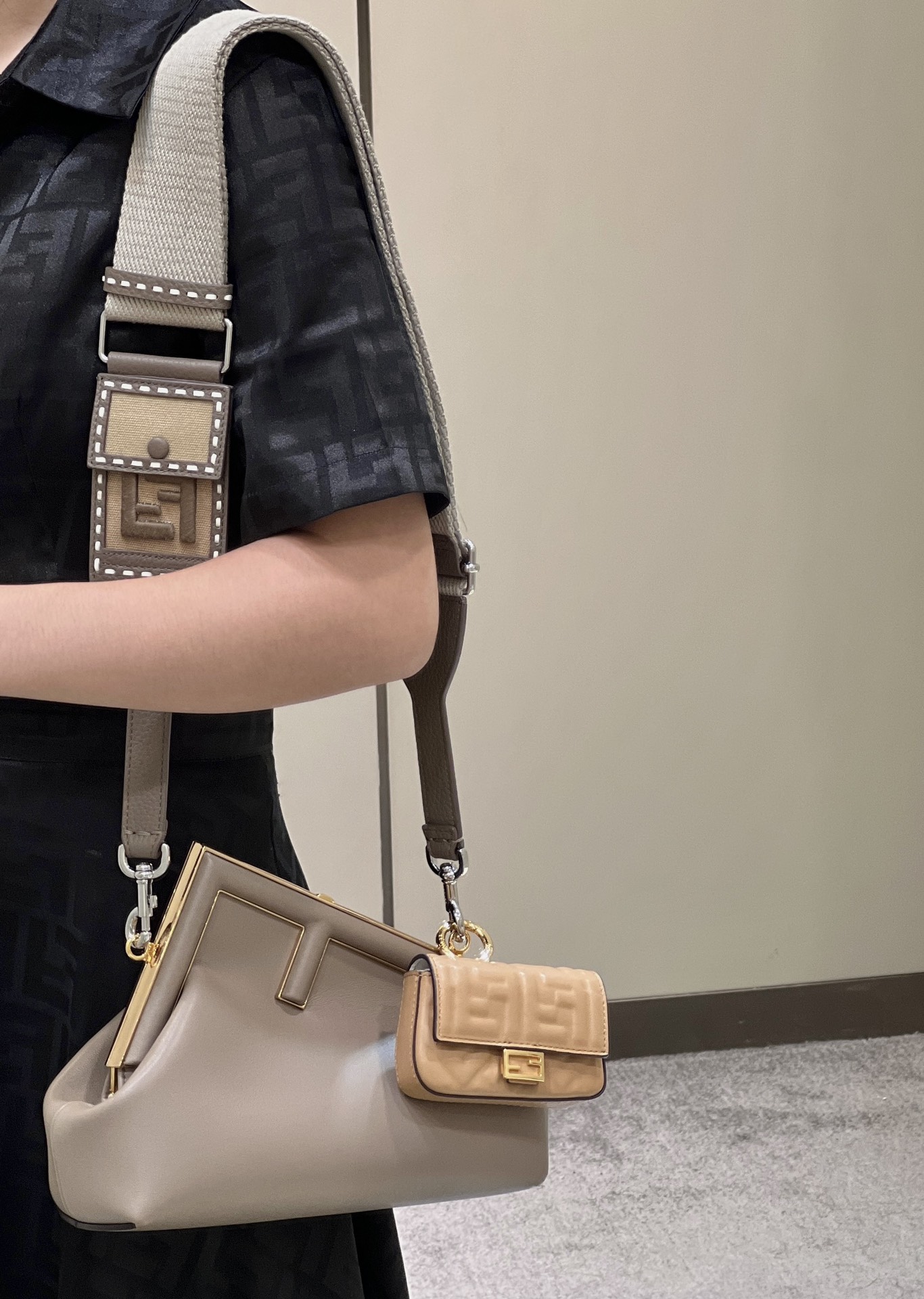 这款包包是AAAAA 1:1 质量 (非常棒). 使用了和原版一模一样的材料. 商标部分也保持了和芬迪/Fendi一样. 图片拍摄是实物包包拍摄, 您所收到的实物保证和我们图片一模一样.