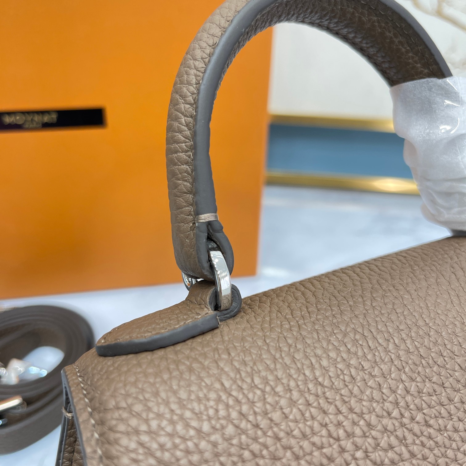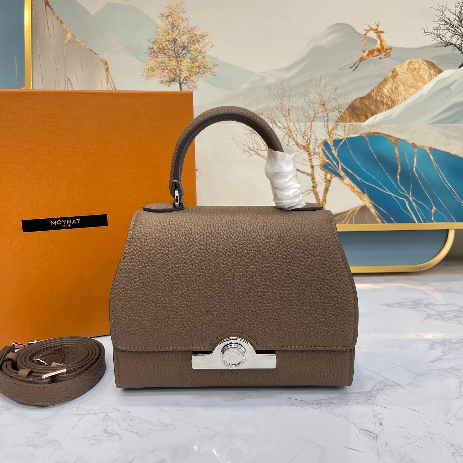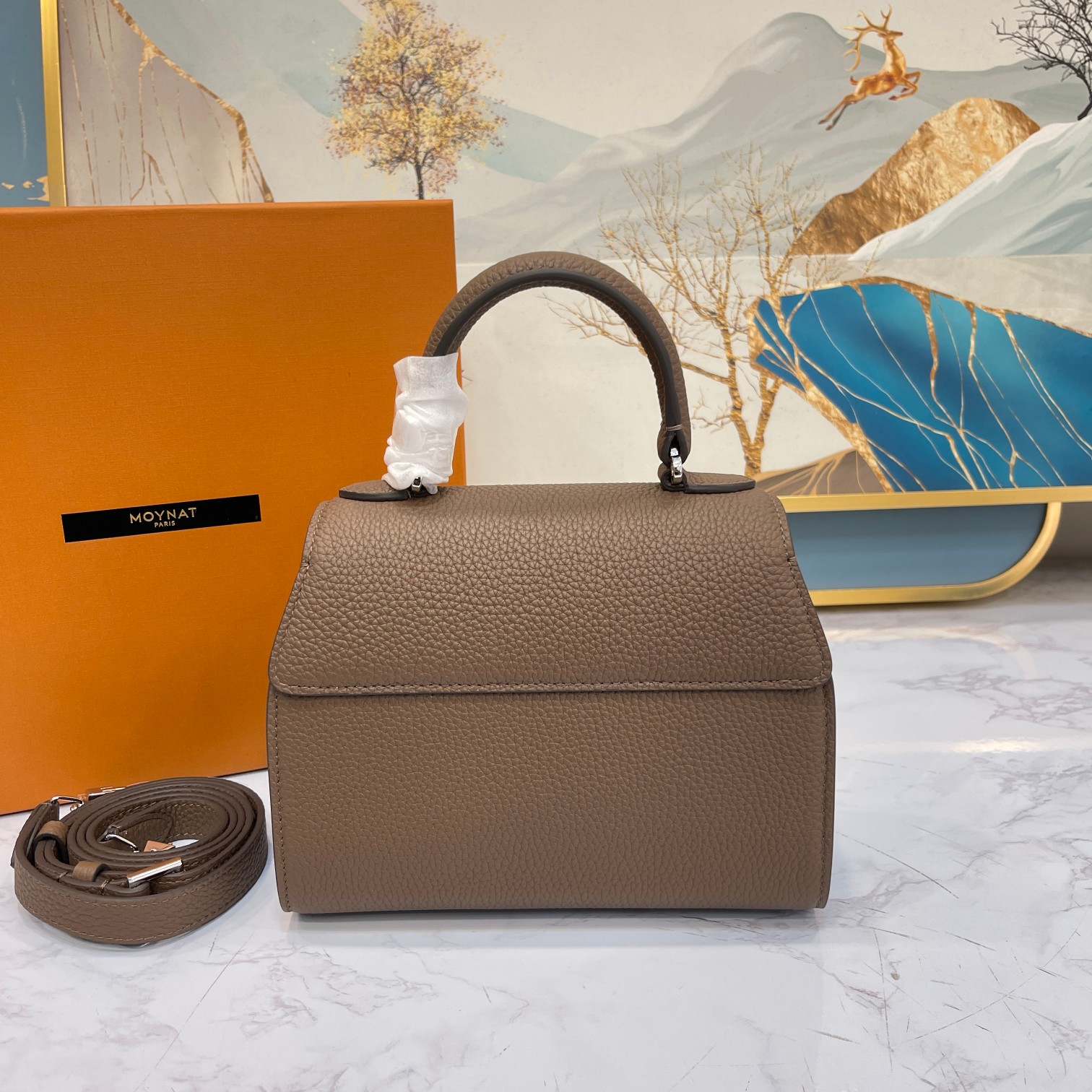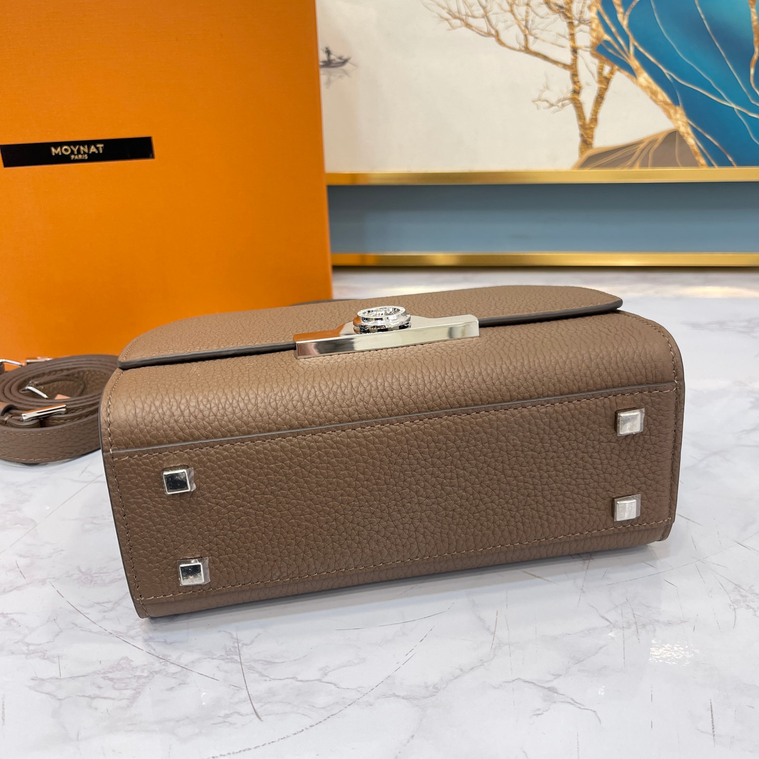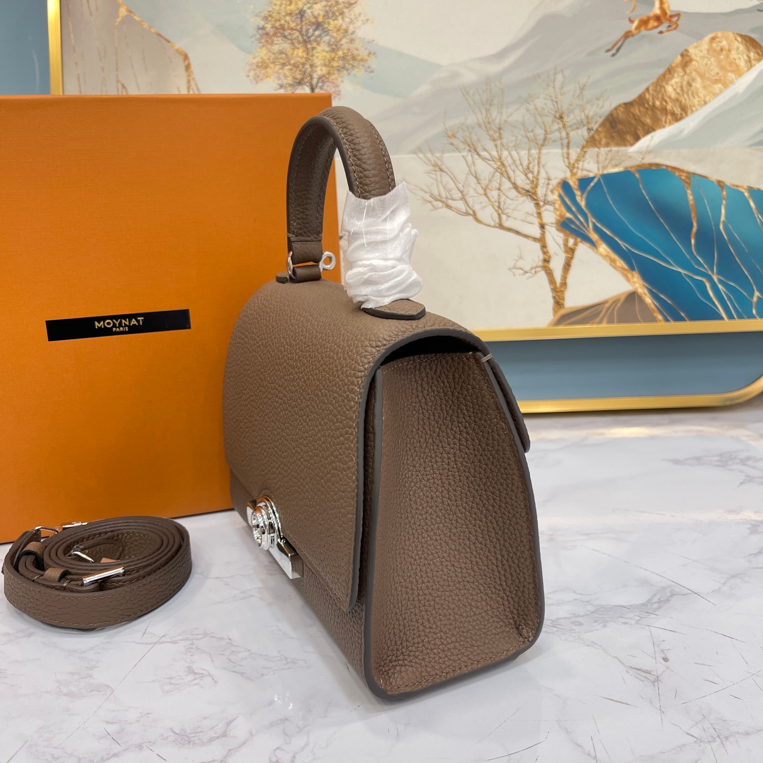这款包包是AAAAA 1:1 质量 (非常棒). 使用了和原版一模一样的材料. 商标部分也保持了和MOYNAT一样. 图片拍摄是实物包包拍摄, 您所收到的实物保证和我们图片一模一样.