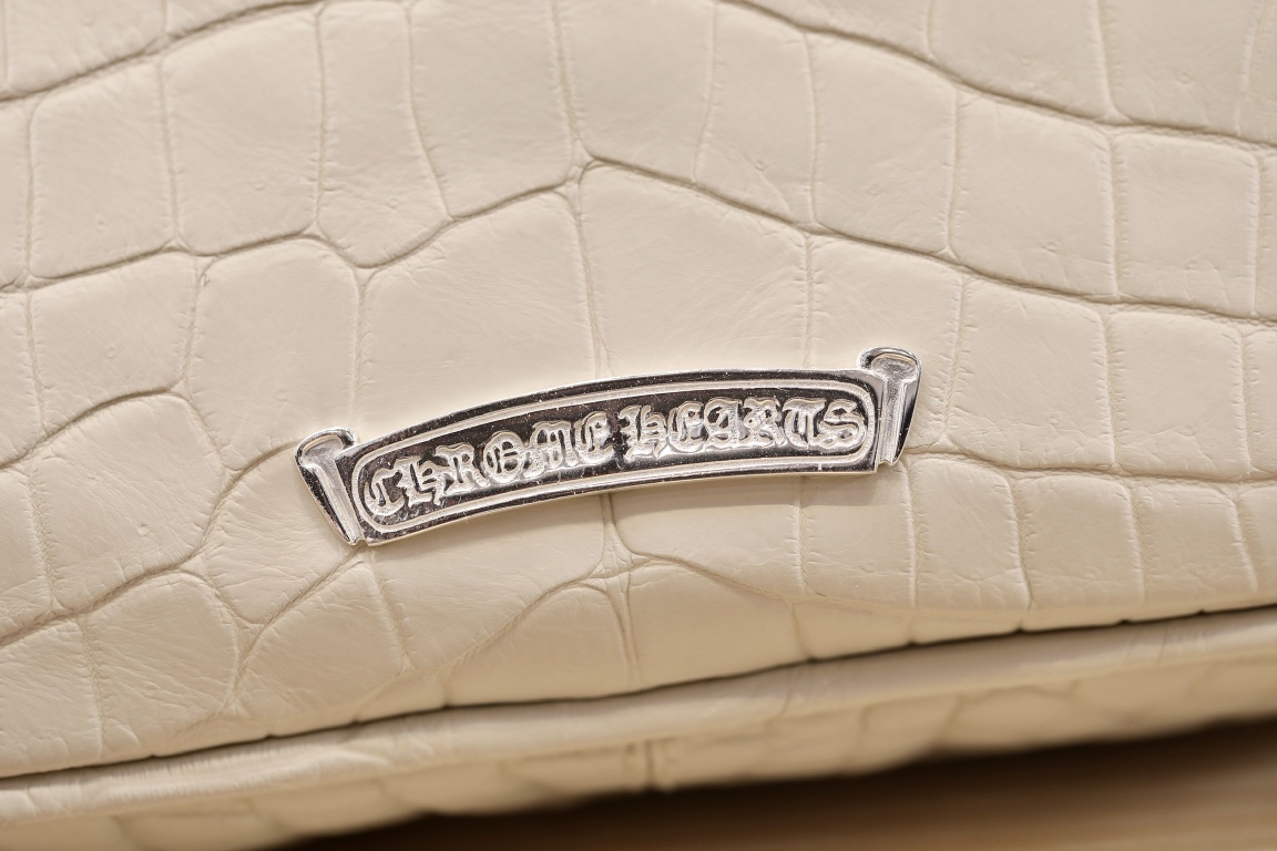 这款包包是AAAAA 1:1 质量 (非常棒). 使用了和原版一模一样的材料. 商标部分也保持了和克罗心/Chrome Hearts一样. 图片拍摄是实物包包拍摄, 您所收到的实物保证和我们图片一模一样.