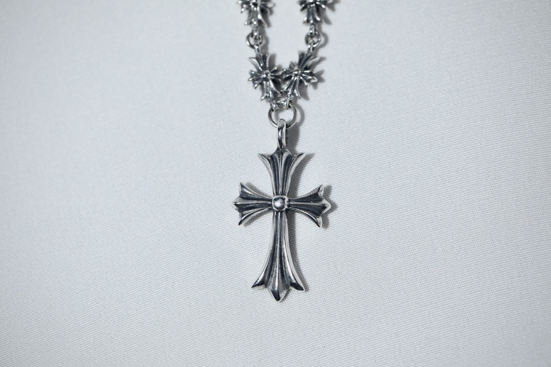 这款首饰是AAAAA 1:1 质量 (非常棒). 使用了和原版一模一样的材料. 商标部分也保持了和克罗心/Chrome Hearts一样. 图片拍摄是实物首饰拍摄, 您所收到的实物保证和我们图片一模一样.