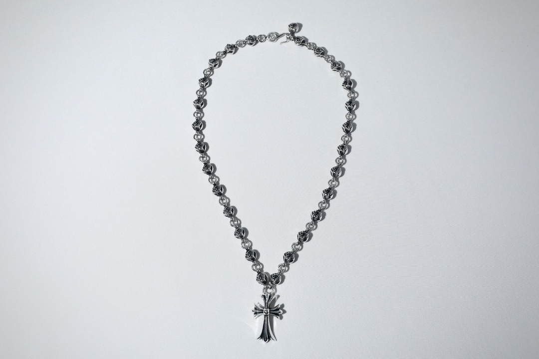 这款首饰是AAAAA 1:1 质量 (非常棒). 使用了和原版一模一样的材料. 商标部分也保持了和克罗心/Chrome Hearts一样. 图片拍摄是实物首饰拍摄, 您所收到的实物保证和我们图片一模一样.