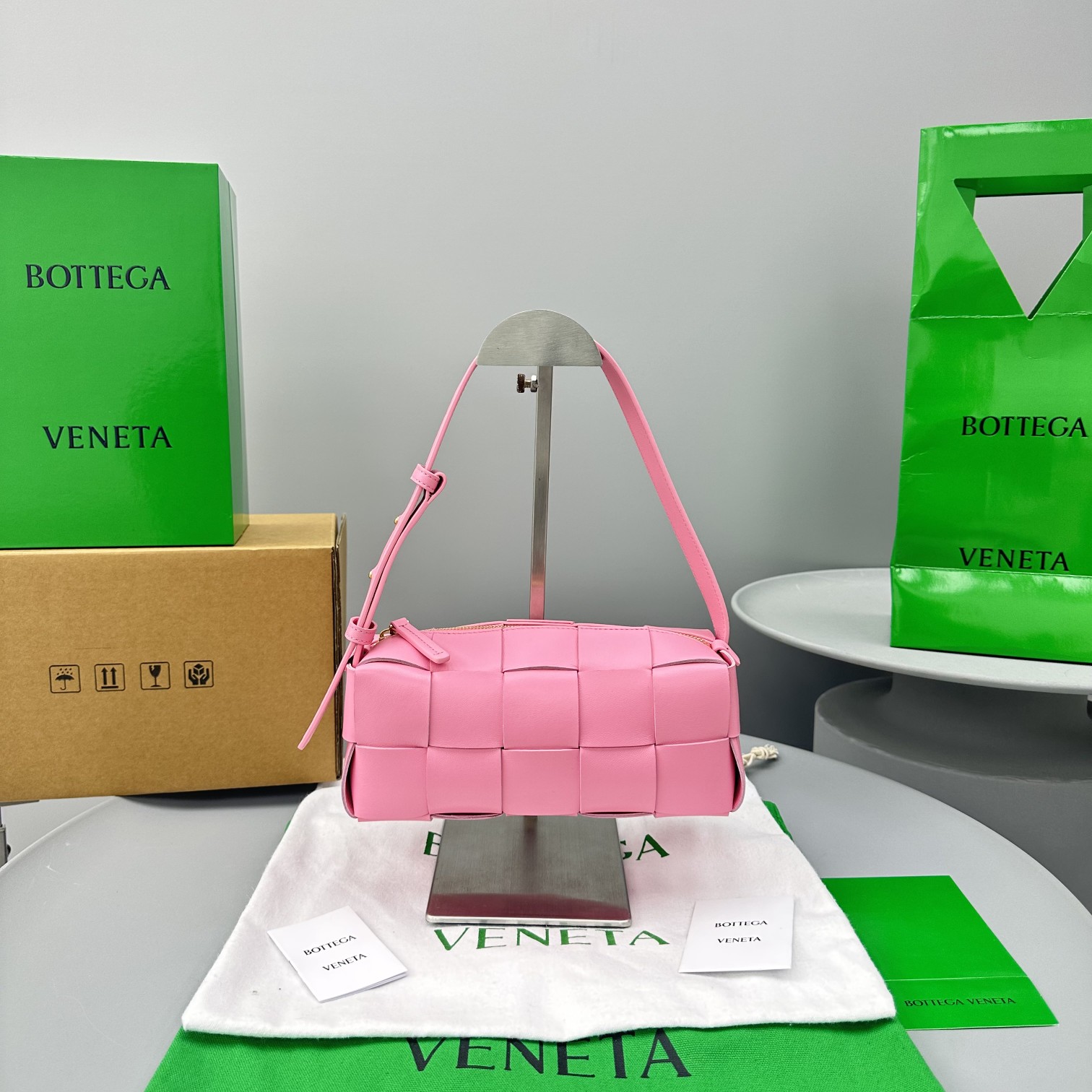 这款包包是AAAAA 1:1 质量 (非常棒). 使用了和原版一模一样的材料. 商标部分也保持了和葆蝶家/Bottega Veneta一样. 图片拍摄是实物包包拍摄, 您所收到的实物保证和我们图片一模一样.