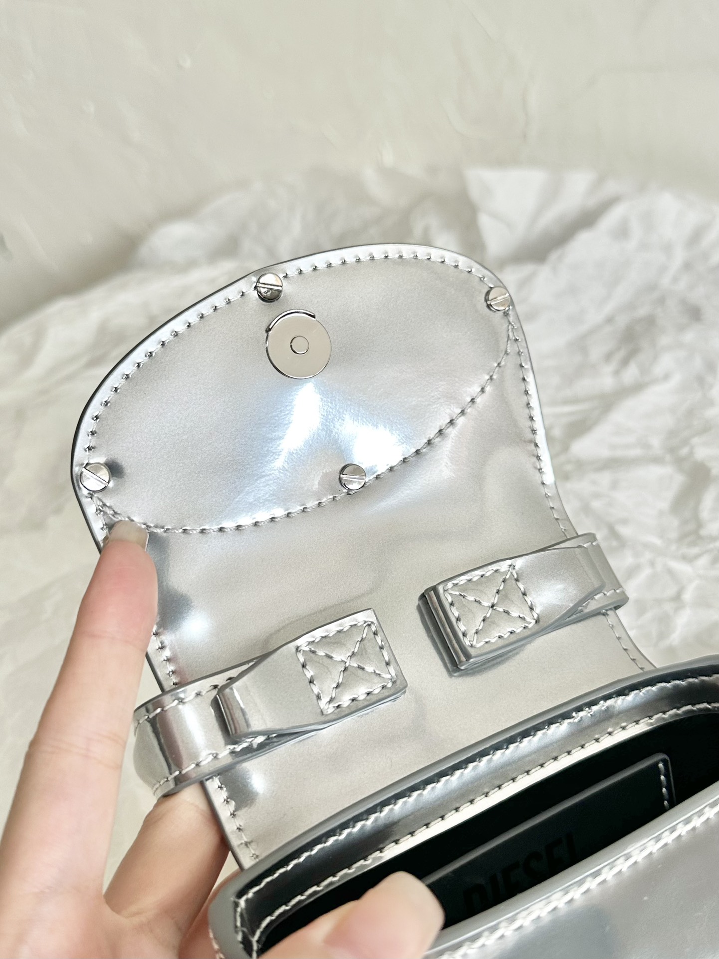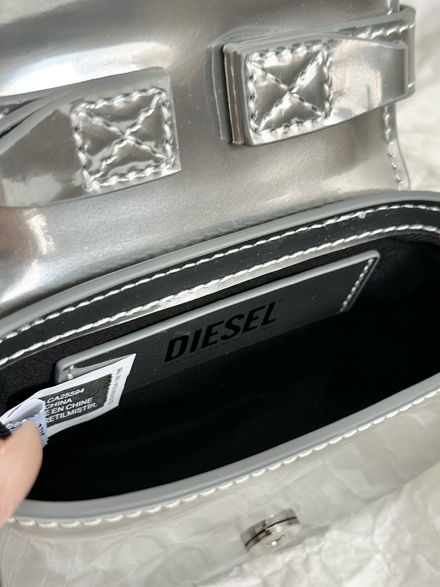这款包包是AAAAA 1:1 质量 (非常棒). 使用了和原版一模一样的材料. 商标部分也保持了和DIESEL一样. 图片拍摄是实物包包拍摄, 您所收到的实物保证和我们图片一模一样.