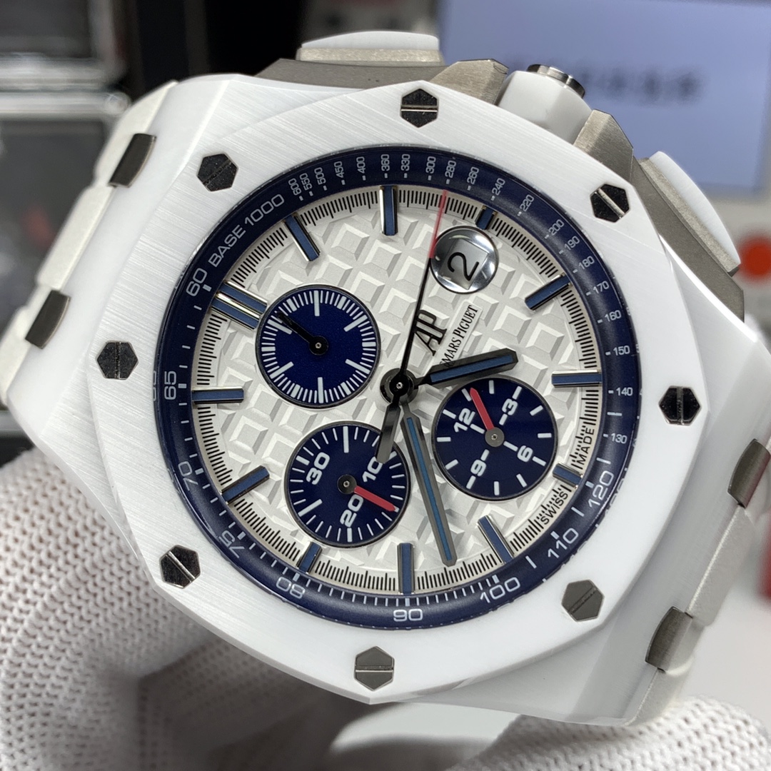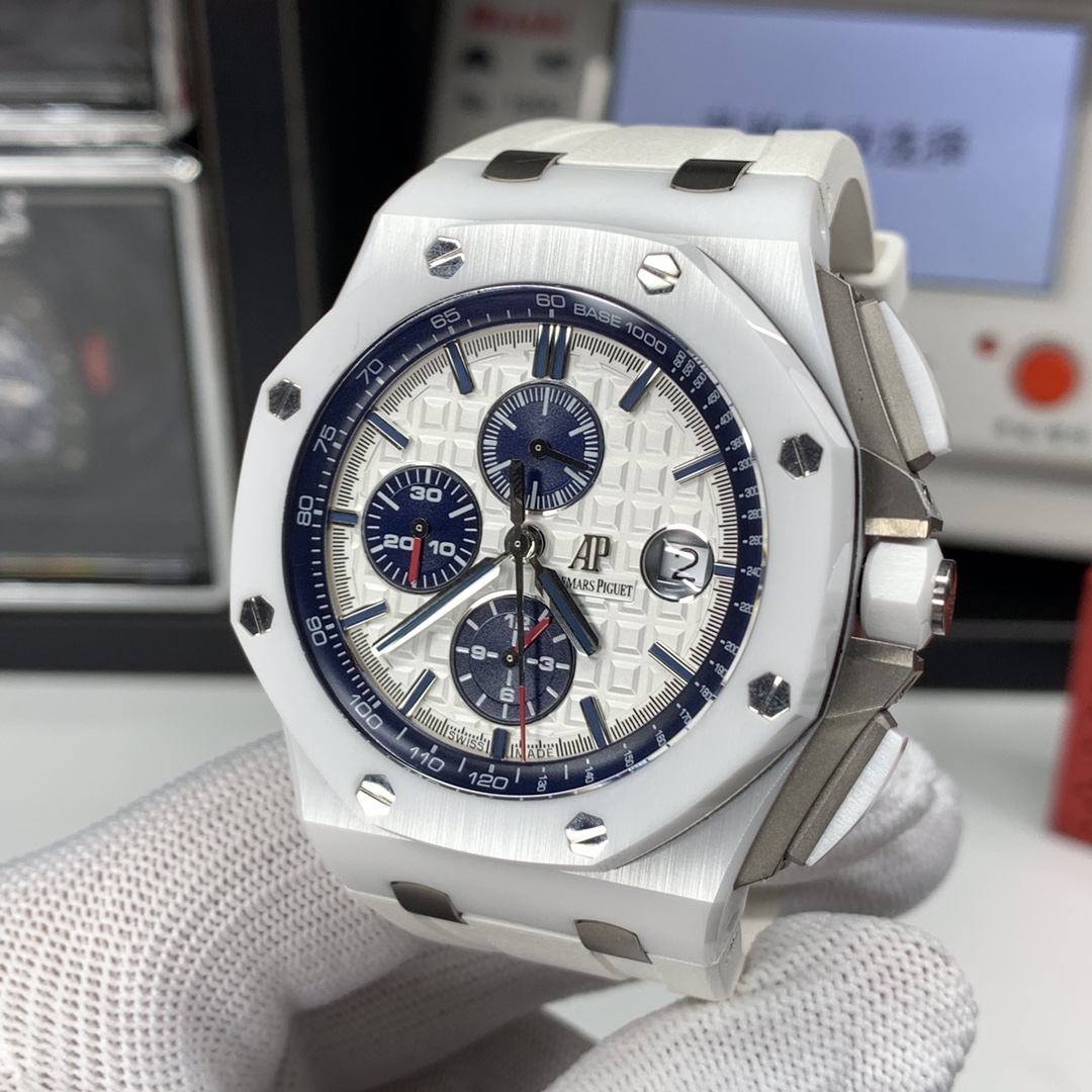 这款手表是AAAAA 1:1 质量 (非常棒). 使用了和原版一模一样的材料. 商标部分也保持了和爱彼/Audemars Piguet一样. 图片拍摄是实物手表拍摄, 您所收到的实物保证和我们图片一模一样.
