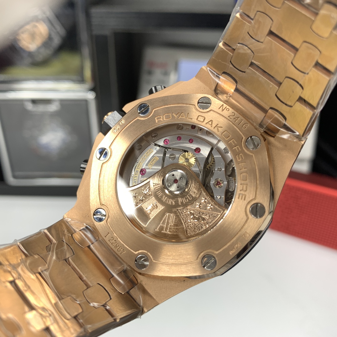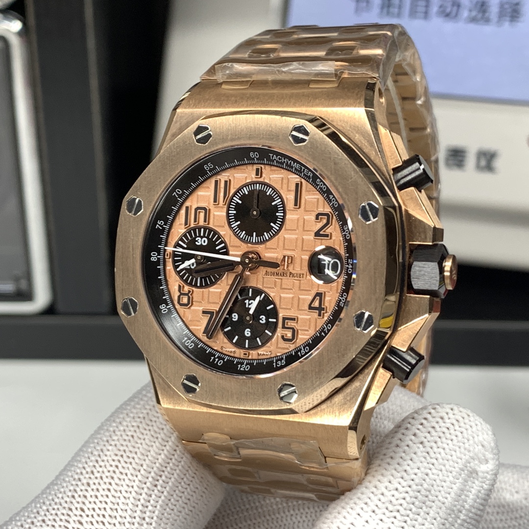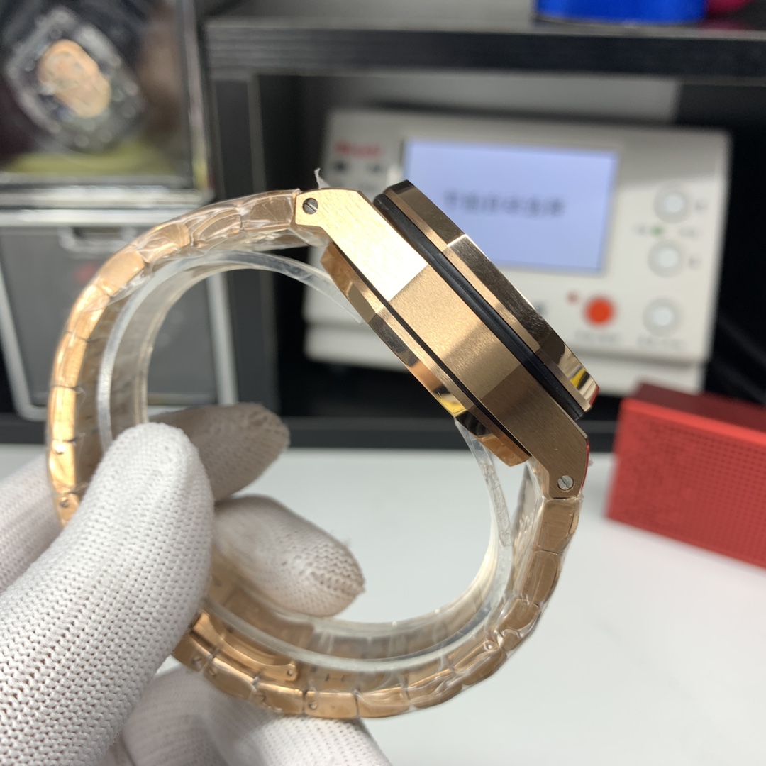 这款手表是AAAAA 1:1 质量 (非常棒). 使用了和原版一模一样的材料. 商标部分也保持了和爱彼/Audemars Piguet一样. 图片拍摄是实物手表拍摄, 您所收到的实物保证和我们图片一模一样.