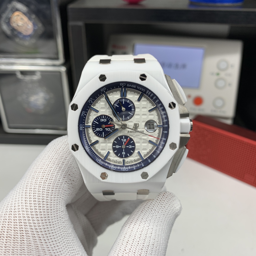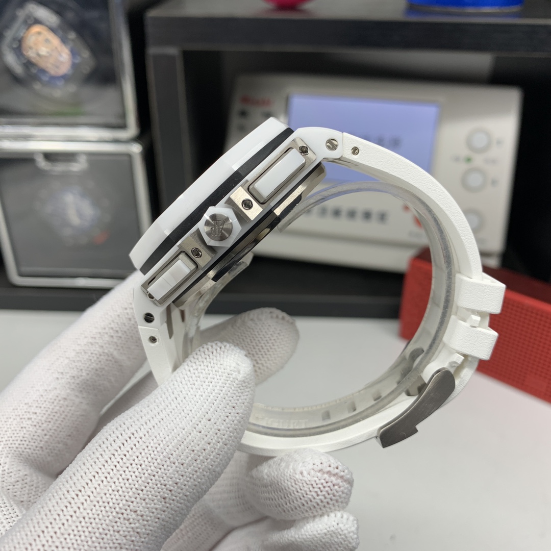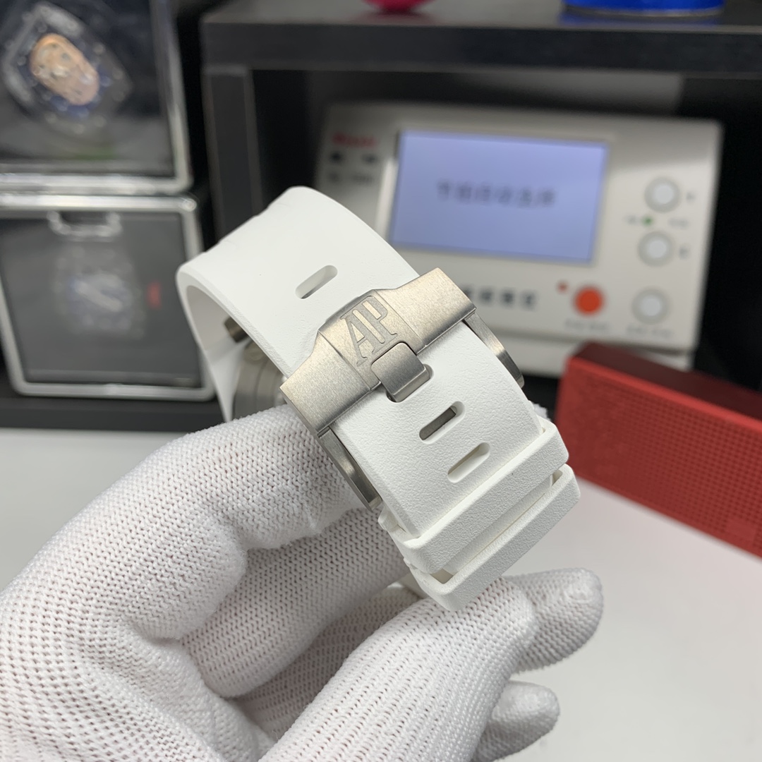 这款手表是AAAAA 1:1 质量 (非常棒). 使用了和原版一模一样的材料. 商标部分也保持了和爱彼/Audemars Piguet一样. 图片拍摄是实物手表拍摄, 您所收到的实物保证和我们图片一模一样.
