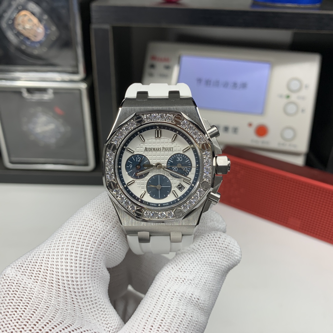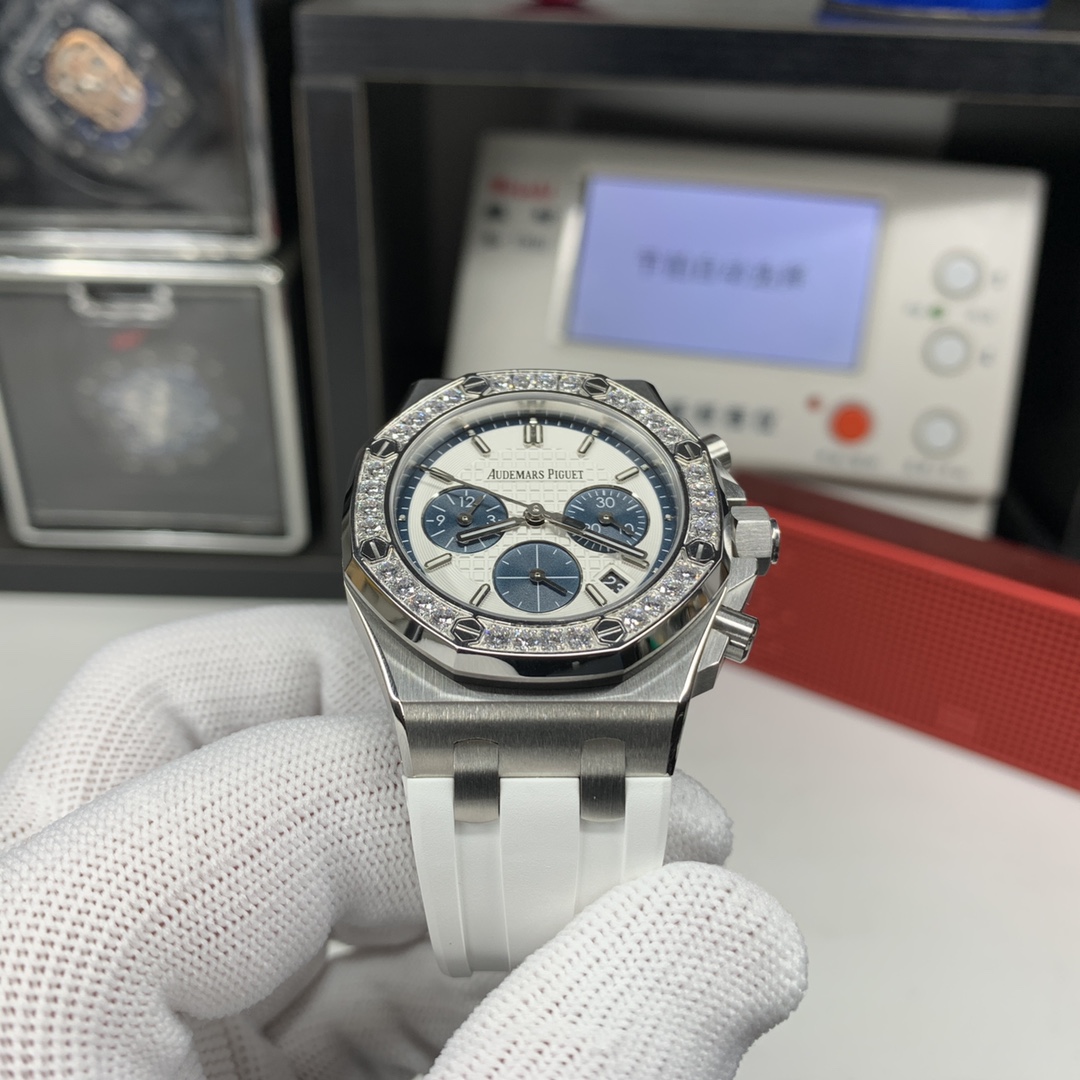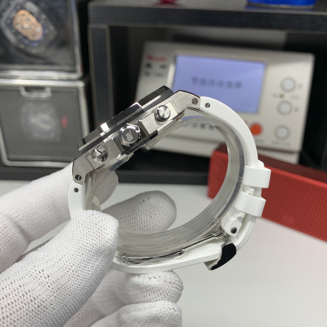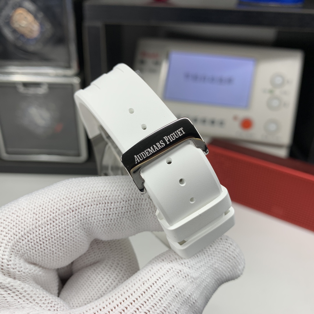 这款手表是AAAAA 1:1 质量 (非常棒). 使用了和原版一模一样的材料. 商标部分也保持了和爱彼/Audemars Piguet一样. 图片拍摄是实物手表拍摄, 您所收到的实物保证和我们图片一模一样.