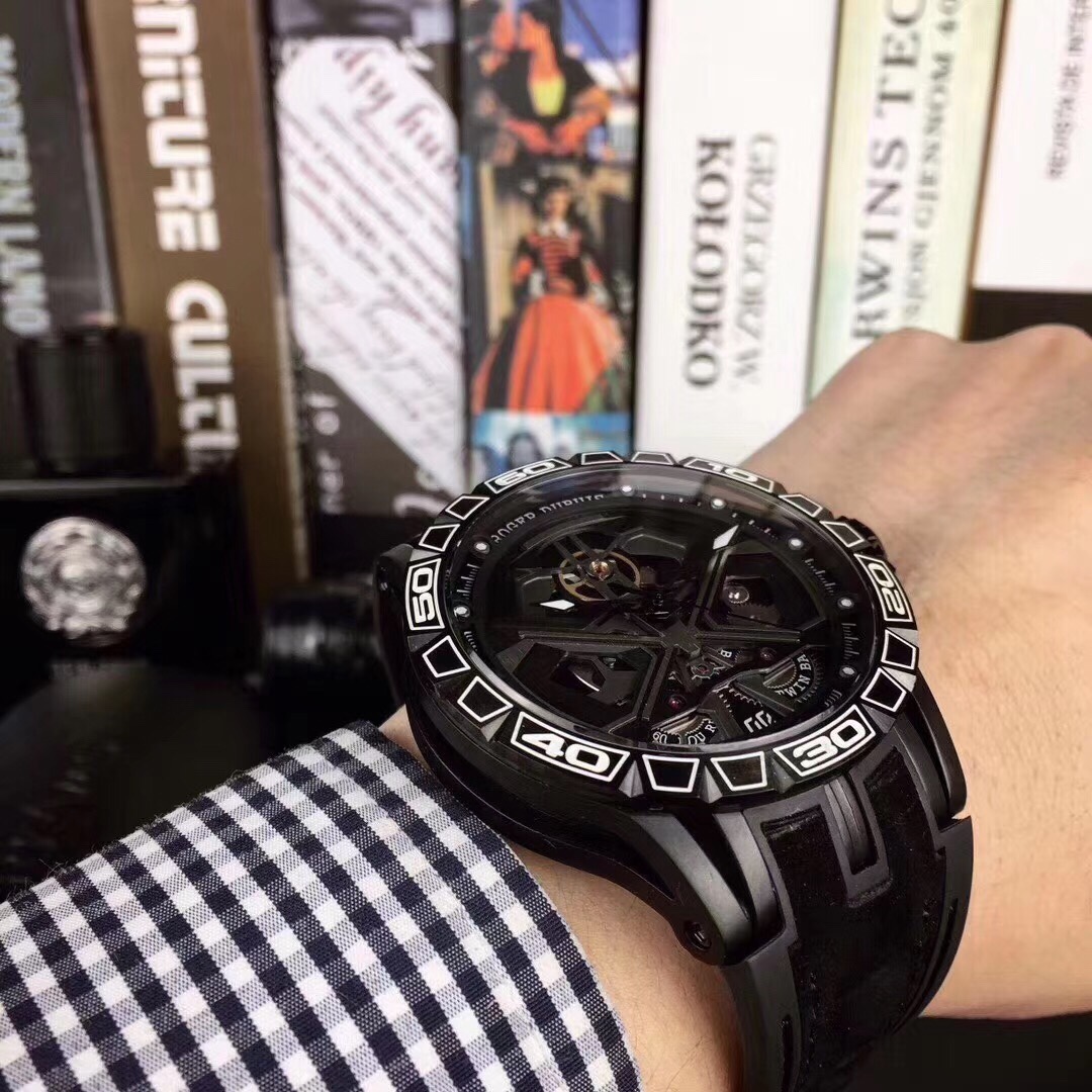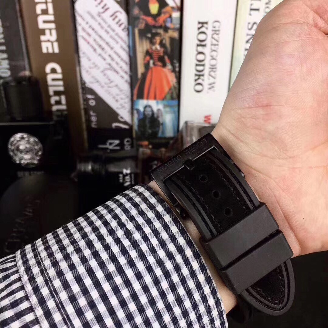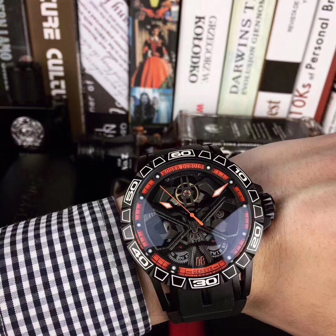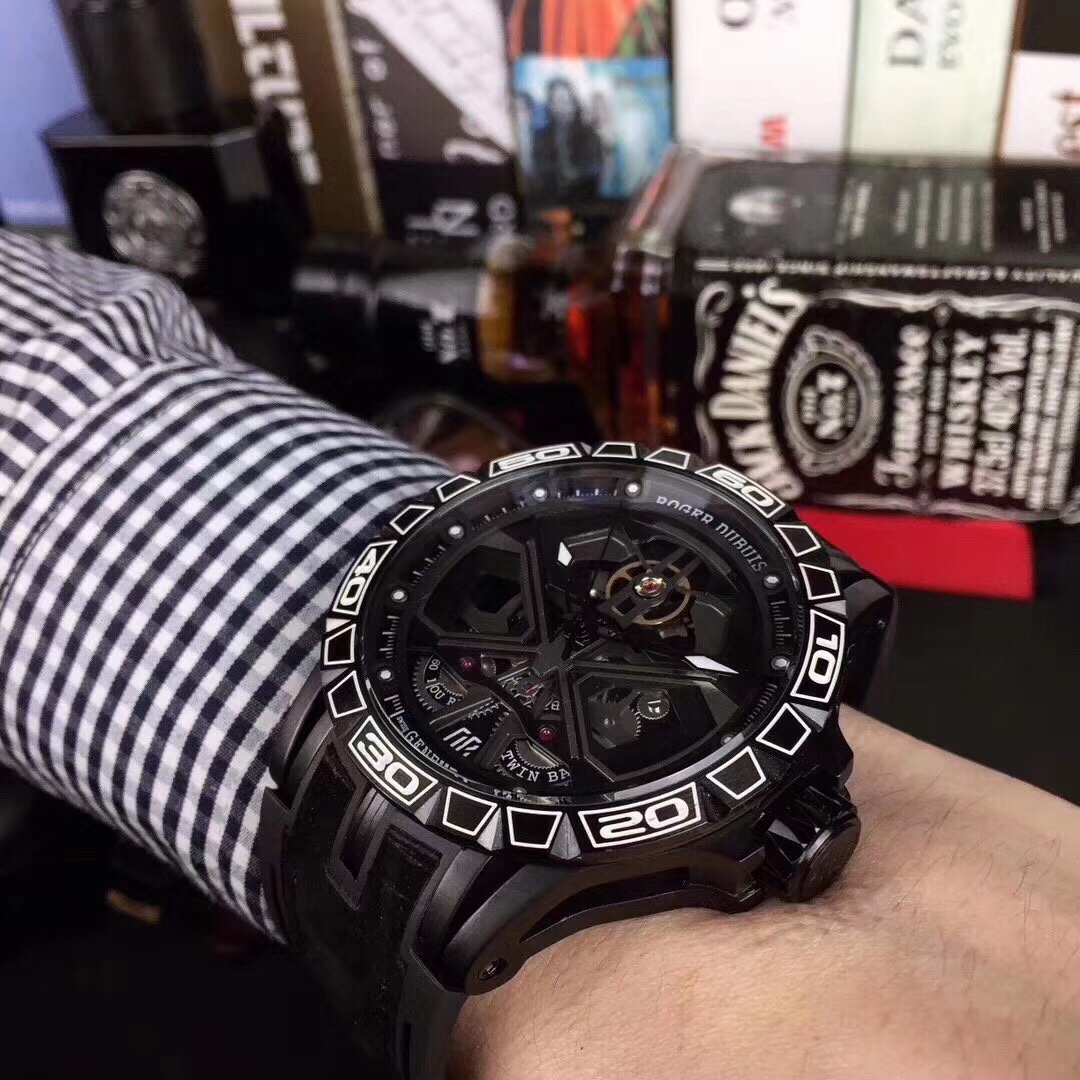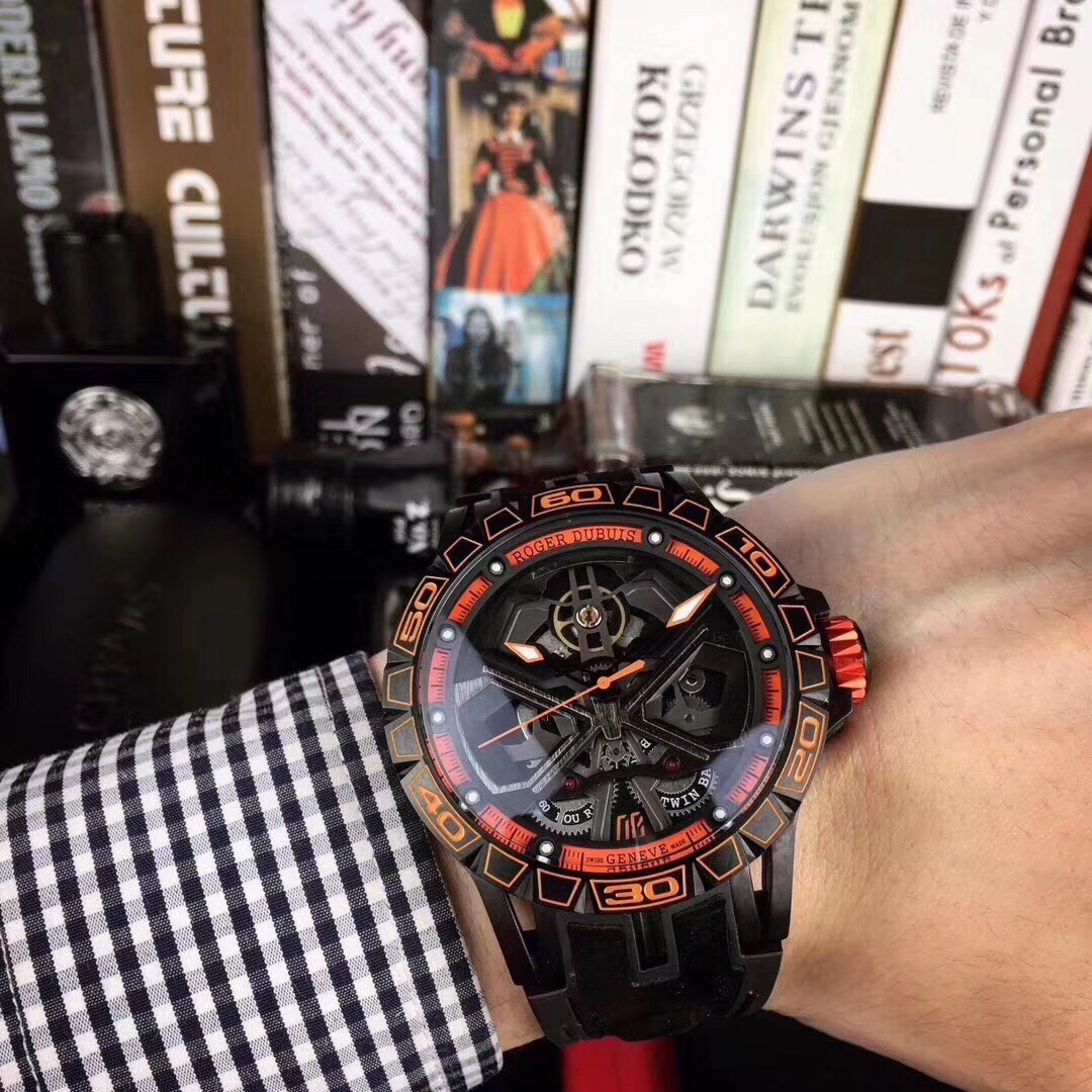 这款手表是AAAAA 1:1 质量 (非常棒). 使用了和原版一模一样的材料. 商标部分也保持了和Roger Dubuis一样. 图片拍摄是实物手表拍摄, 您所收到的实物保证和我们图片一模一样.
