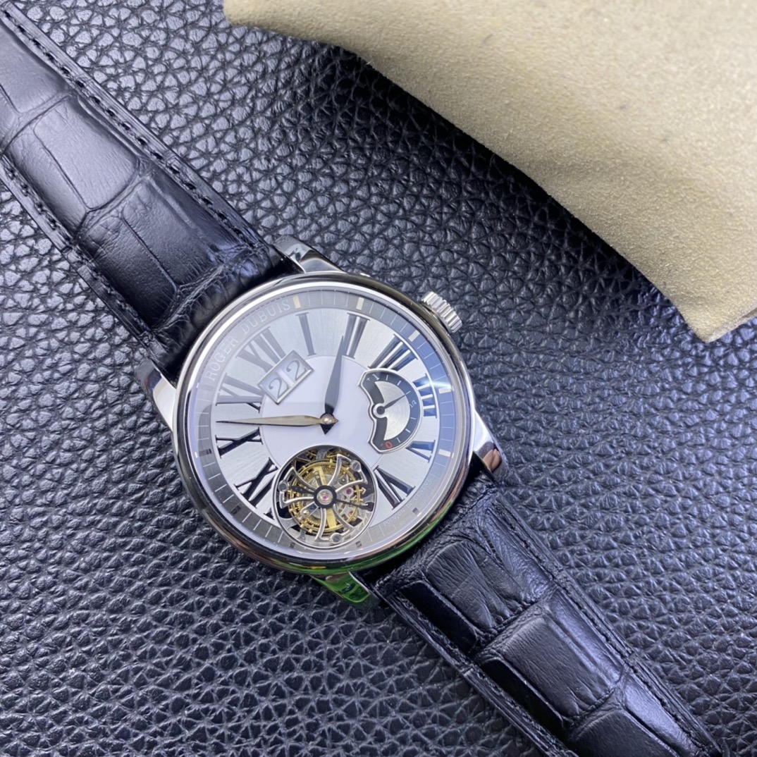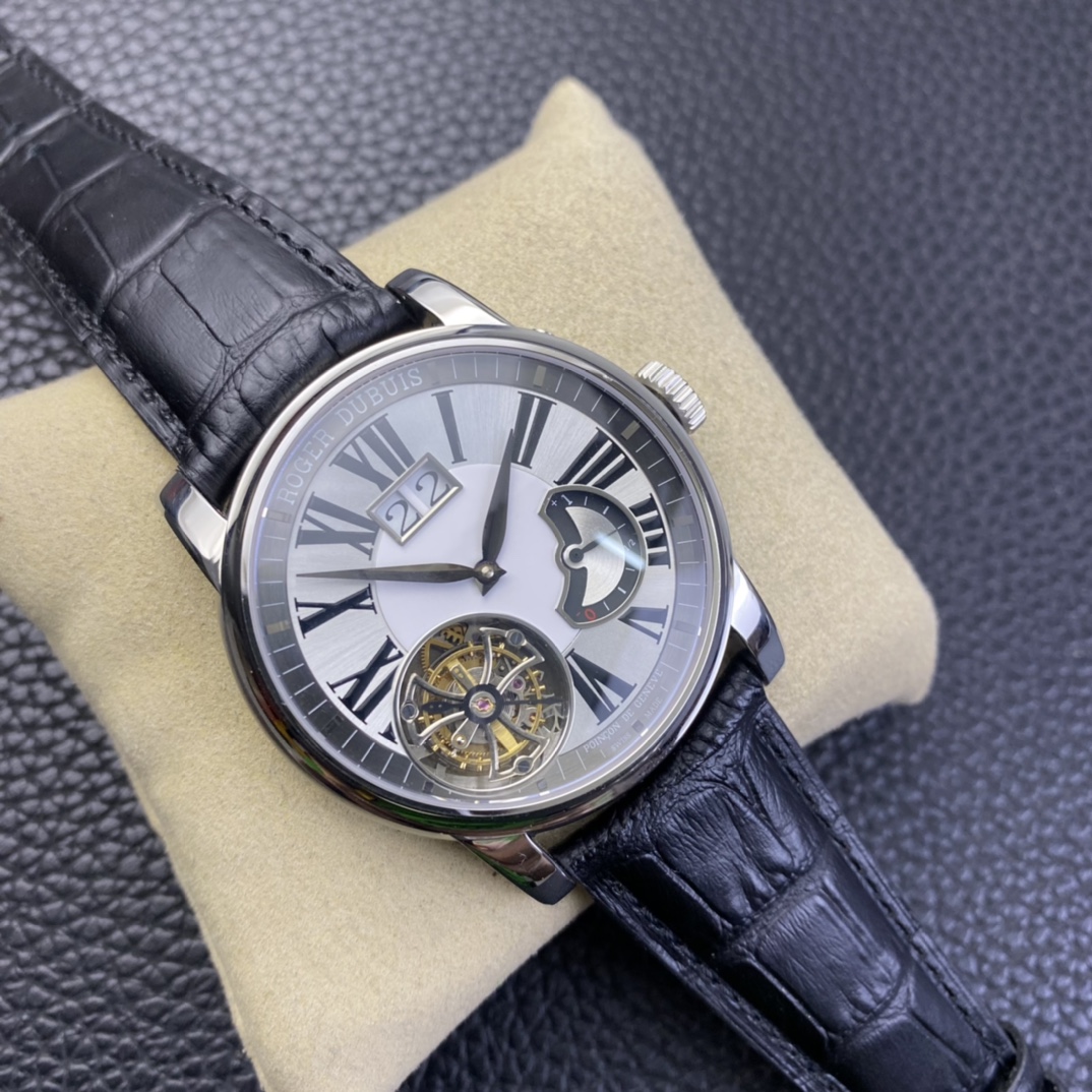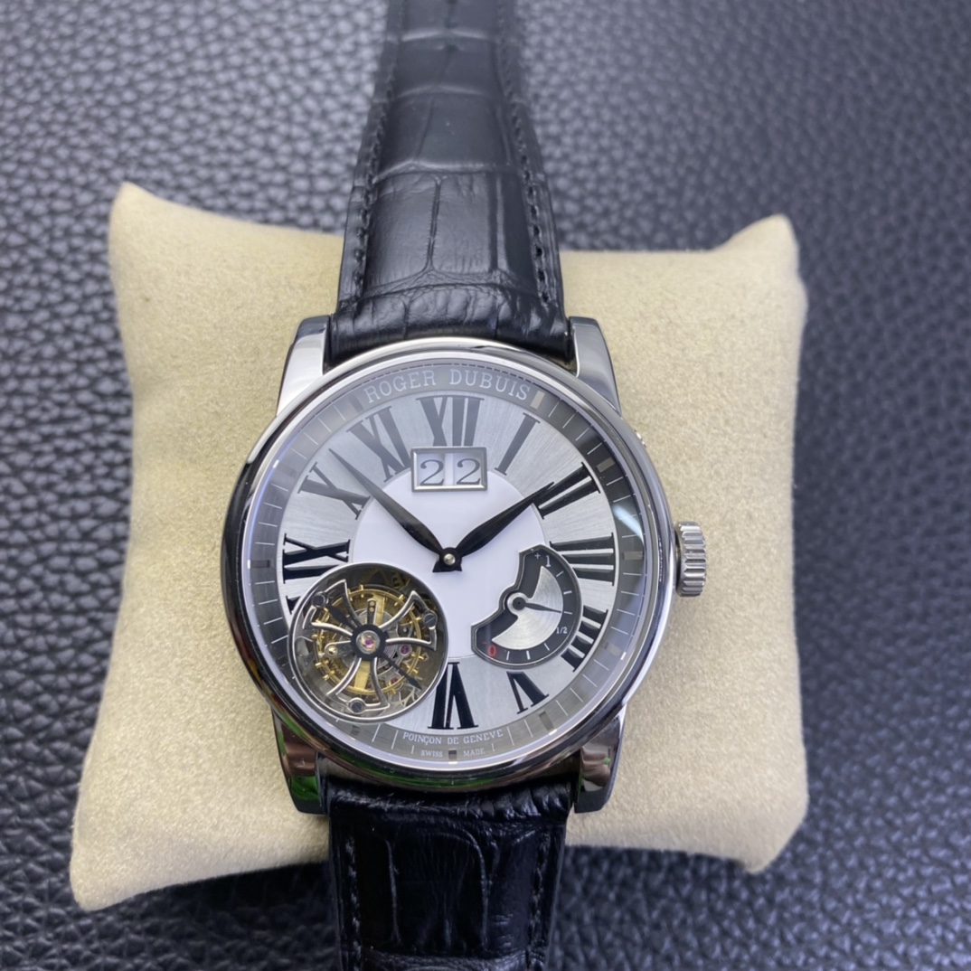 这款手表是AAAAA 1:1 质量 (非常棒). 使用了和原版一模一样的材料. 商标部分也保持了和Roger Dubuis一样. 图片拍摄是实物手表拍摄, 您所收到的实物保证和我们图片一模一样.