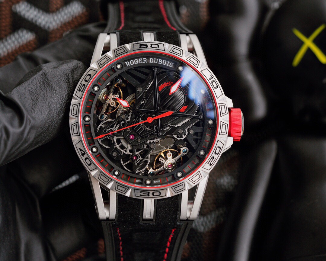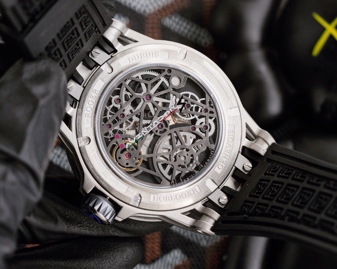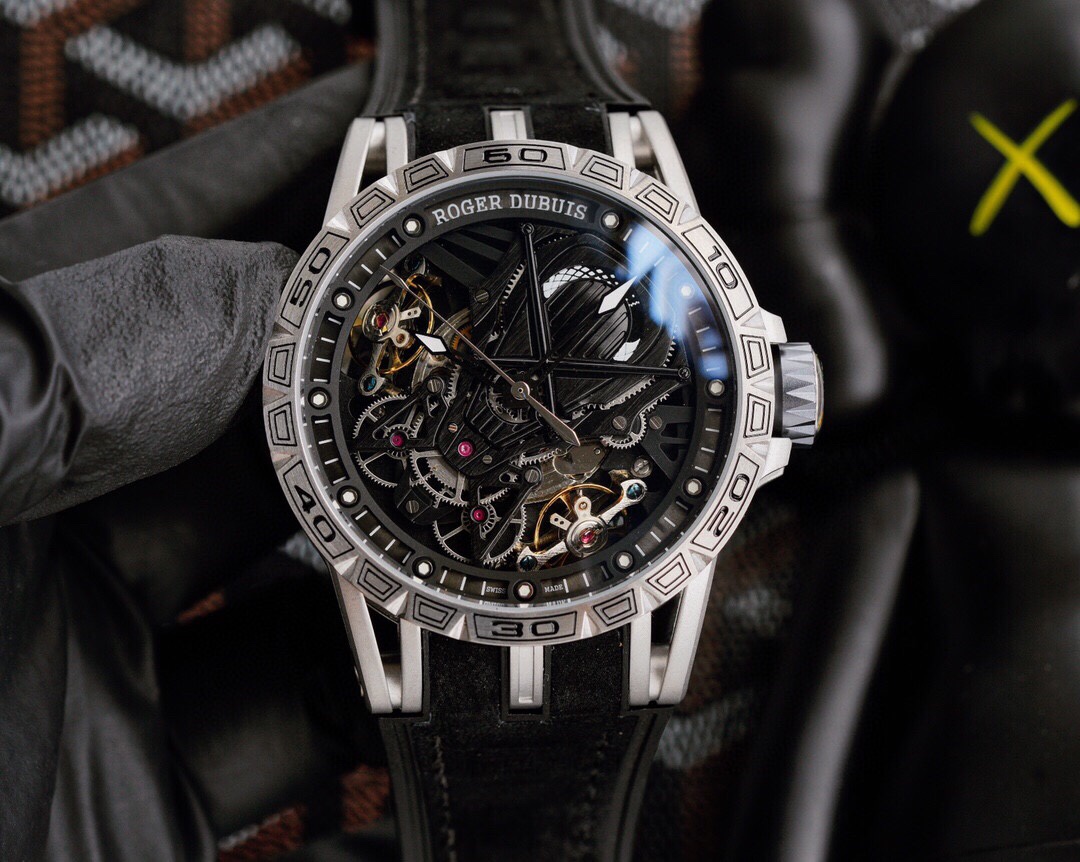 这款手表是AAAAA 1:1 质量 (非常棒). 使用了和原版一模一样的材料. 商标部分也保持了和Roger Dubuis一样. 图片拍摄是实物手表拍摄, 您所收到的实物保证和我们图片一模一样.