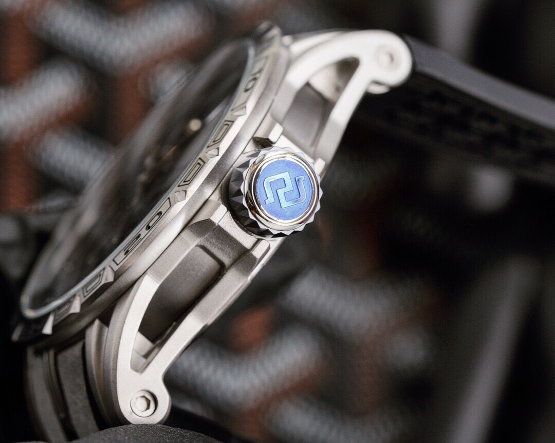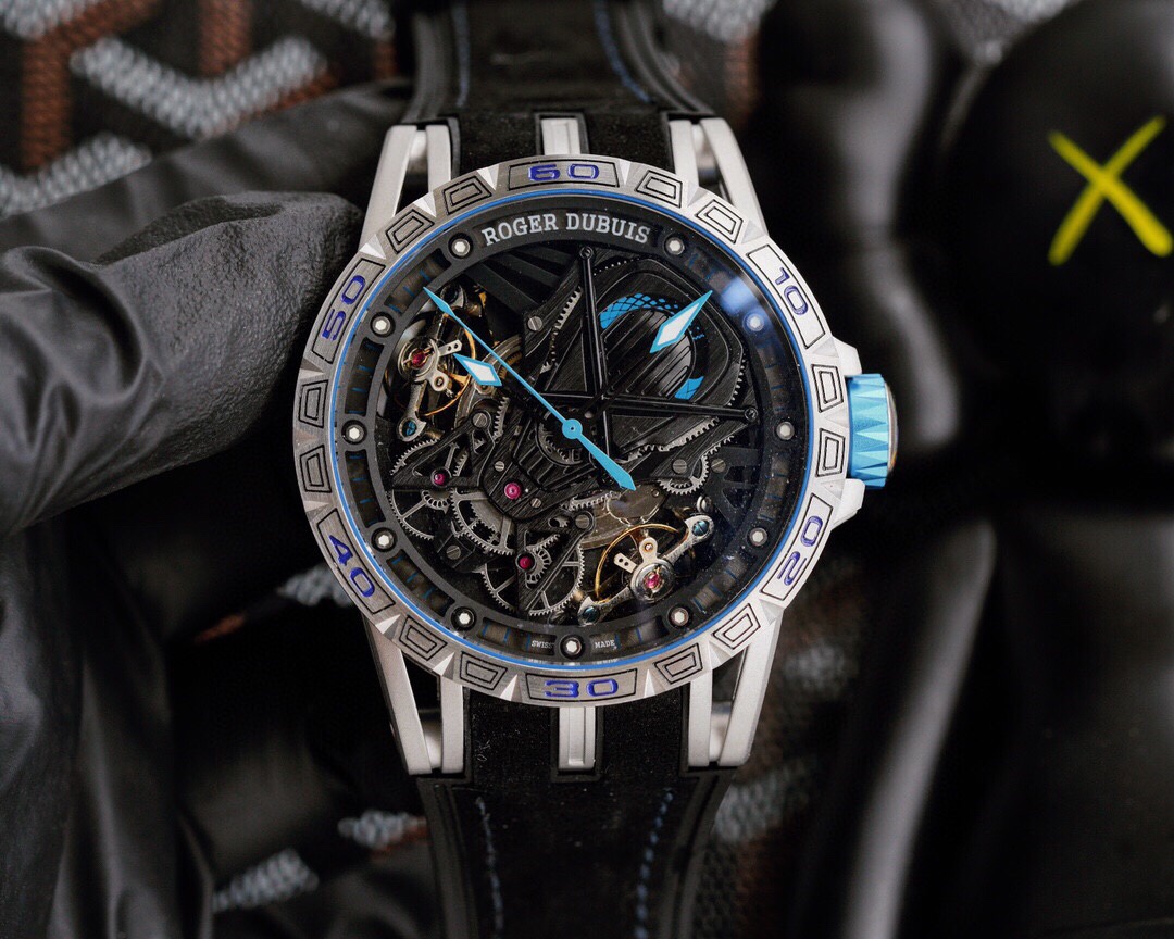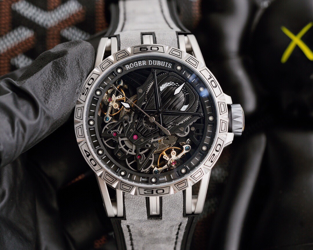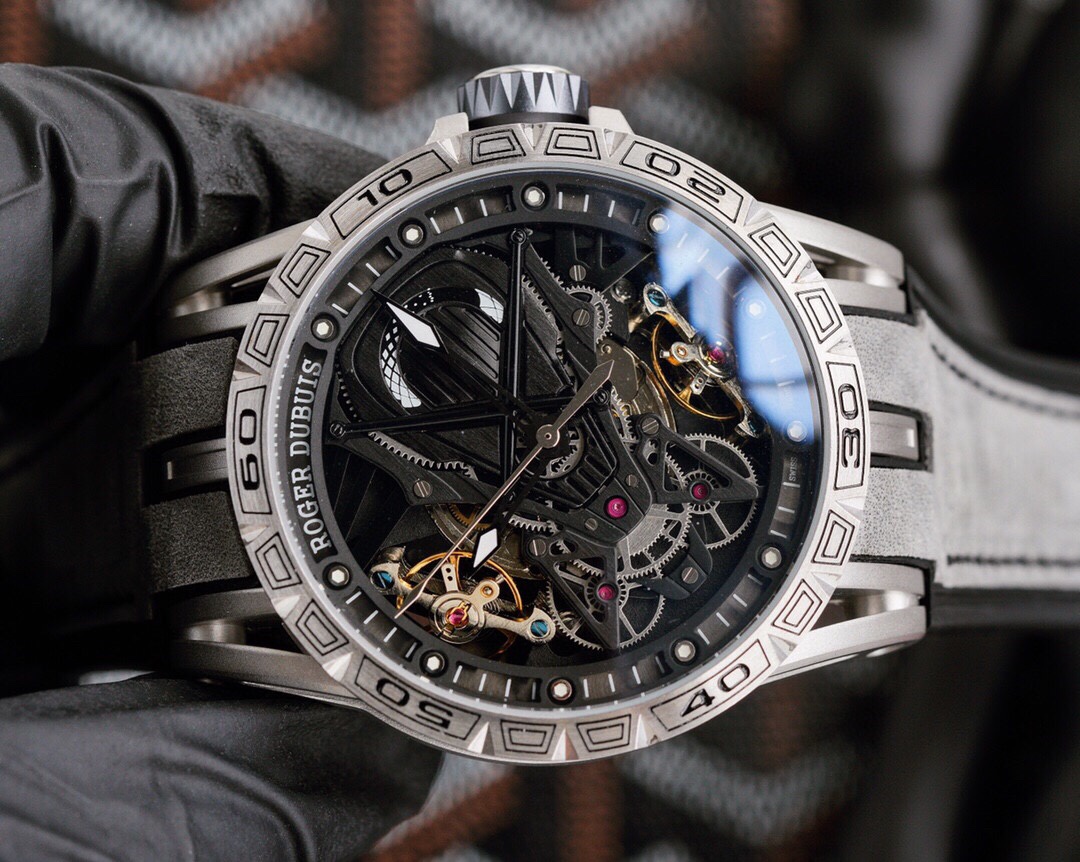 这款手表是AAAAA 1:1 质量 (非常棒). 使用了和原版一模一样的材料. 商标部分也保持了和Roger Dubuis一样. 图片拍摄是实物手表拍摄, 您所收到的实物保证和我们图片一模一样.