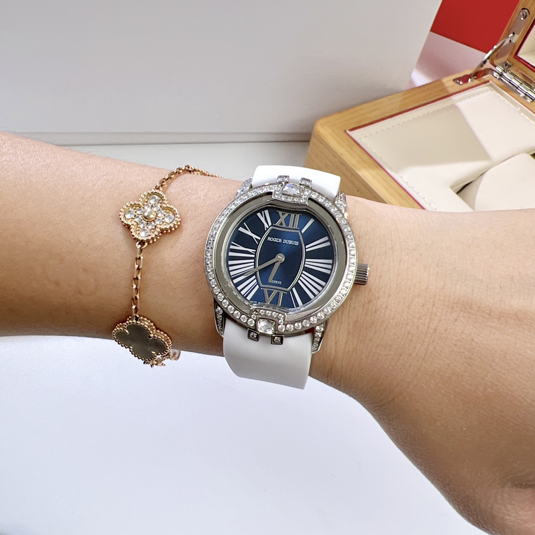 这款手表是AAAAA 1:1 质量 (非常棒). 使用了和原版一模一样的材料. 商标部分也保持了和Roger Dubuis一样. 图片拍摄是实物手表拍摄, 您所收到的实物保证和我们图片一模一样.