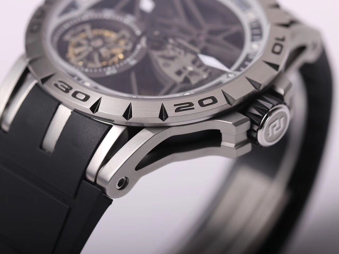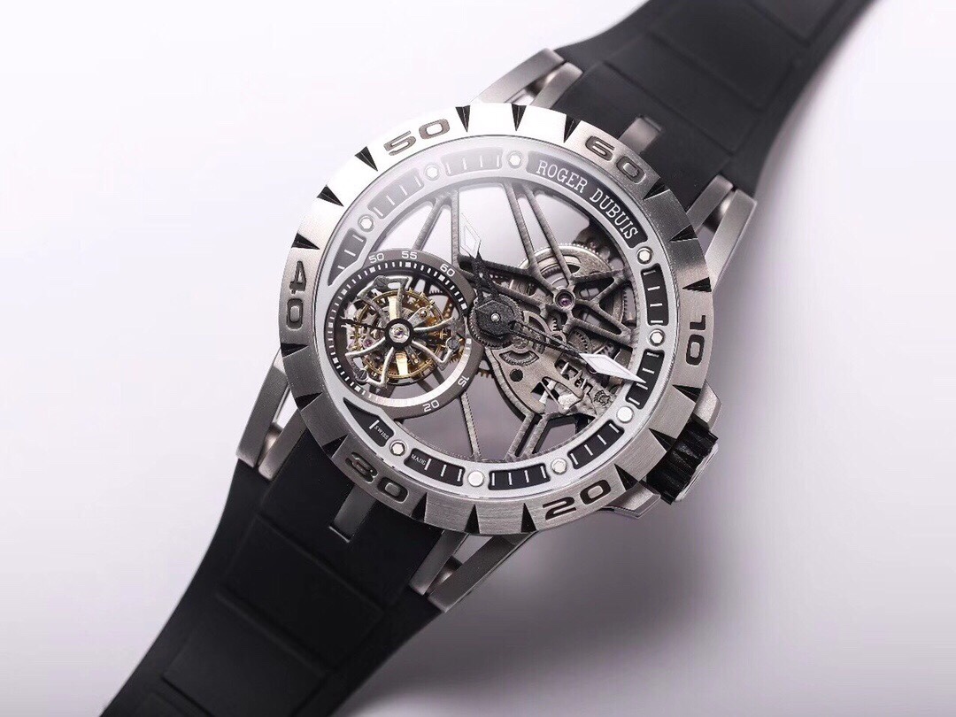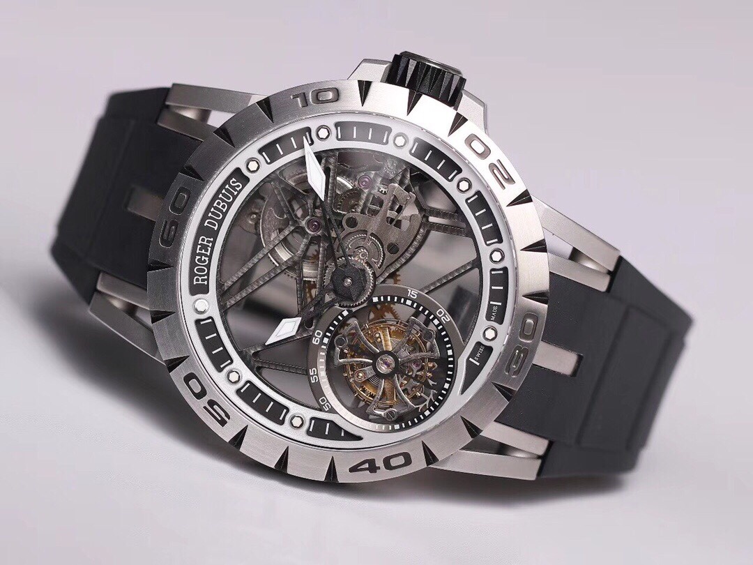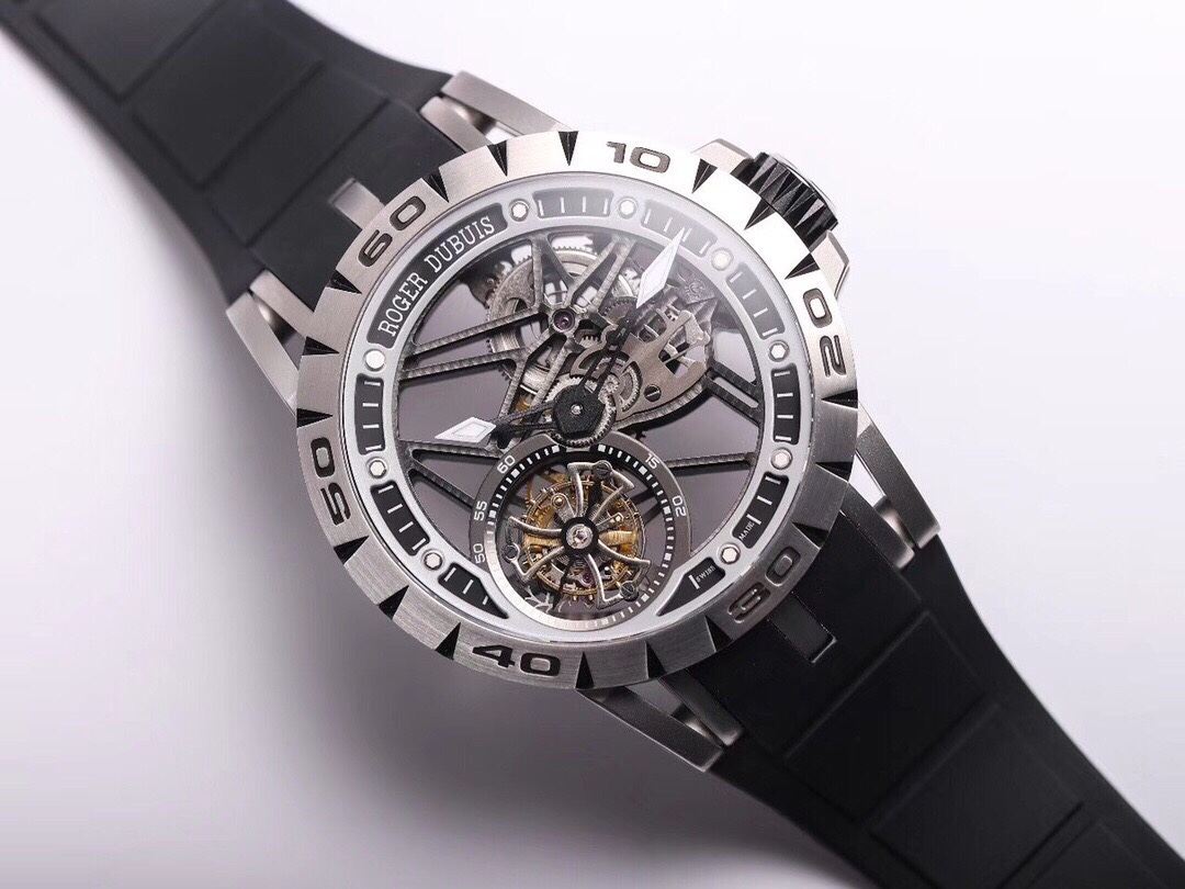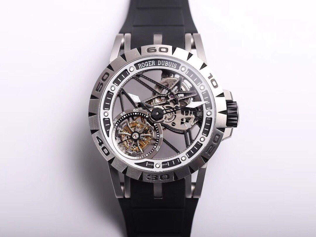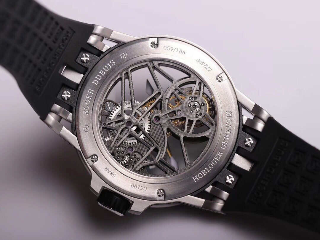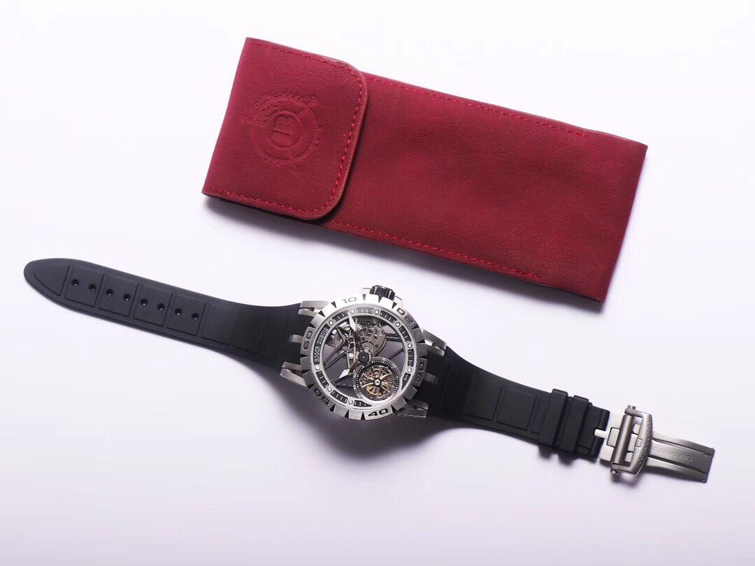 这款手表是AAAAA 1:1 质量 (非常棒). 使用了和原版一模一样的材料. 商标部分也保持了和Roger Dubuis一样. 图片拍摄是实物手表拍摄, 您所收到的实物保证和我们图片一模一样.