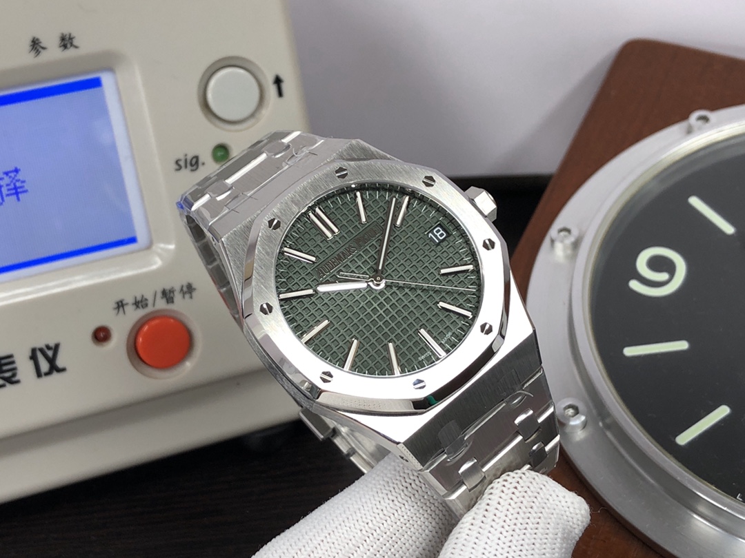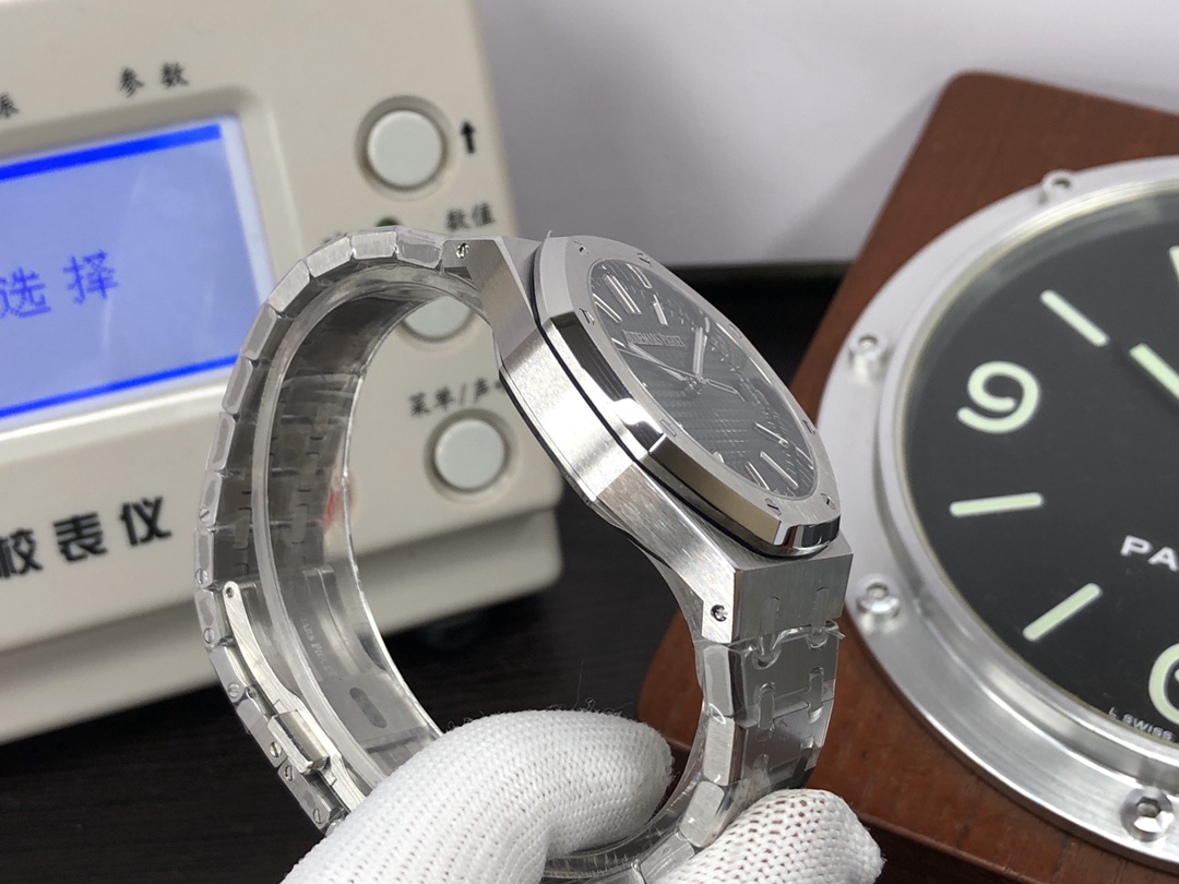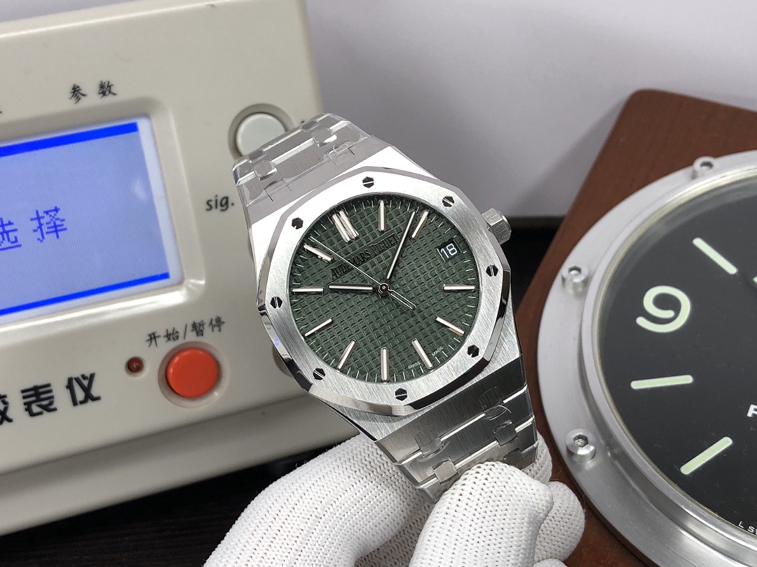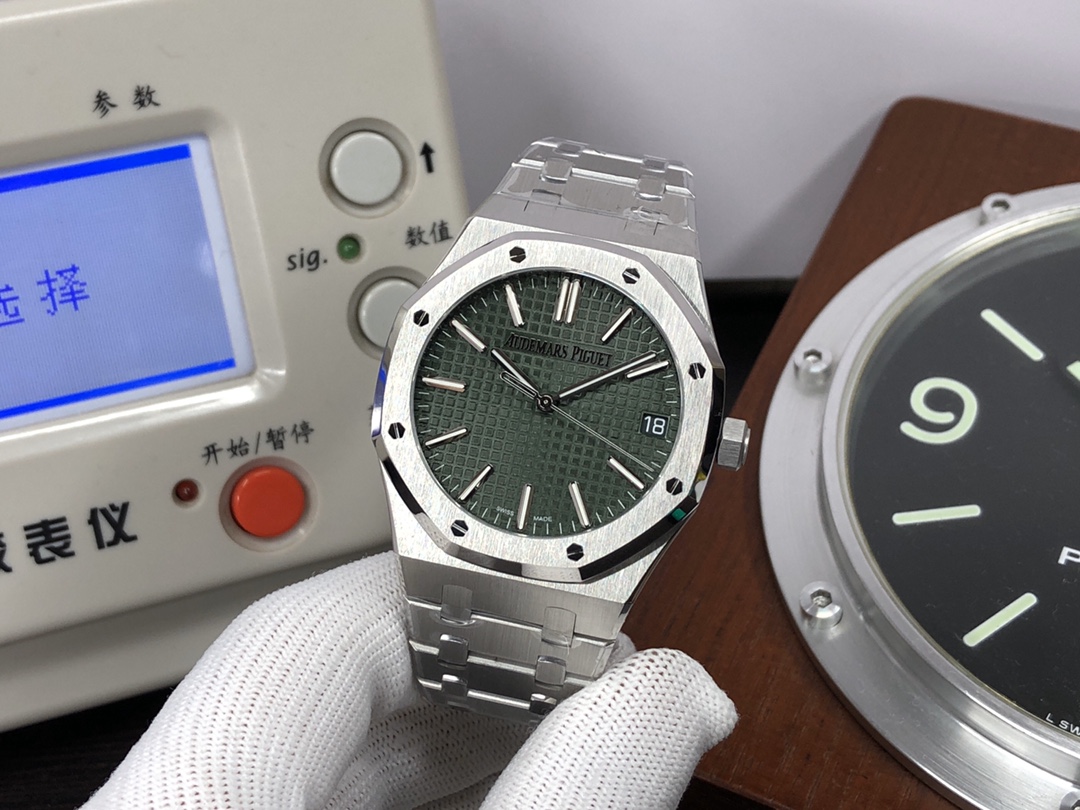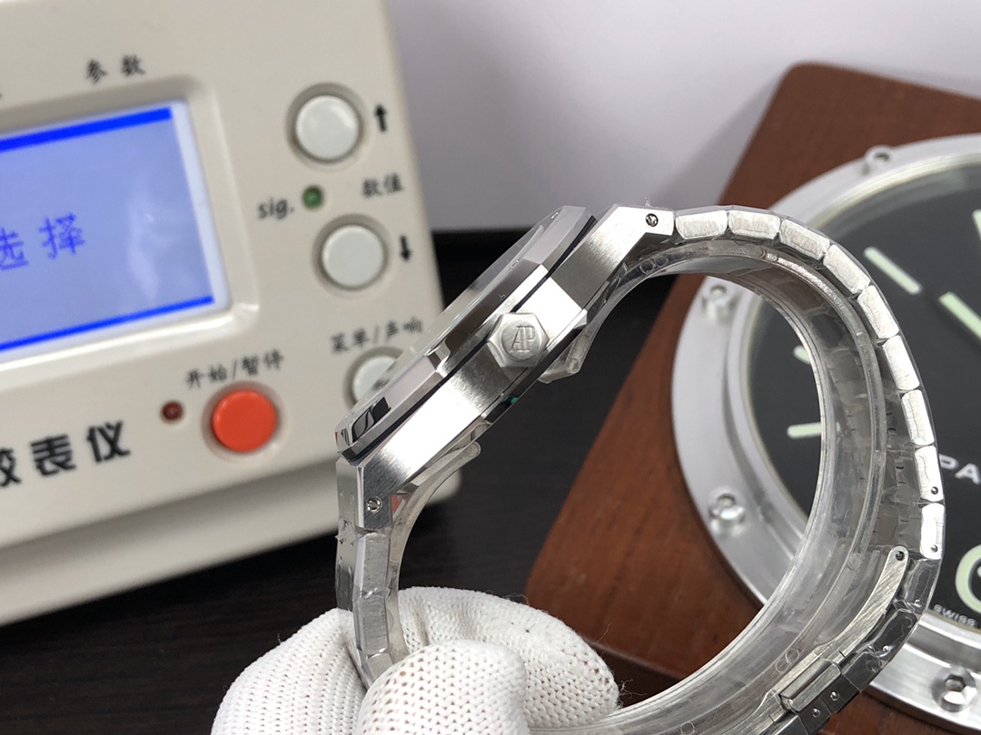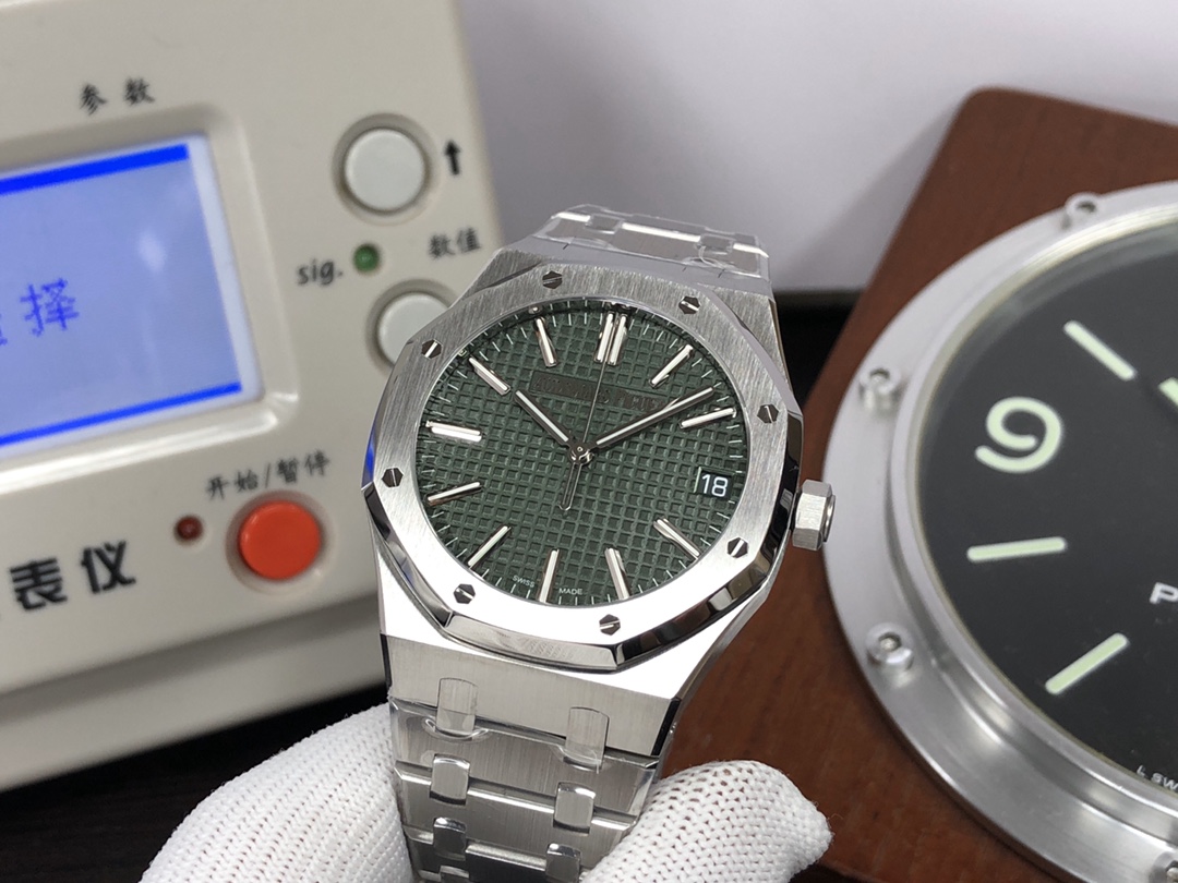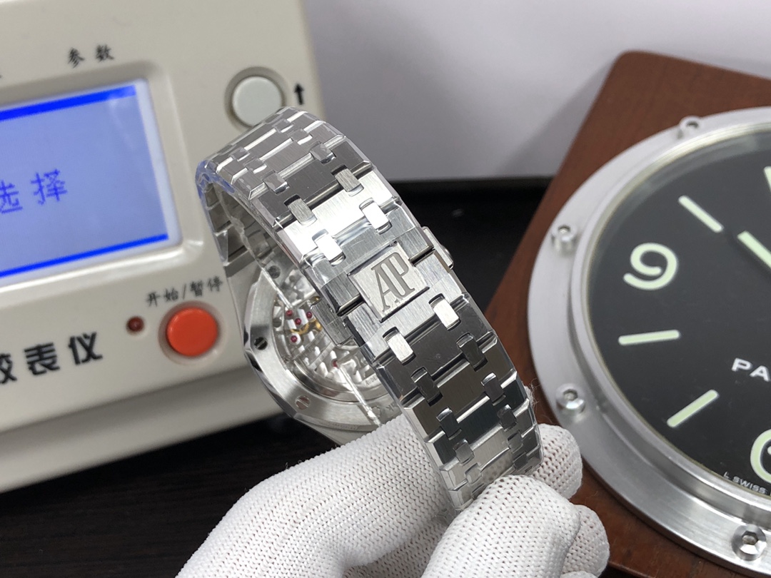 这款手表是AAAAA 1:1 质量 (非常棒). 使用了和原版一模一样的材料. 商标部分也保持了和爱彼/Audemars Piguet一样. 图片拍摄是实物手表拍摄, 您所收到的实物保证和我们图片一模一样.