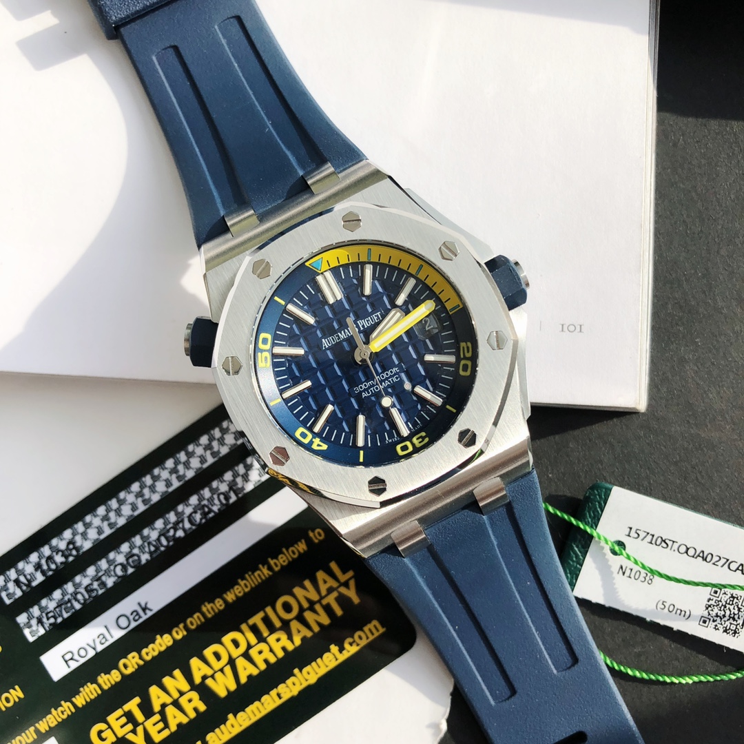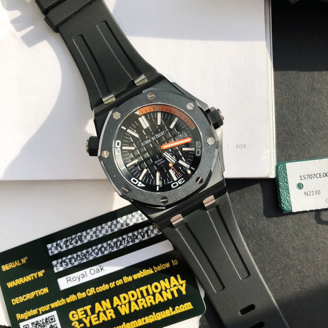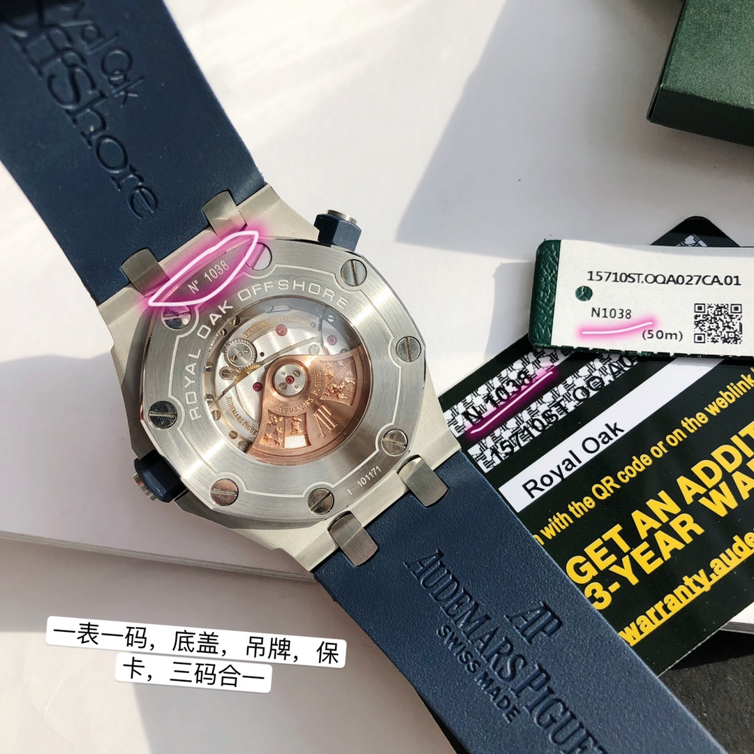这款手表是AAAAA 1:1 质量 (非常棒). 使用了和原版一模一样的材料. 商标部分也保持了和爱彼/Audemars Piguet一样. 图片拍摄是实物手表拍摄, 您所收到的实物保证和我们图片一模一样.