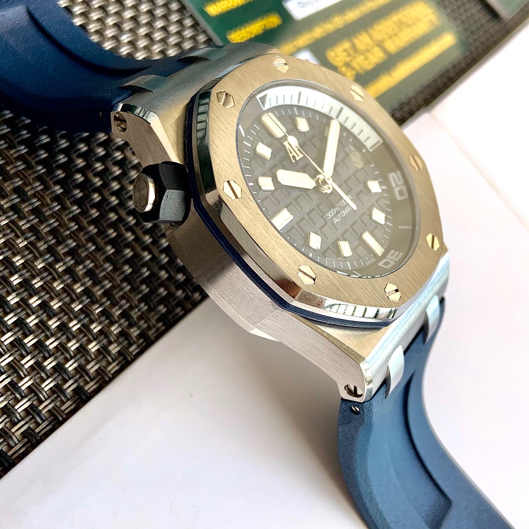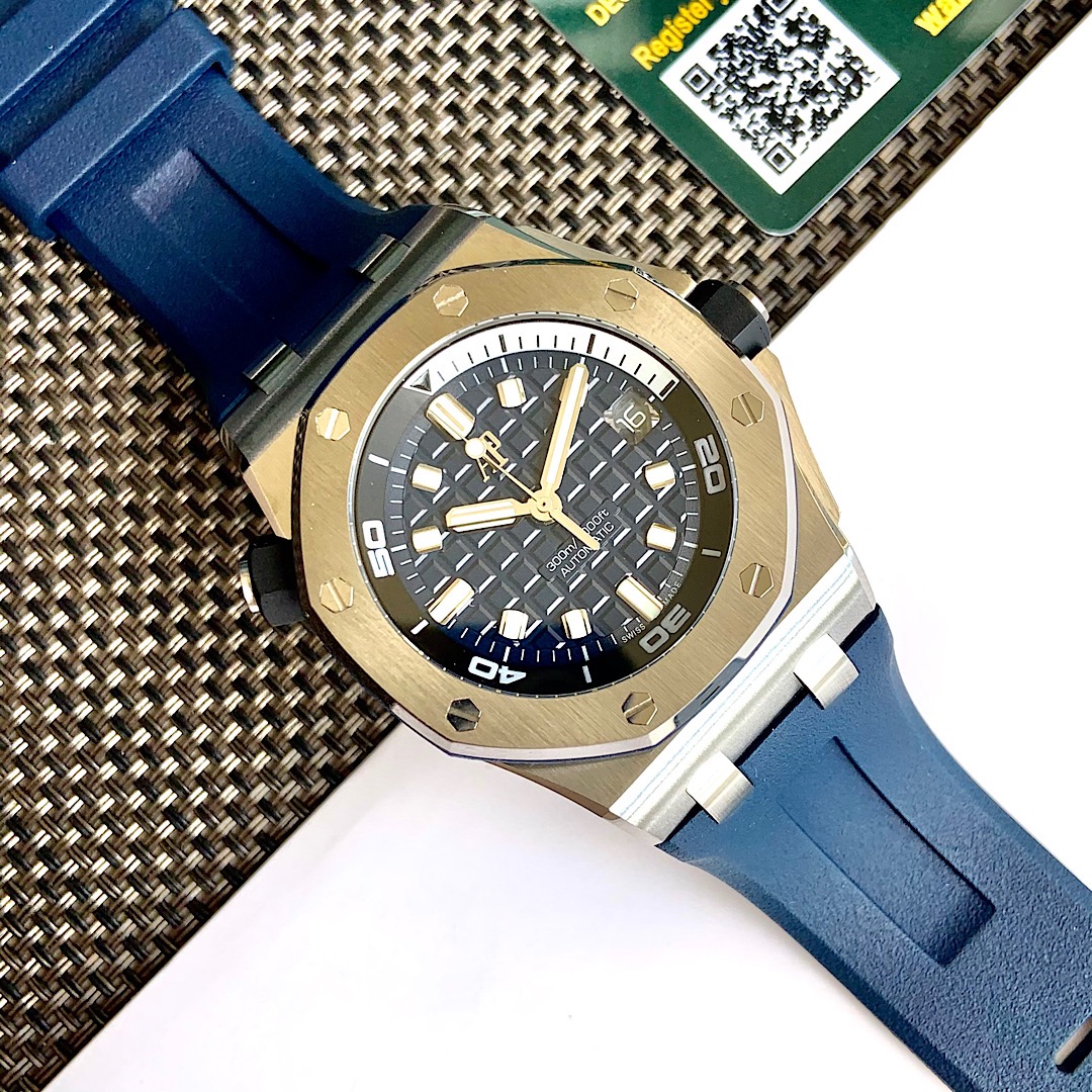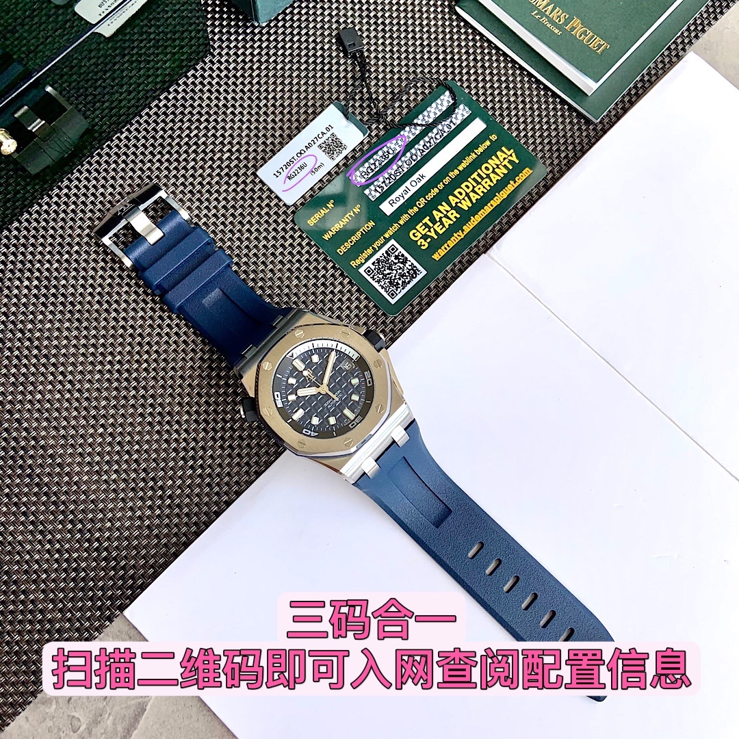 这款手表是AAAAA 1:1 质量 (非常棒). 使用了和原版一模一样的材料. 商标部分也保持了和爱彼/Audemars Piguet一样. 图片拍摄是实物手表拍摄, 您所收到的实物保证和我们图片一模一样.