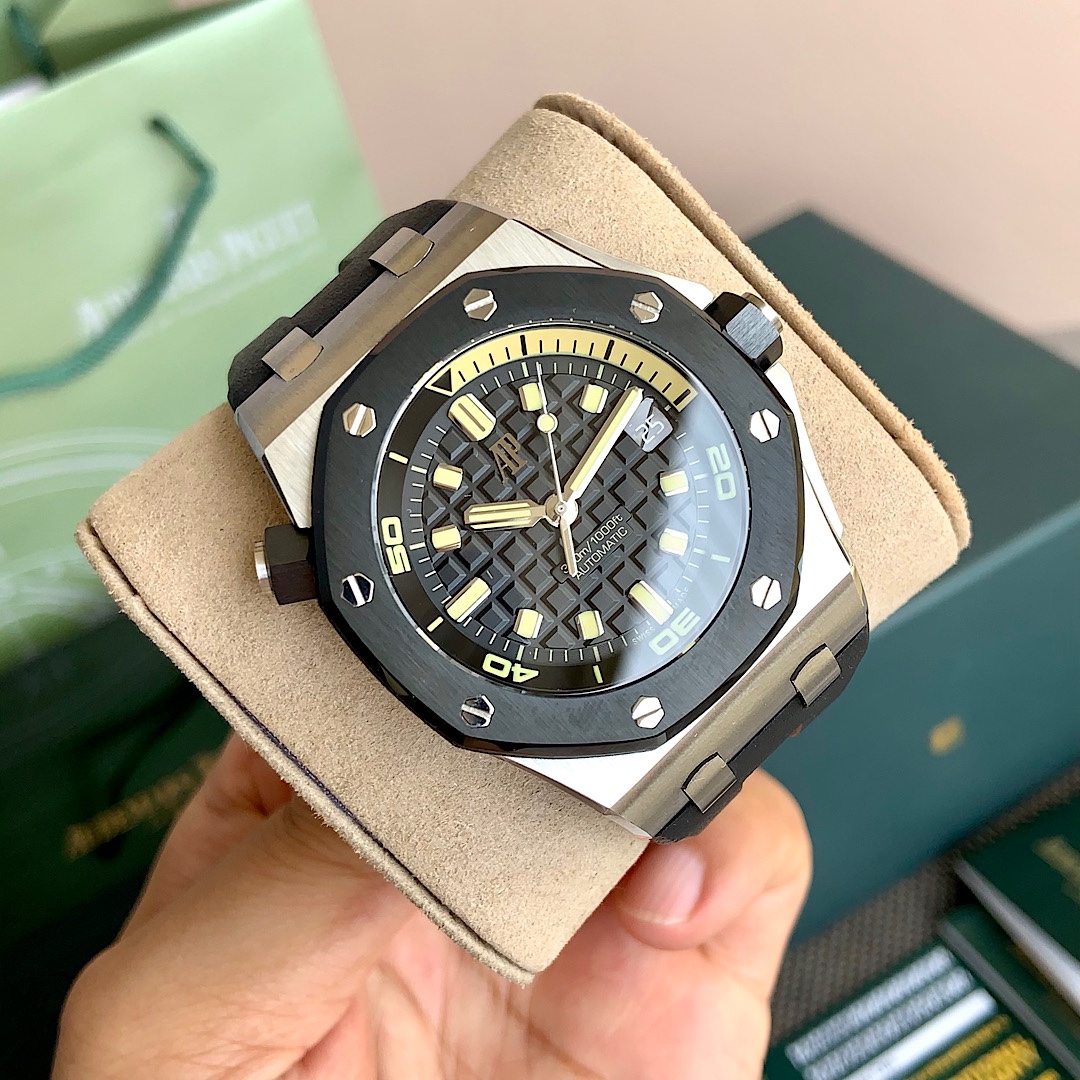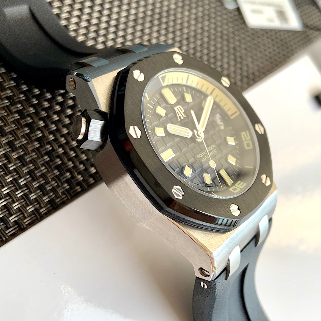 这款手表是AAAAA 1:1 质量 (非常棒). 使用了和原版一模一样的材料. 商标部分也保持了和爱彼/Audemars Piguet一样. 图片拍摄是实物手表拍摄, 您所收到的实物保证和我们图片一模一样.
