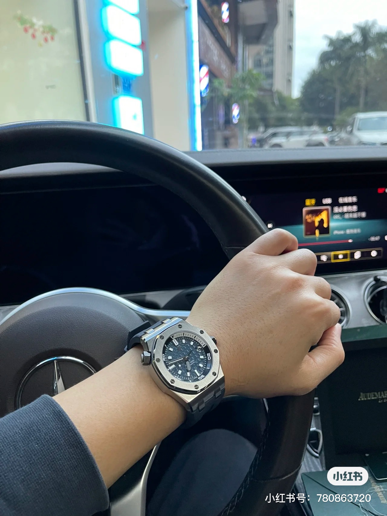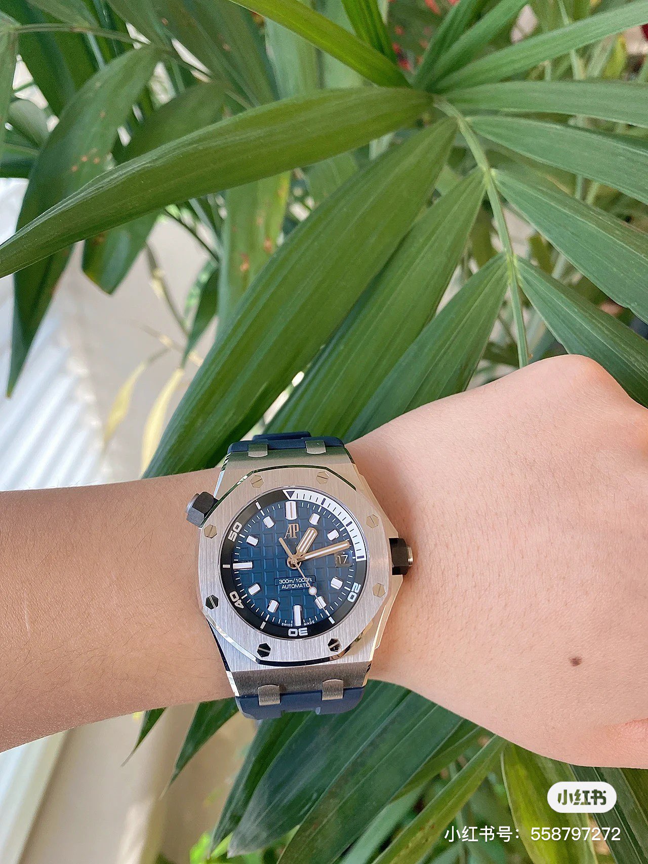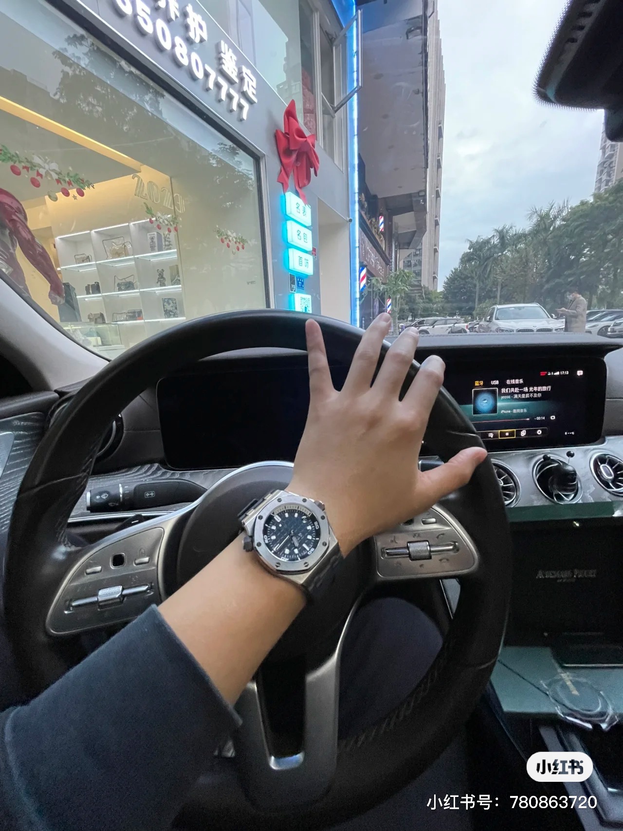 这款手表是AAAAA 1:1 质量 (非常棒). 使用了和原版一模一样的材料. 商标部分也保持了和爱彼/Audemars Piguet一样. 图片拍摄是实物手表拍摄, 您所收到的实物保证和我们图片一模一样.