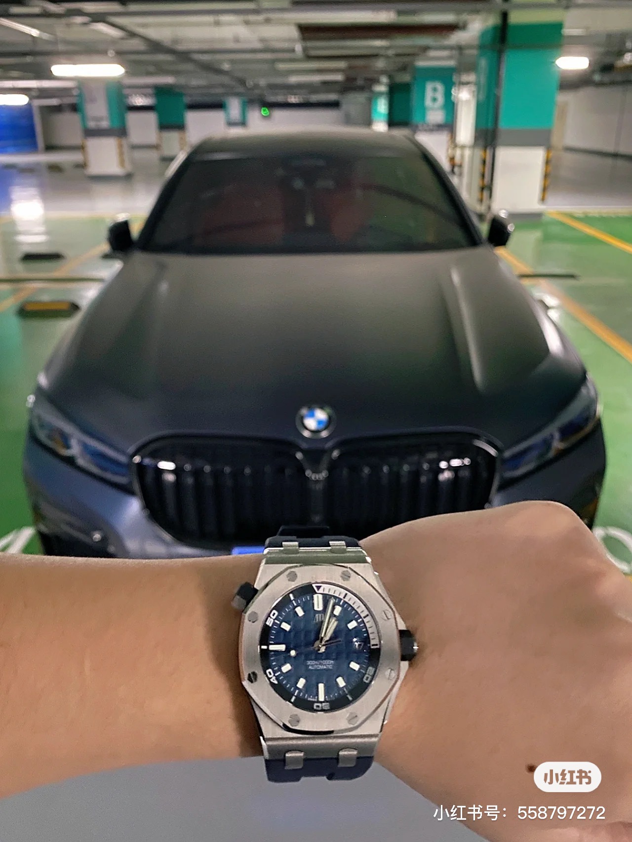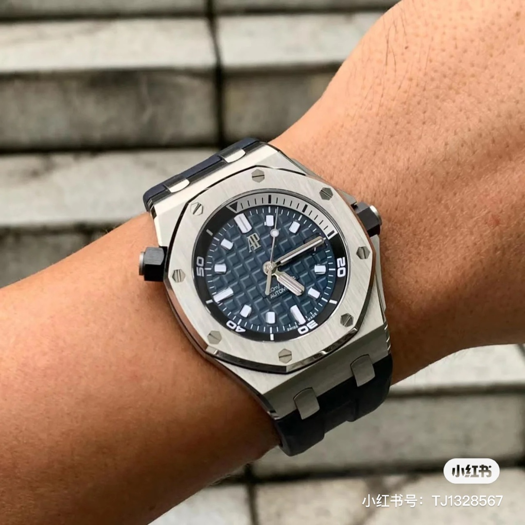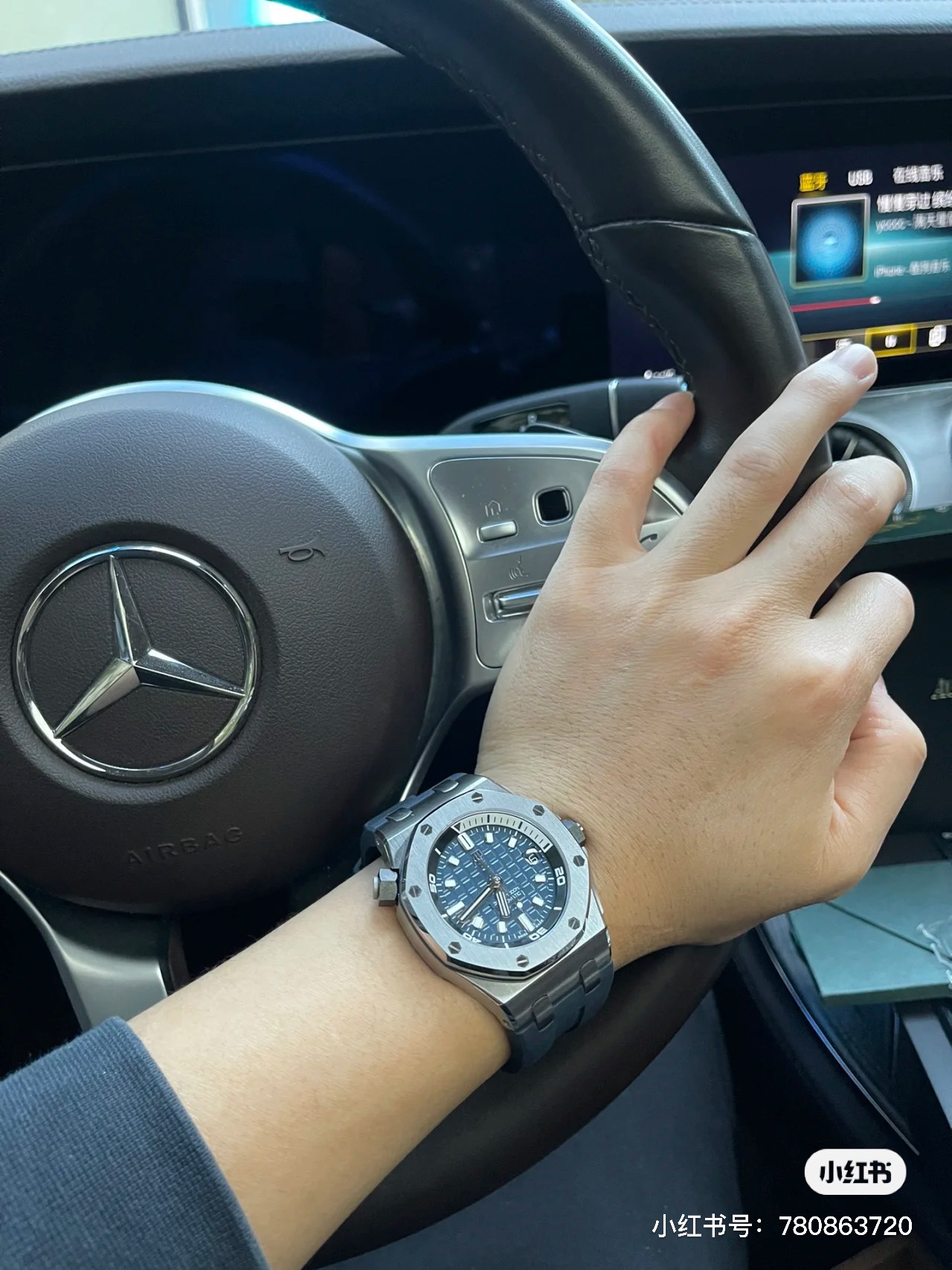 这款手表是AAAAA 1:1 质量 (非常棒). 使用了和原版一模一样的材料. 商标部分也保持了和爱彼/Audemars Piguet一样. 图片拍摄是实物手表拍摄, 您所收到的实物保证和我们图片一模一样.