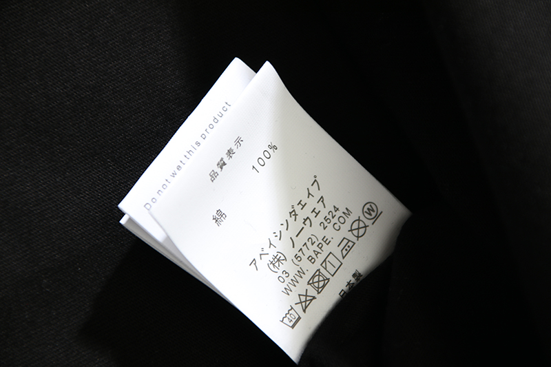这款衣服是AAAAA 1:1 质量 (非常棒). 使用了和原版一模一样的材料. 商标部分也保持了和Bape一样. 图片拍摄是实物衣服拍摄, 您所收到的实物保证和我们图片一模一样.