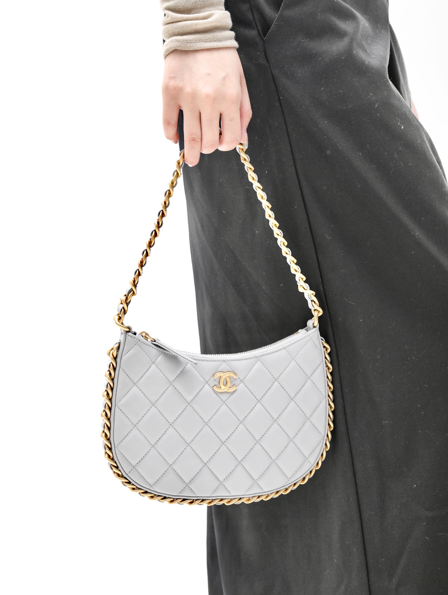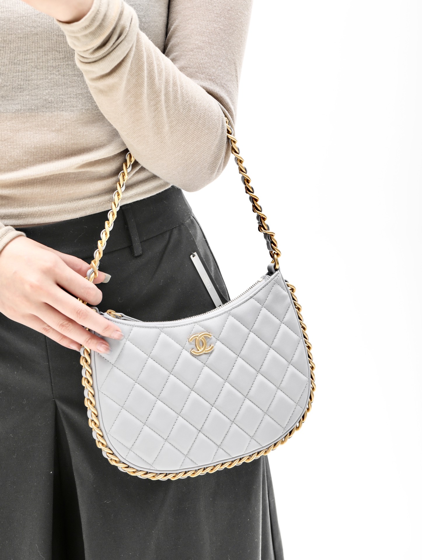 这款包包是AAAAA 1:1 质量 (非常棒). 使用了和原版一模一样的材料. 商标部分也保持了和香奈儿/Chanel一样. 图片拍摄是实物包包拍摄, 您所收到的实物保证和我们图片一模一样.