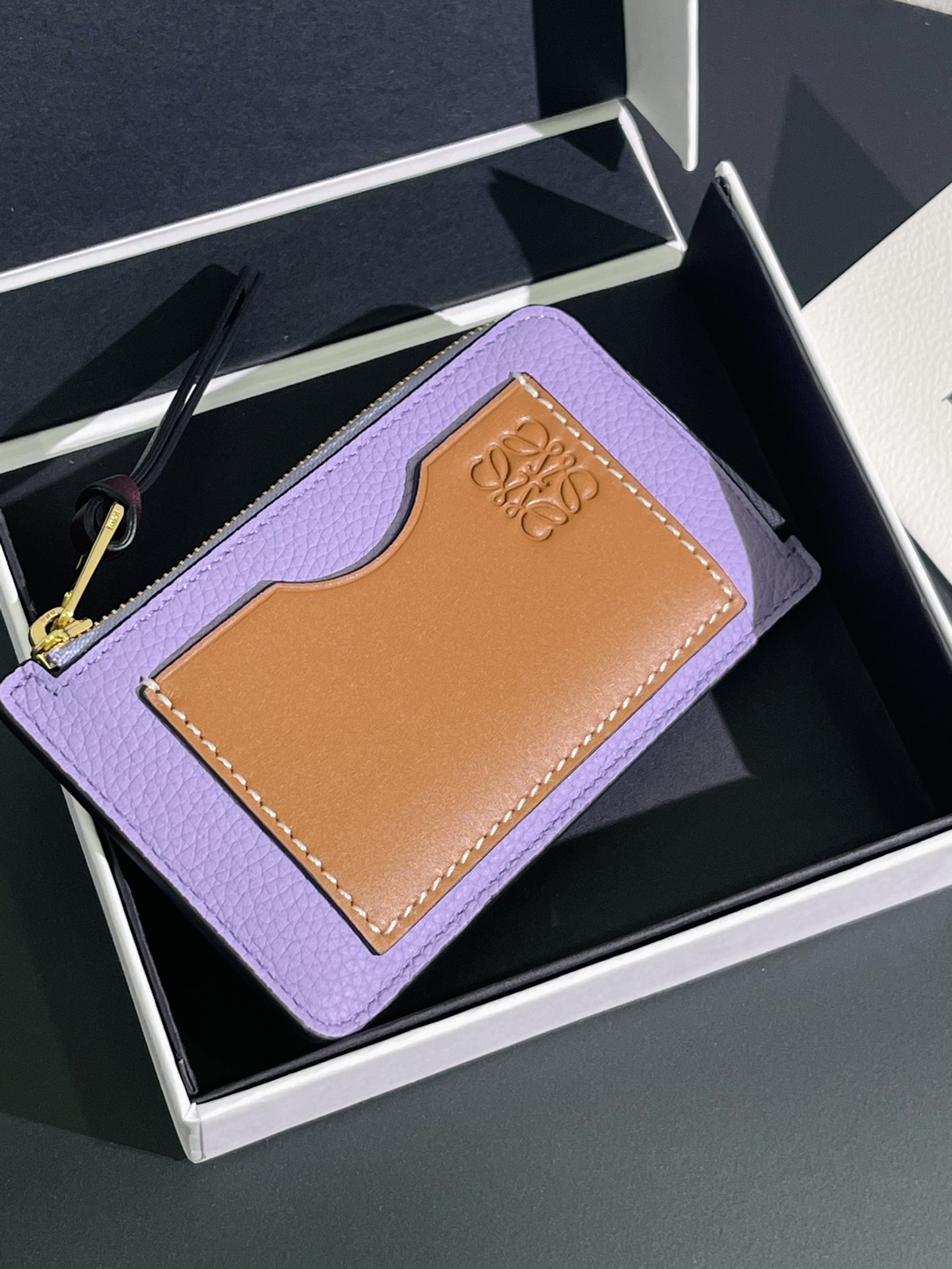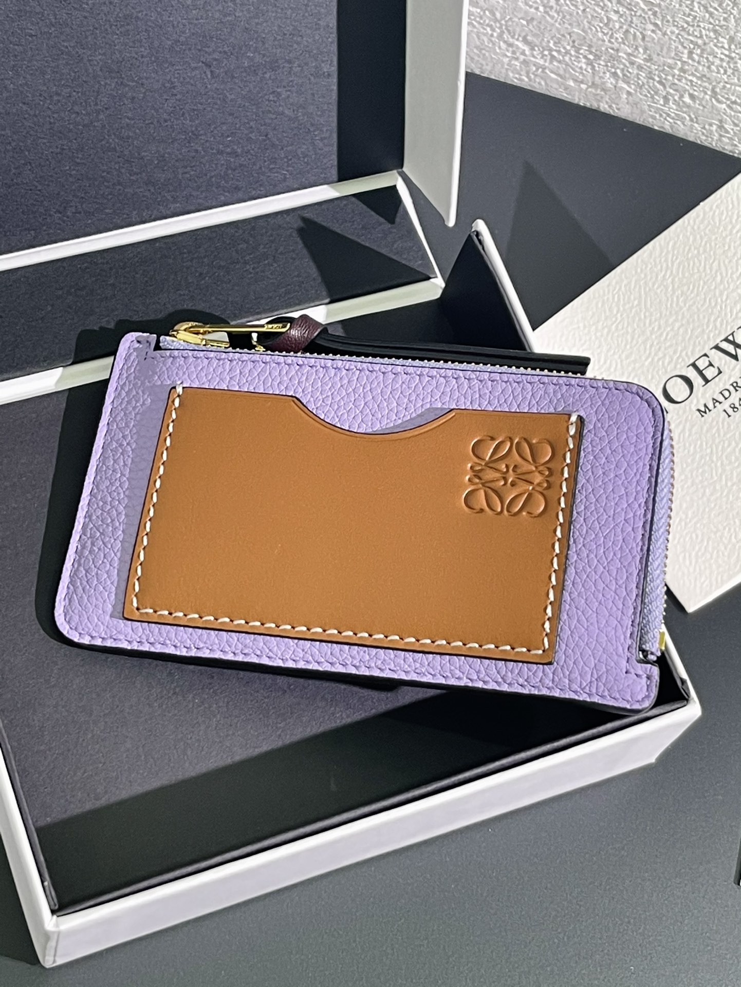 这款钱包是AAAAA 1:1 质量 (非常棒). 使用了和原版一模一样的材料. 商标部分也保持了和罗意威/Loewe一样. 图片拍摄是实物钱包拍摄, 您所收到的实物保证和我们图片一模一样.