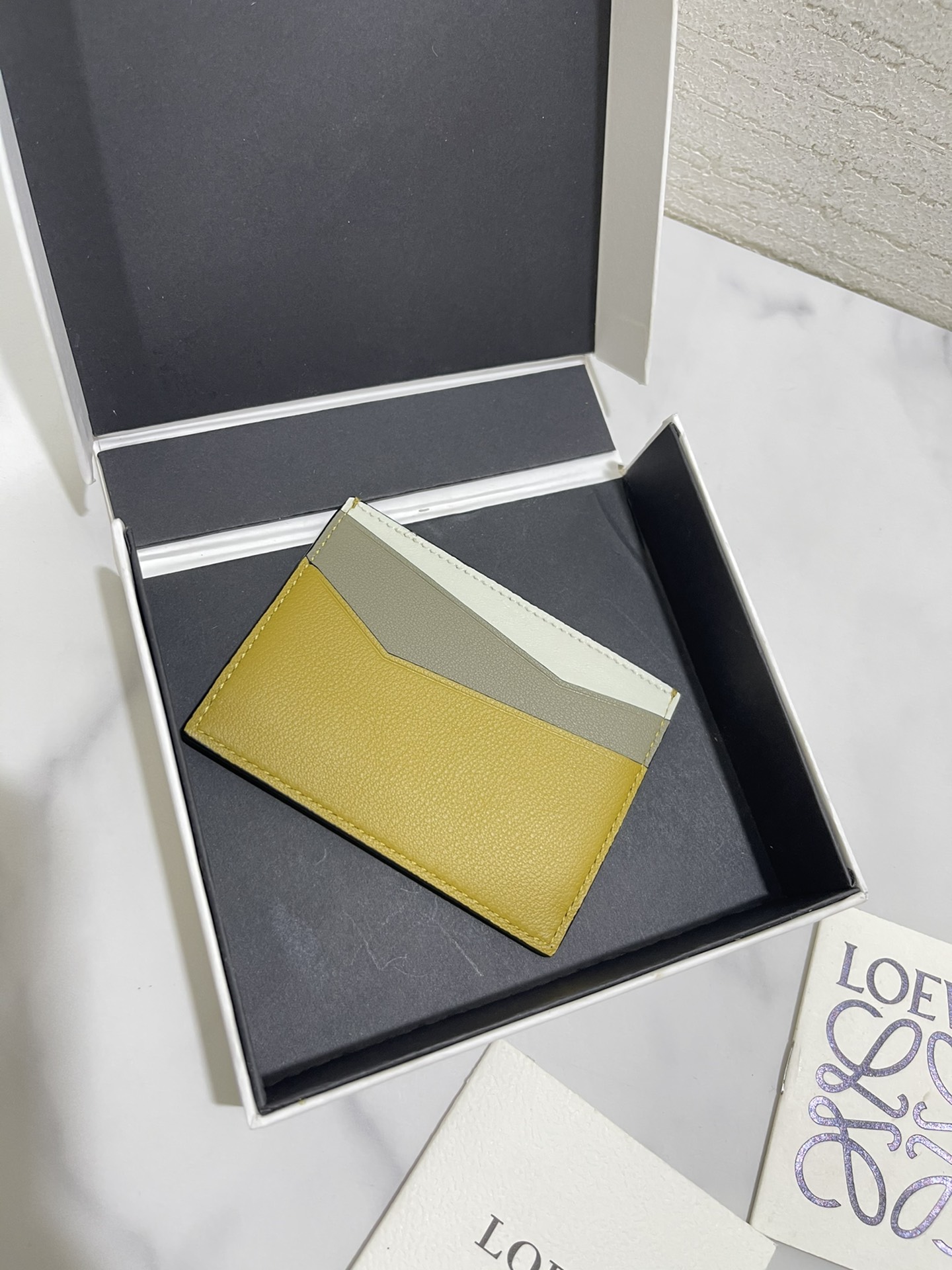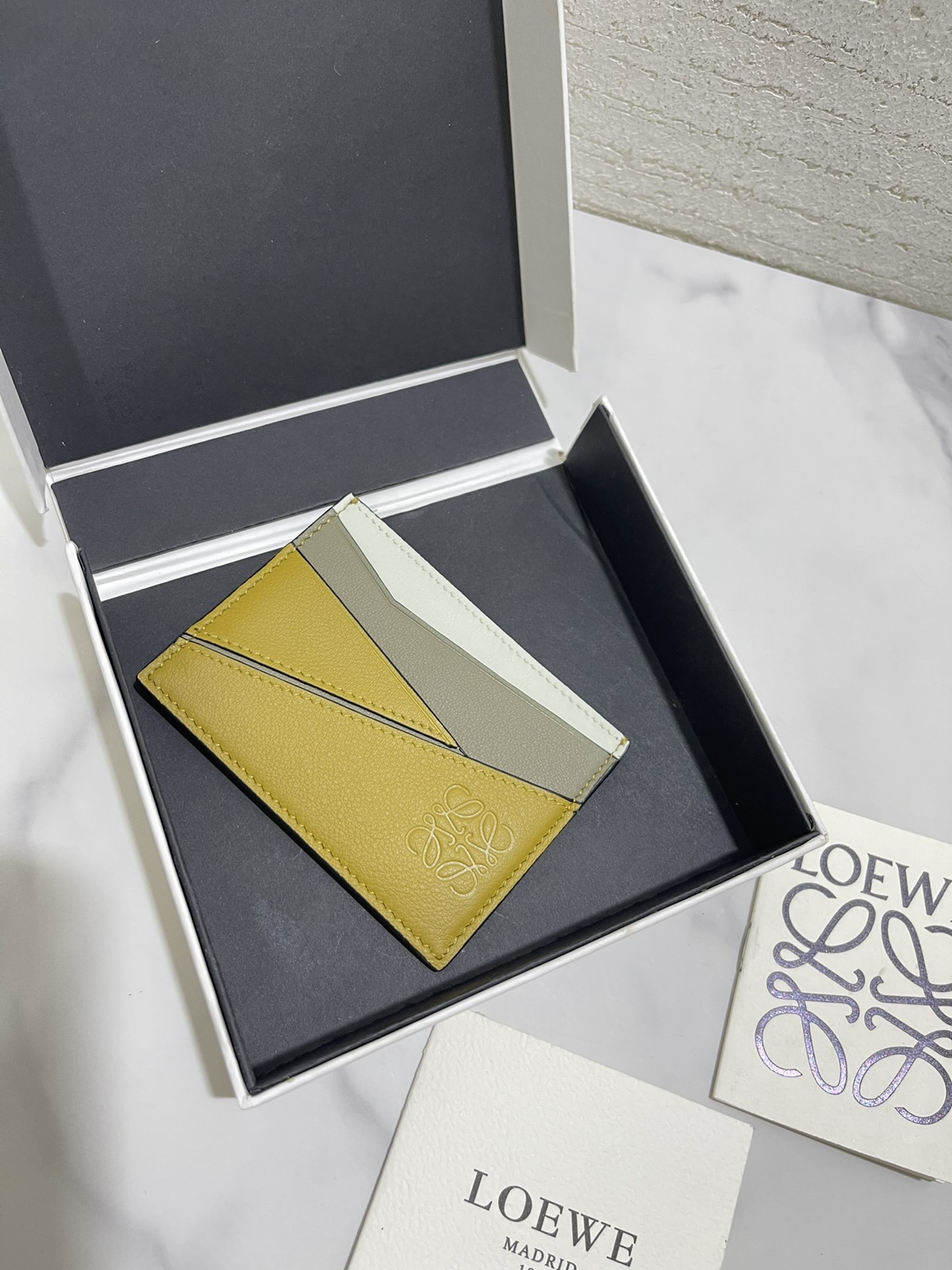 这款钱包是AAAAA 1:1 质量 (非常棒). 使用了和原版一模一样的材料. 商标部分也保持了和罗意威/Loewe一样. 图片拍摄是实物钱包拍摄, 您所收到的实物保证和我们图片一模一样.