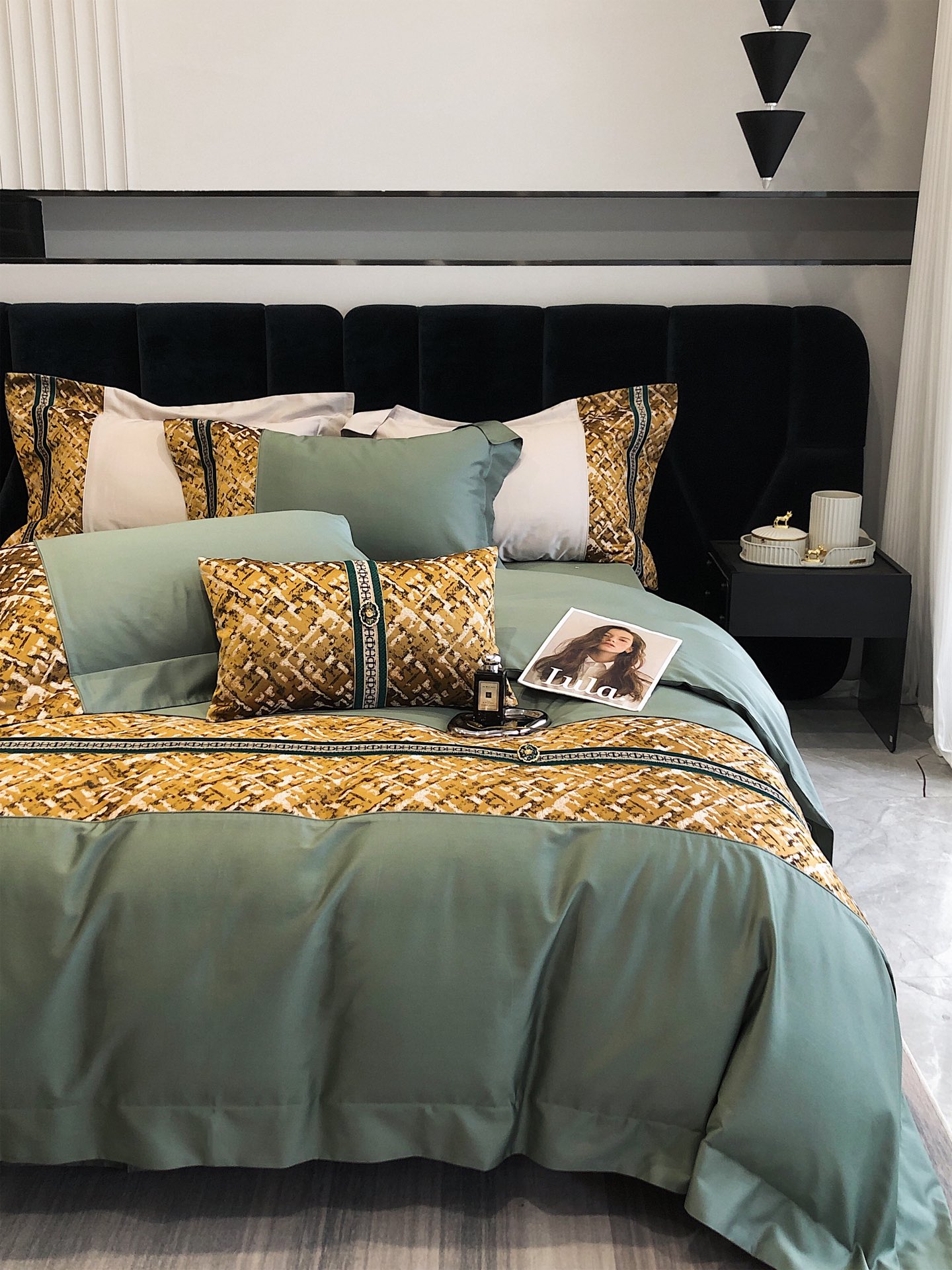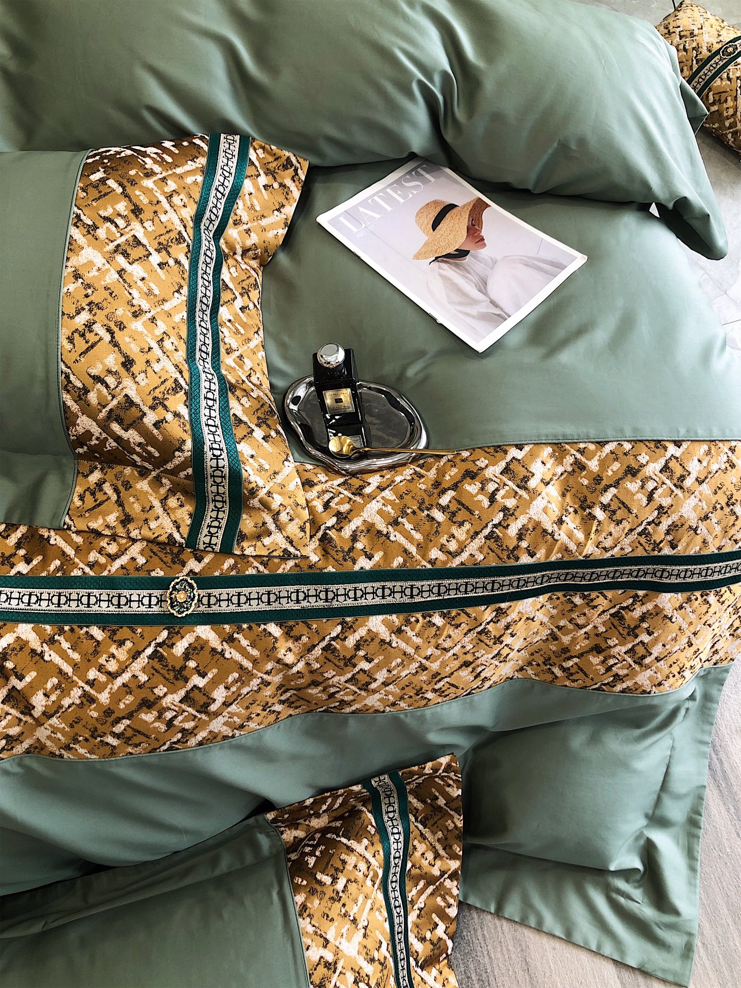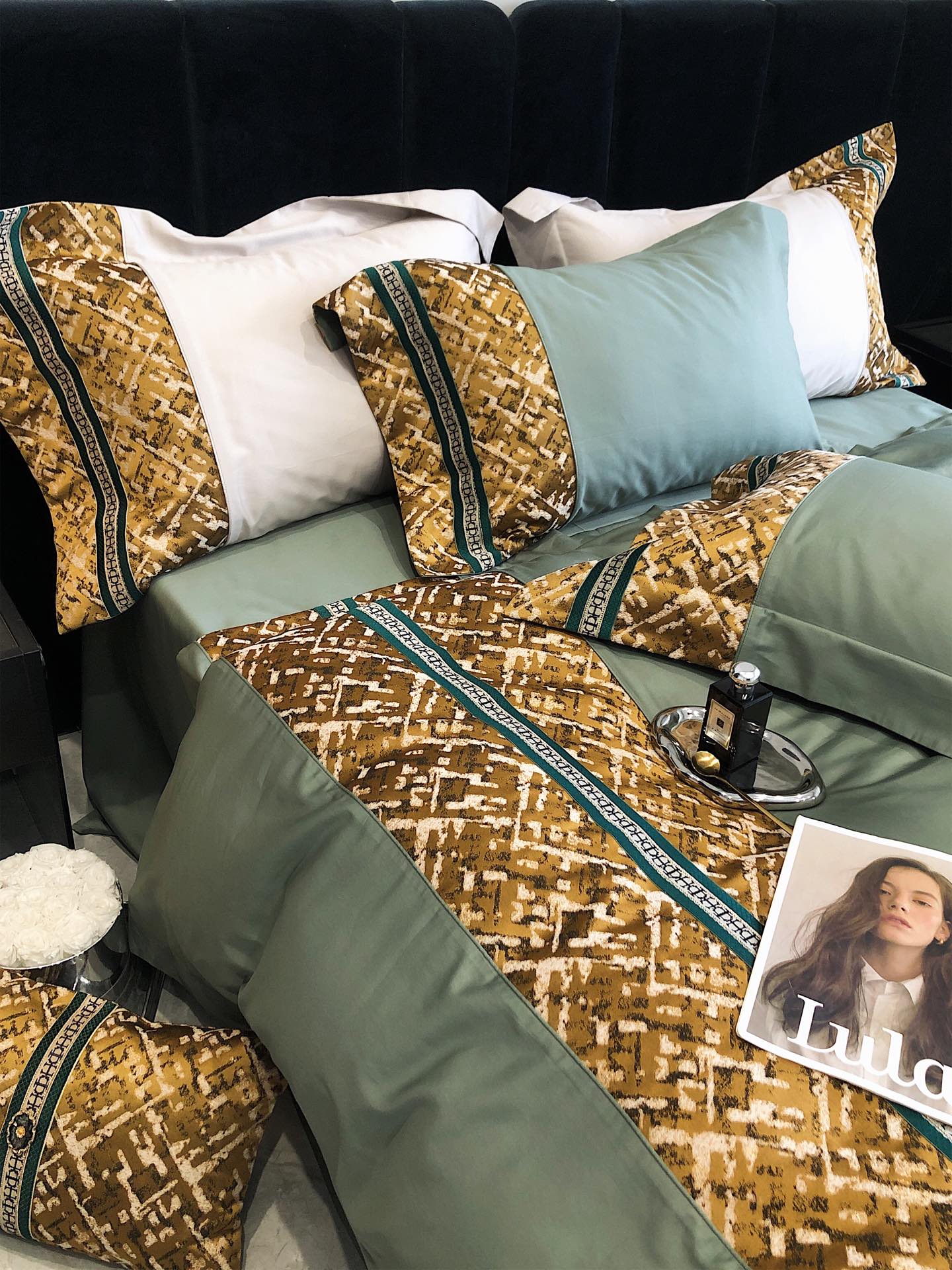 这款床上四件套是AAAAA 1:1 质量 (非常棒). 使用了和原版一模一样的材料. 商标部分也保持了和一样. 图片拍摄是实物床上四件套拍摄, 您所收到的实物保证和我们图片一模一样.