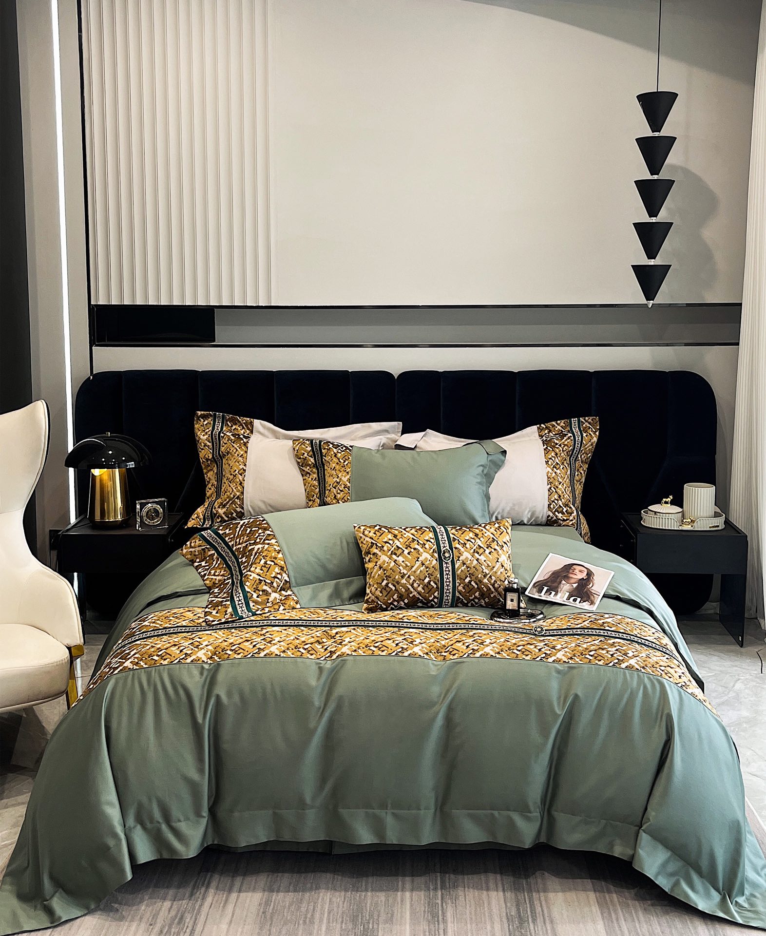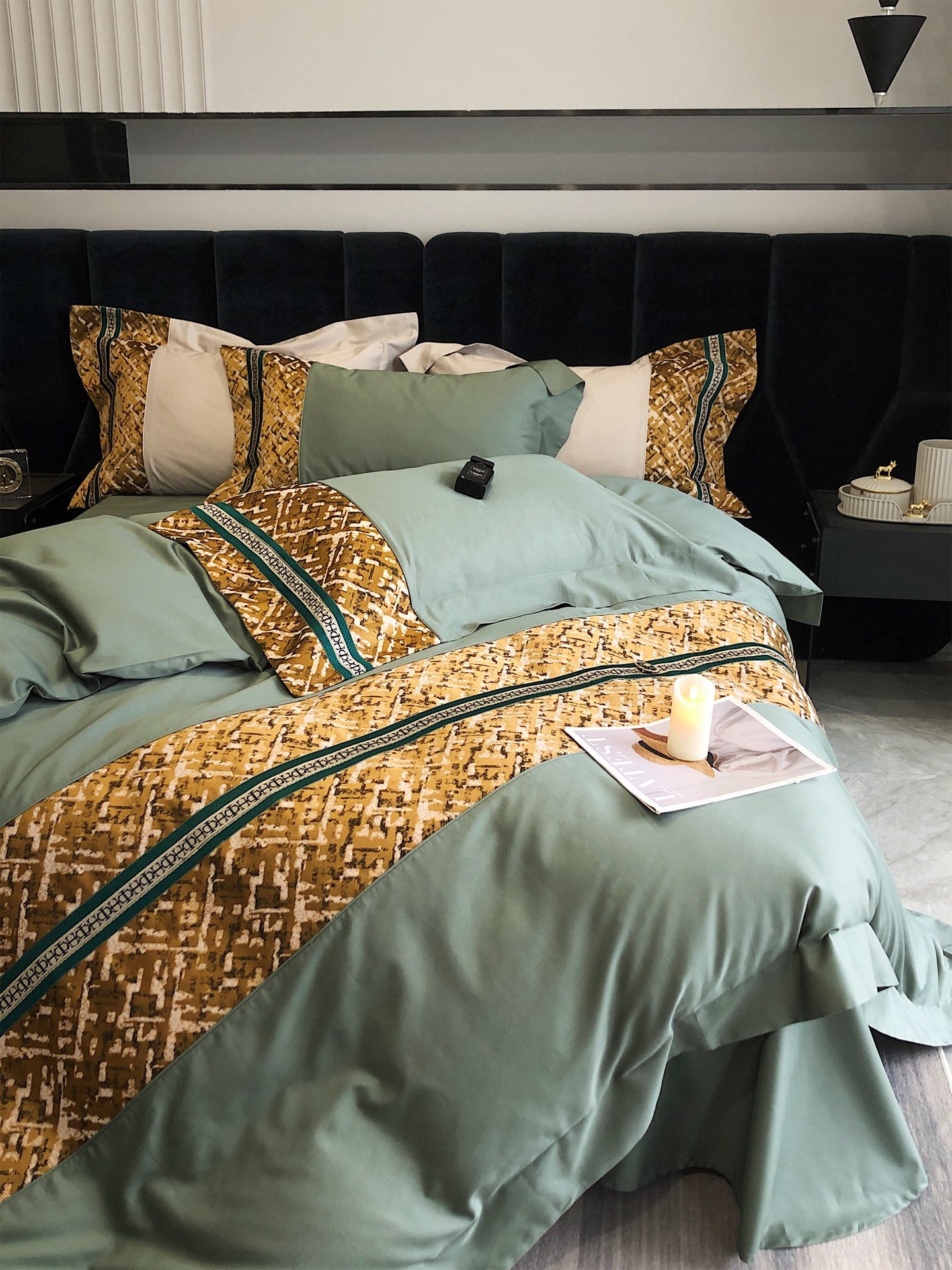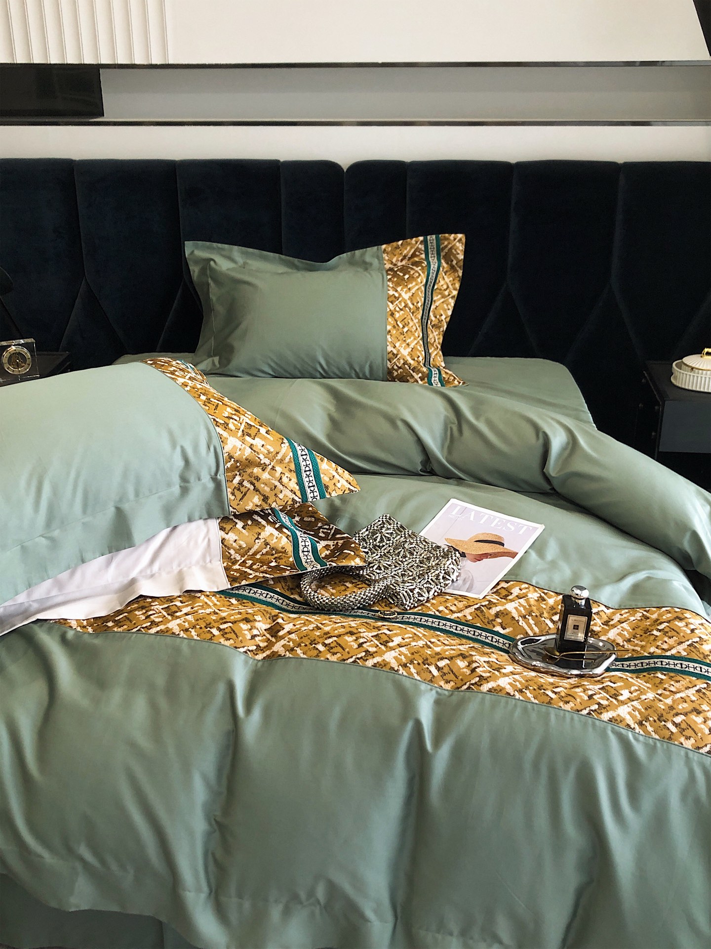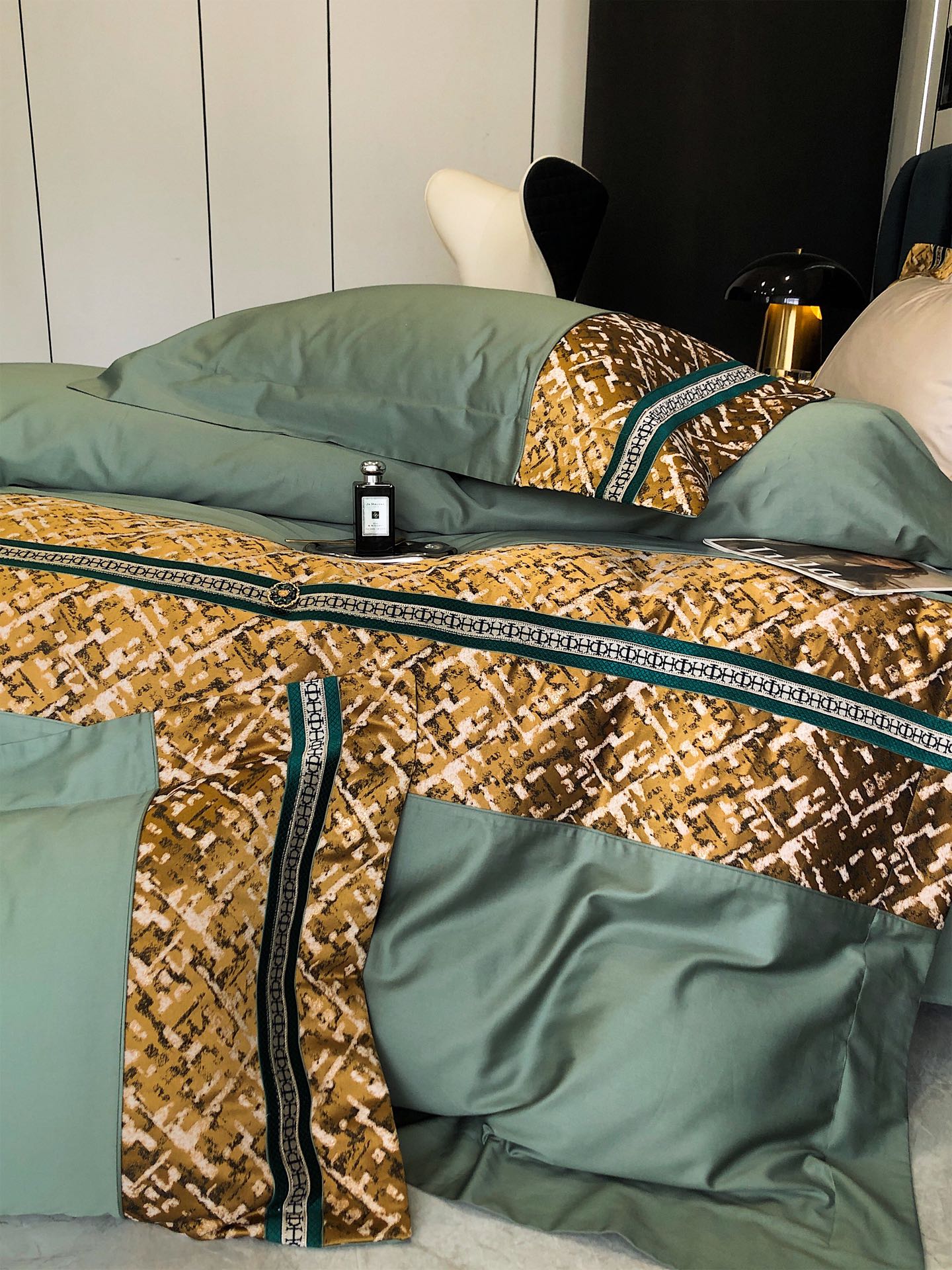 这款床上四件套是AAAAA 1:1 质量 (非常棒). 使用了和原版一模一样的材料. 商标部分也保持了和一样. 图片拍摄是实物床上四件套拍摄, 您所收到的实物保证和我们图片一模一样.