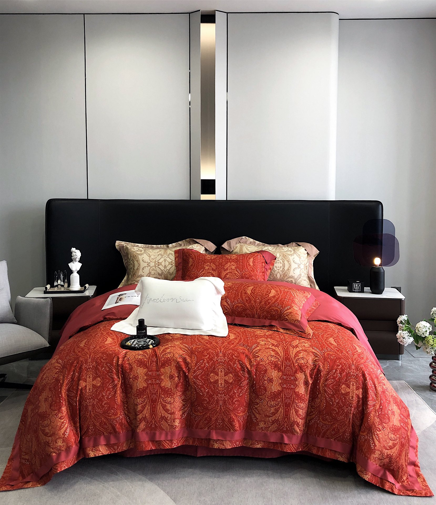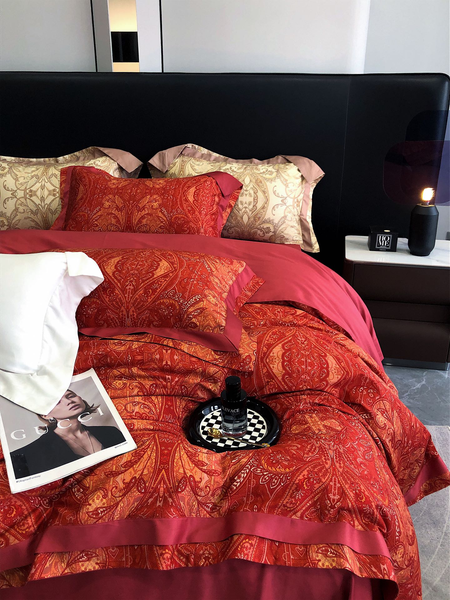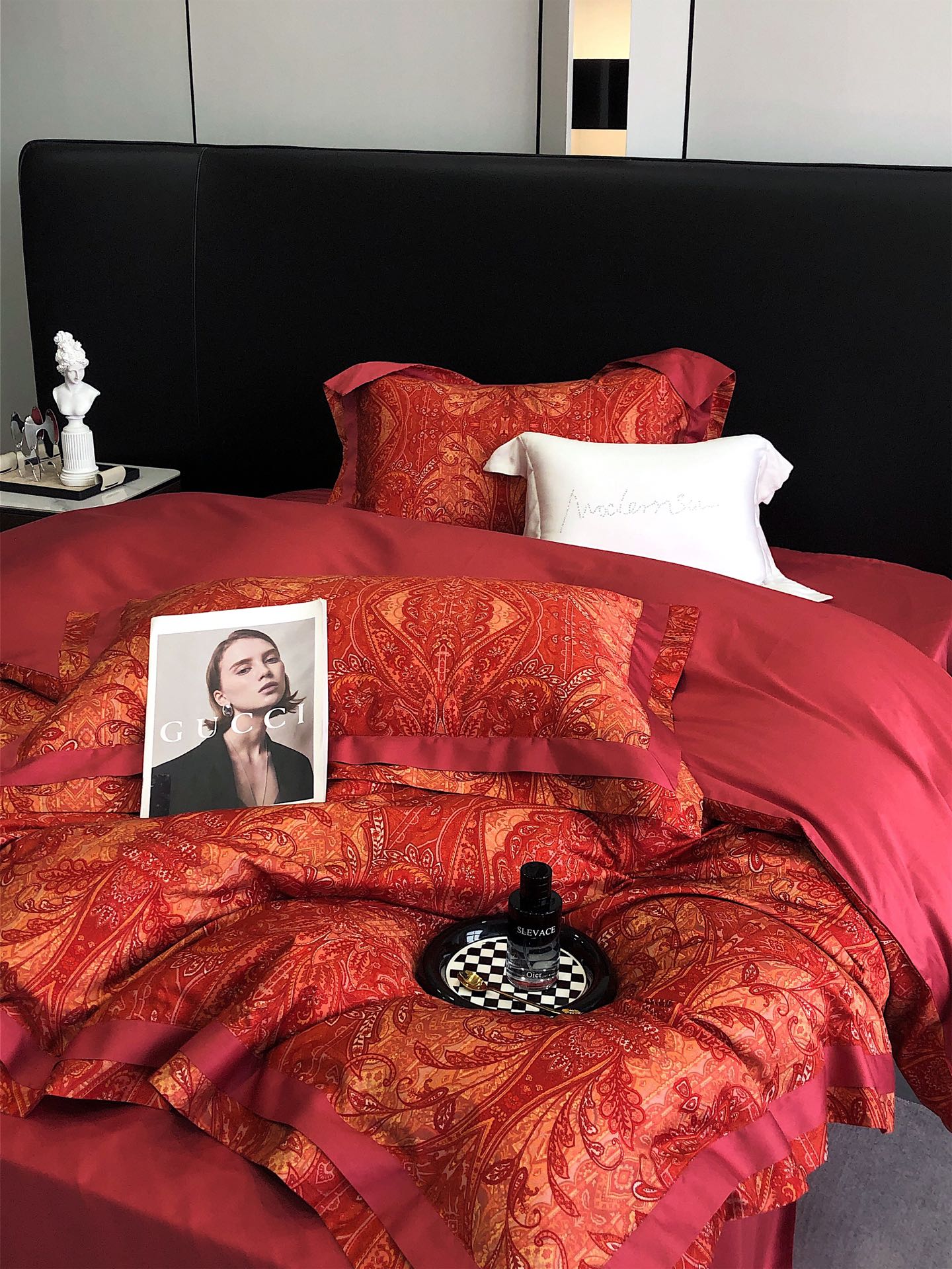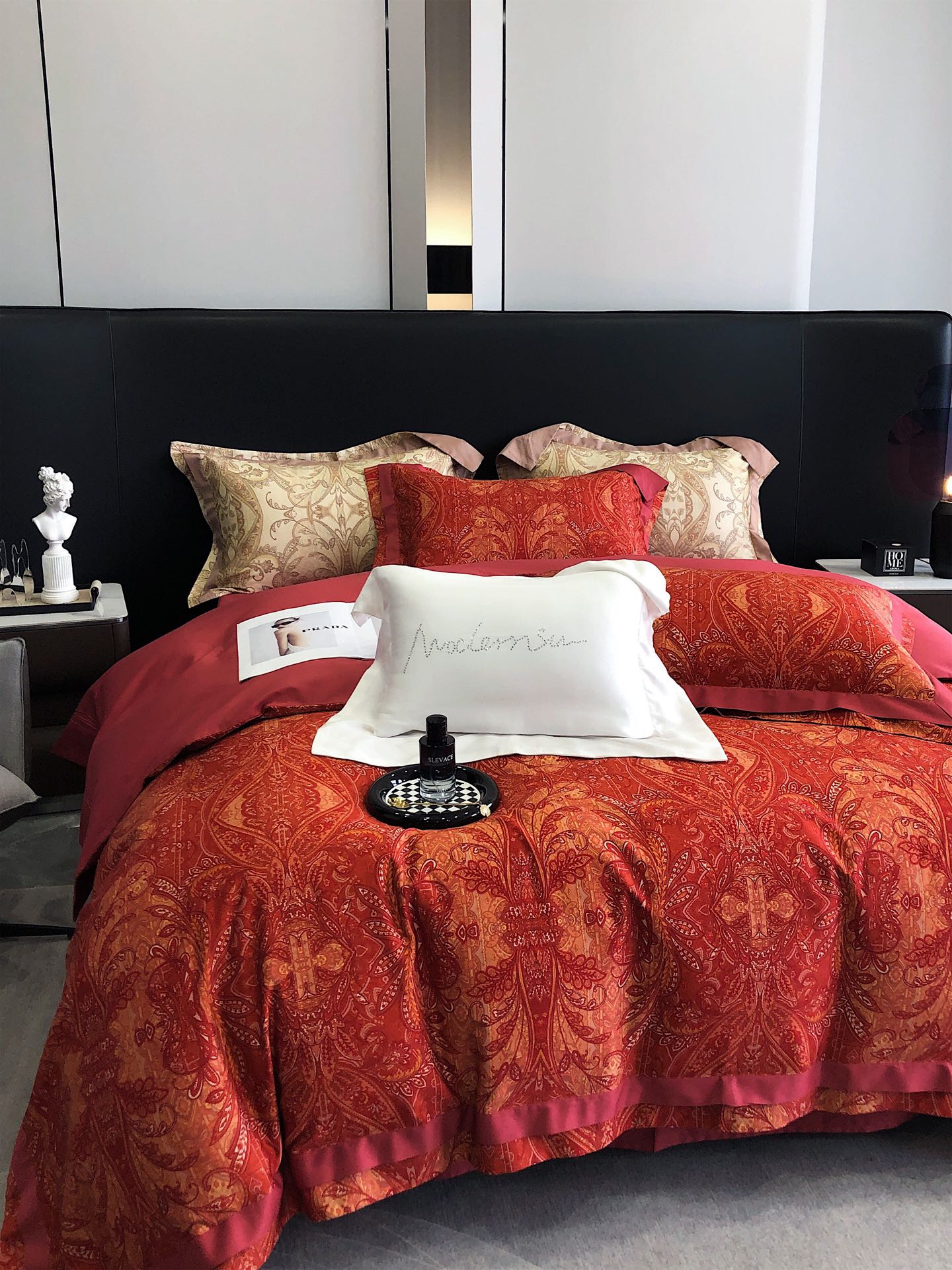 这款床上四件套是AAAAA 1:1 质量 (非常棒). 使用了和原版一模一样的材料. 商标部分也保持了和一样. 图片拍摄是实物床上四件套拍摄, 您所收到的实物保证和我们图片一模一样.