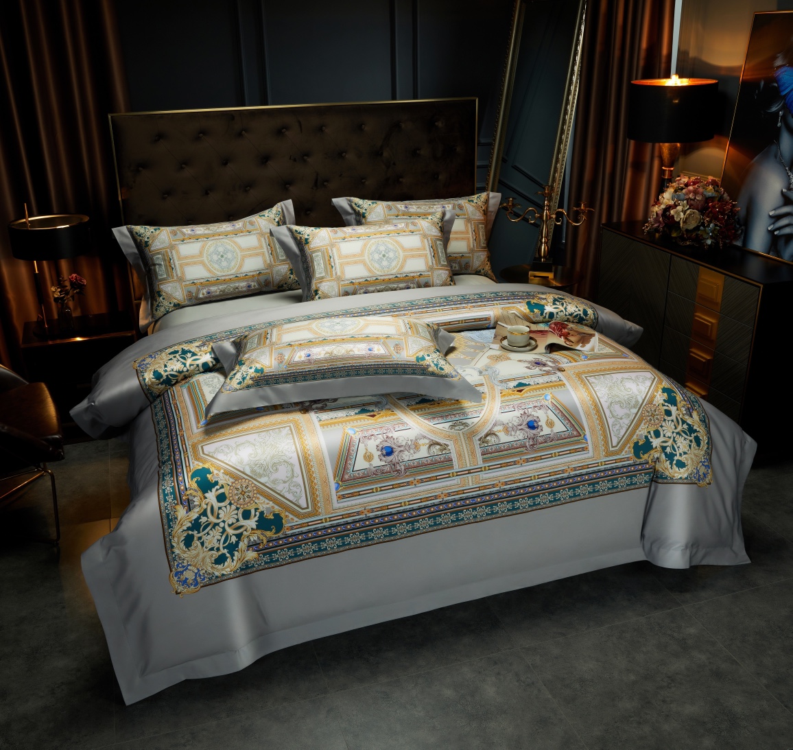 这款床上四件套是AAAAA 1:1 质量 (非常棒). 使用了和原版一模一样的材料. 商标部分也保持了和一样. 图片拍摄是实物床上四件套拍摄, 您所收到的实物保证和我们图片一模一样.