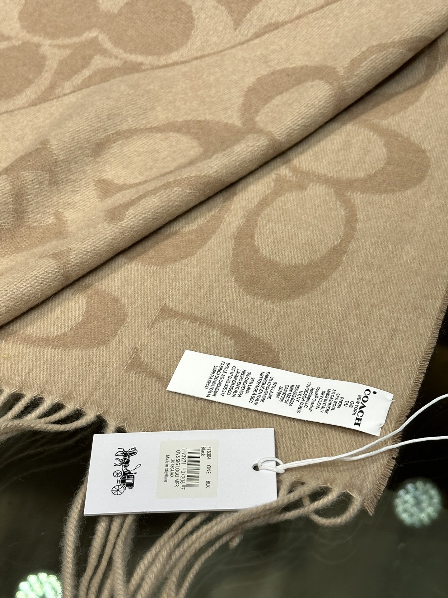 这款围巾是AAAAA 1:1 质量 (非常棒). 使用了和原版一模一样的材料. 商标部分也保持了和蔻驰/Coach一样. 图片拍摄是实物围巾拍摄, 您所收到的实物保证和我们图片一模一样.