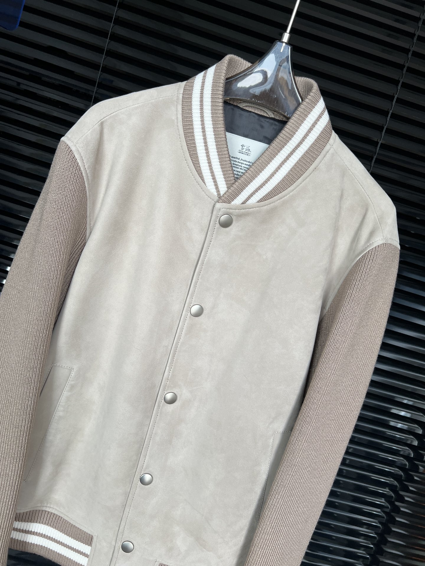 这款衣服是AAAAA 1:1 质量 (非常棒). 使用了和原版一模一样的材料. 商标部分也保持了和Brunello Cucinelli一样. 图片拍摄是实物衣服拍摄, 您所收到的实物保证和我们图片一模一样.