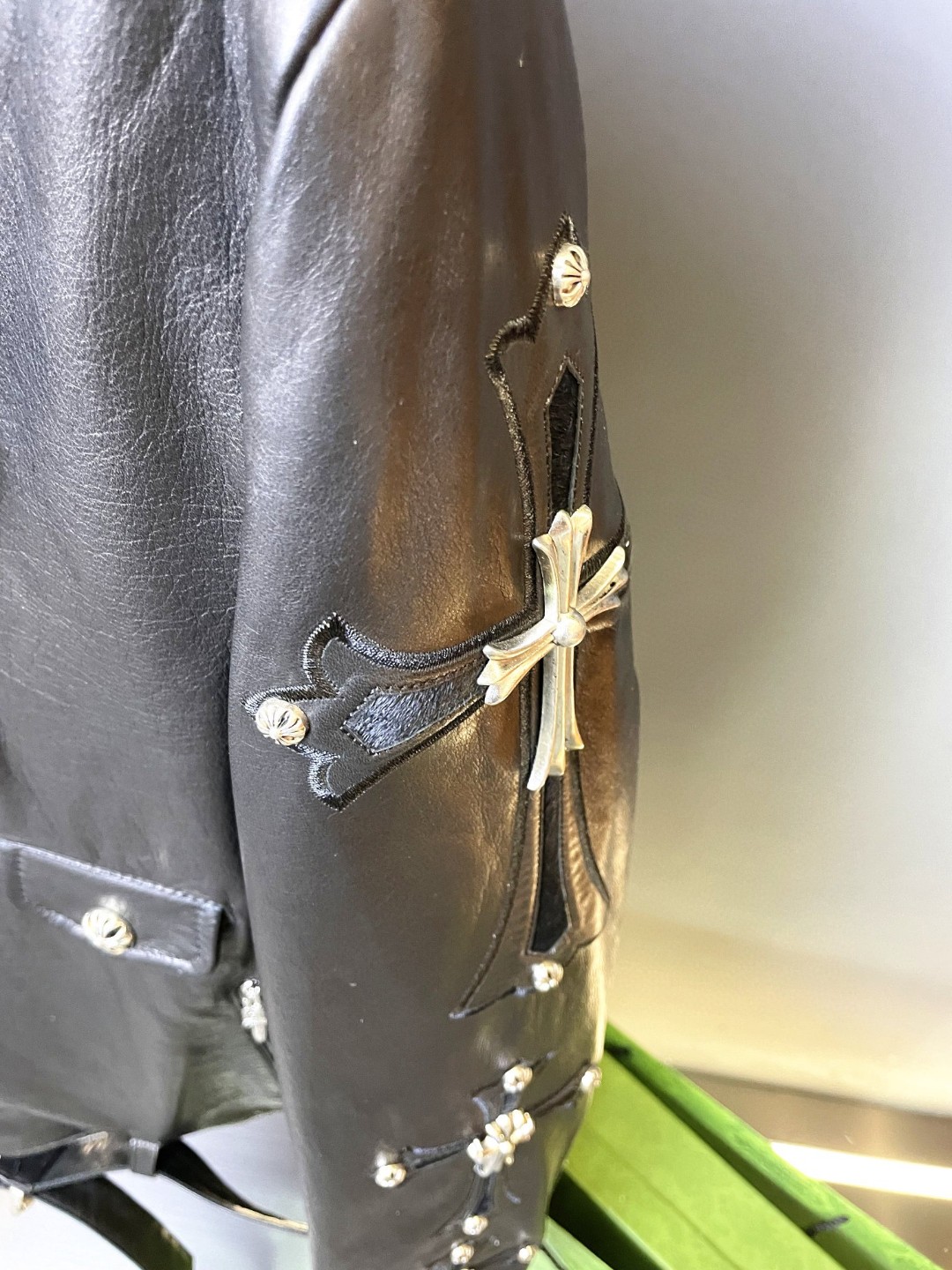 这款衣服是AAAAA 1:1 质量 (非常棒). 使用了和原版一模一样的材料. 商标部分也保持了和克罗心/Chrome Hearts一样. 图片拍摄是实物衣服拍摄, 您所收到的实物保证和我们图片一模一样.