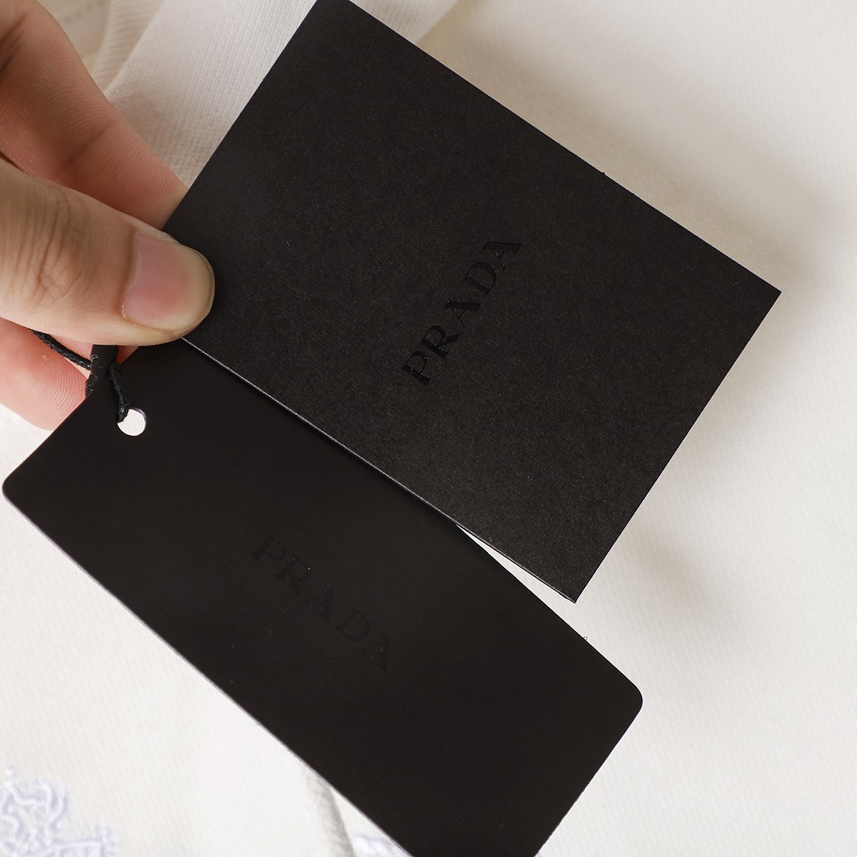 这款衣服是AAAAA 1:1 质量 (非常棒). 使用了和原版一模一样的材料. 商标部分也保持了和普拉达/Prada一样. 图片拍摄是实物衣服拍摄, 您所收到的实物保证和我们图片一模一样.