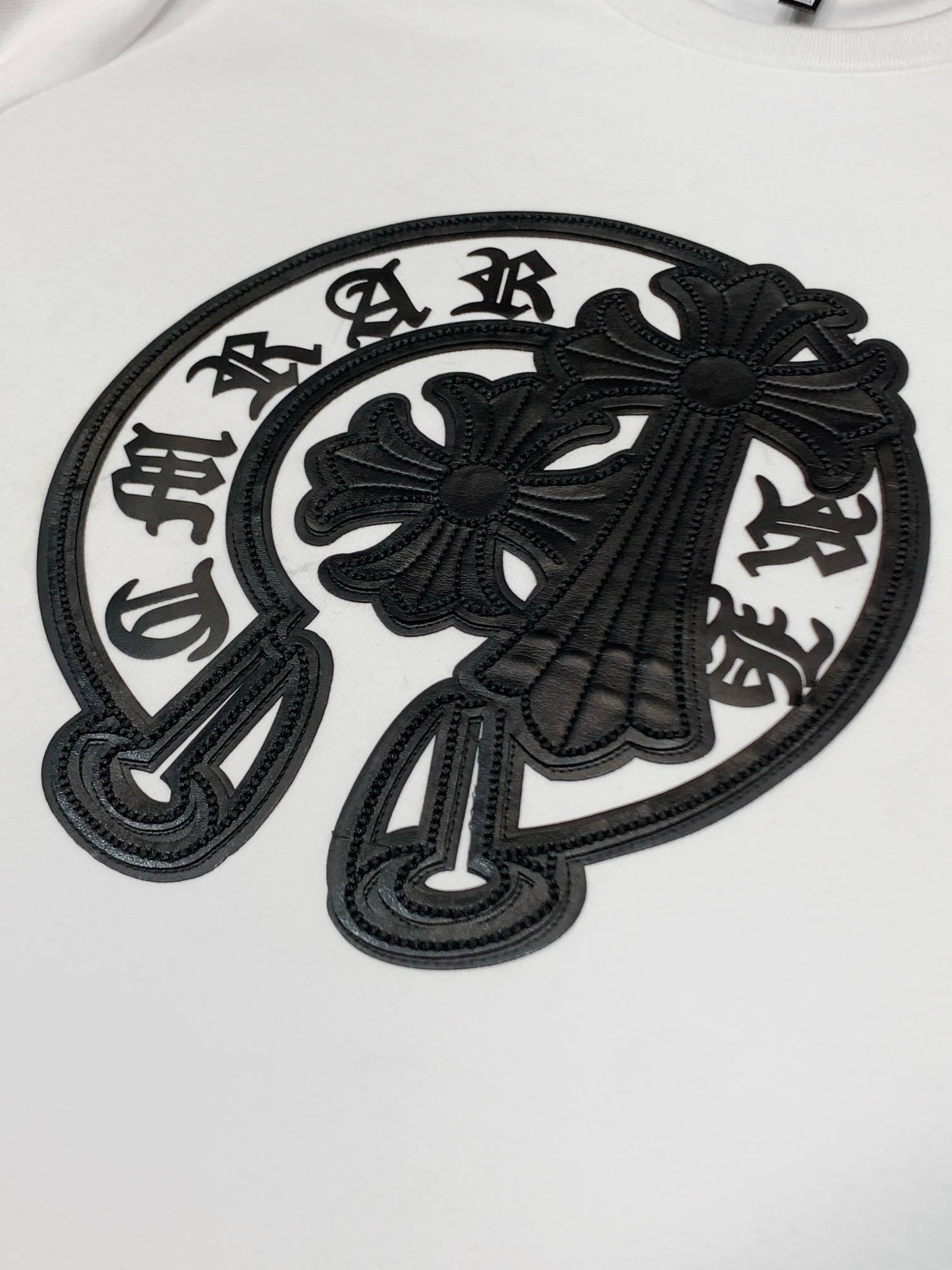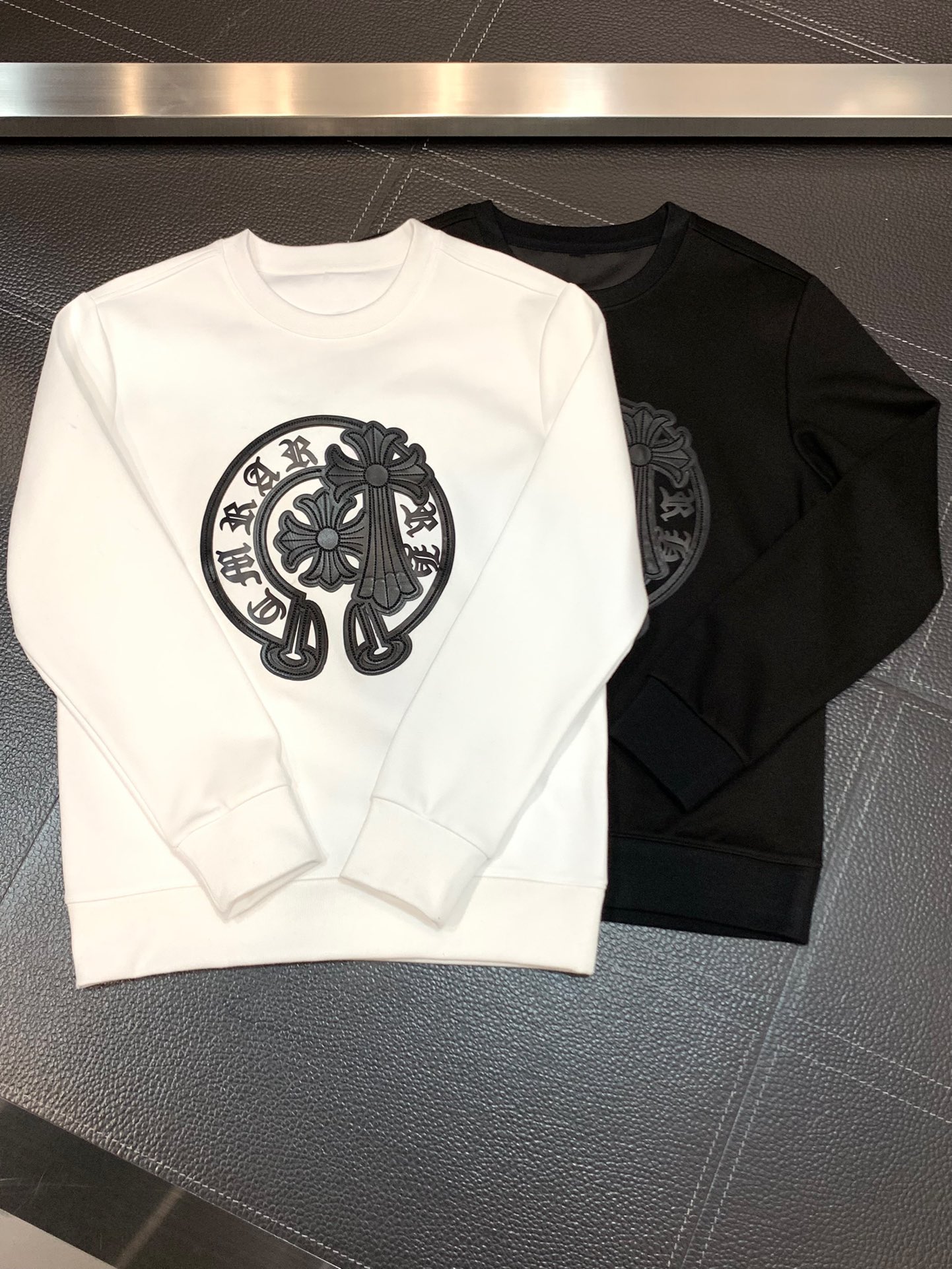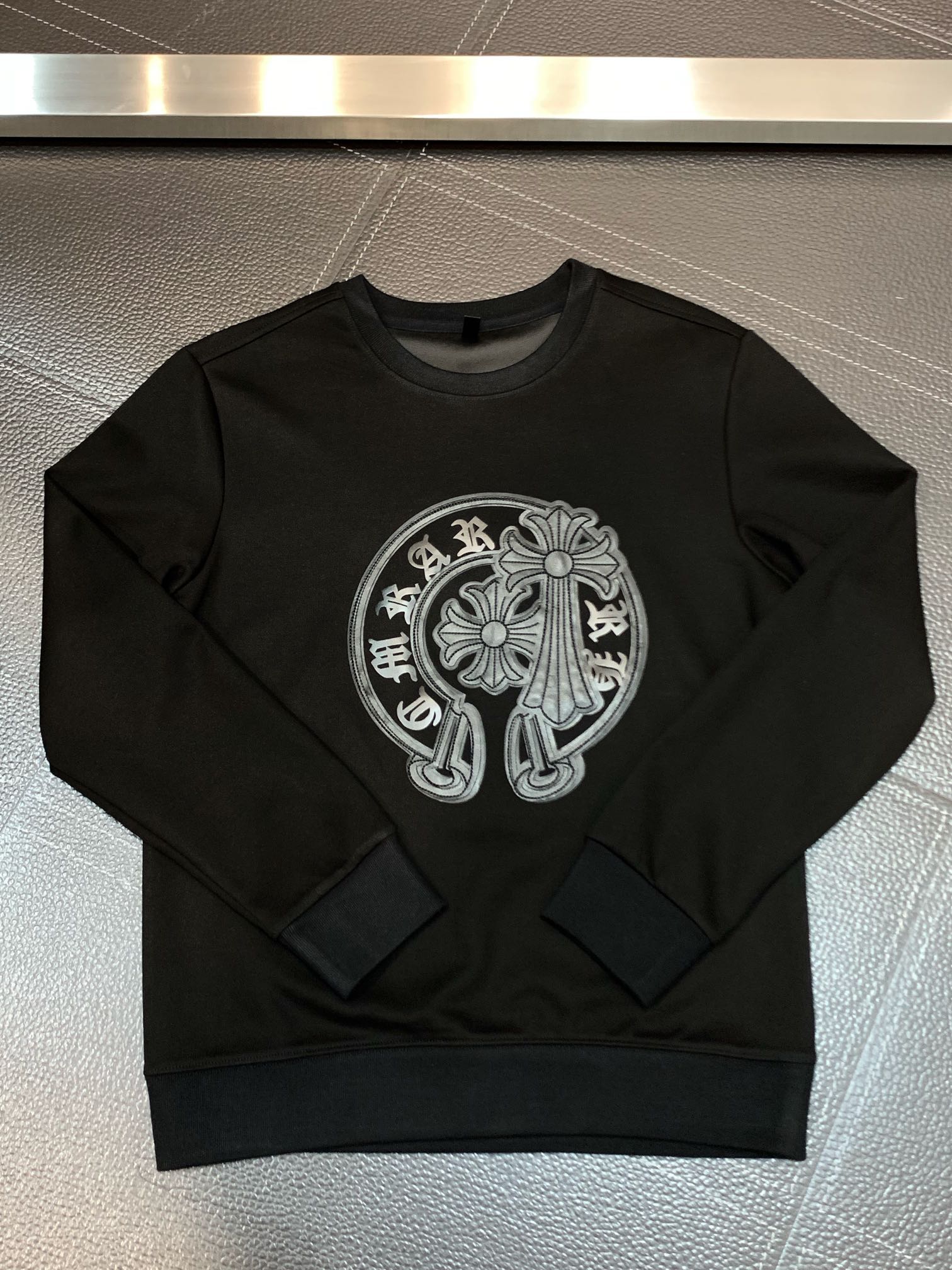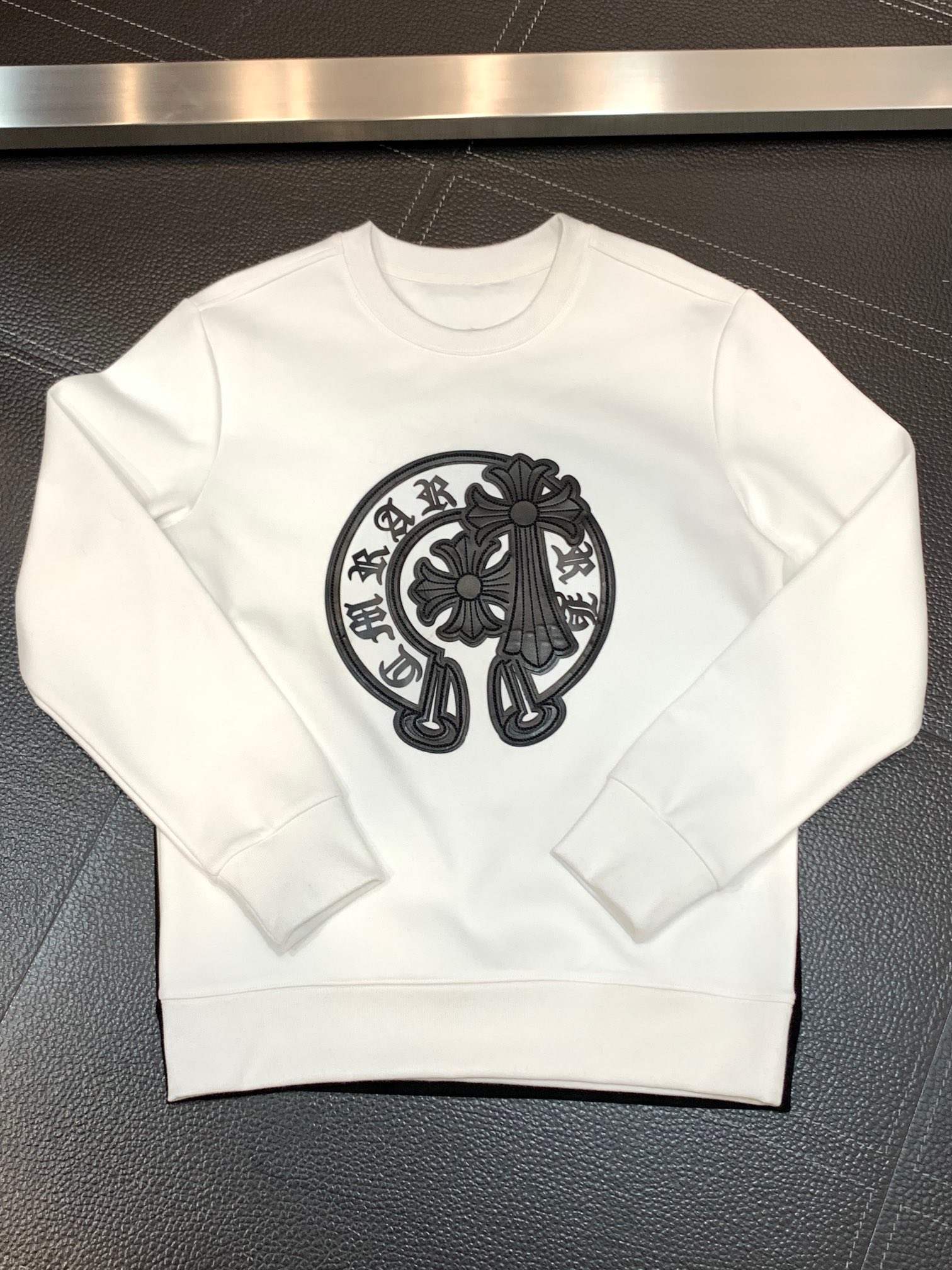 这款衣服是AAAAA 1:1 质量 (非常棒). 使用了和原版一模一样的材料. 商标部分也保持了和克罗心/Chrome Hearts一样. 图片拍摄是实物衣服拍摄, 您所收到的实物保证和我们图片一模一样.