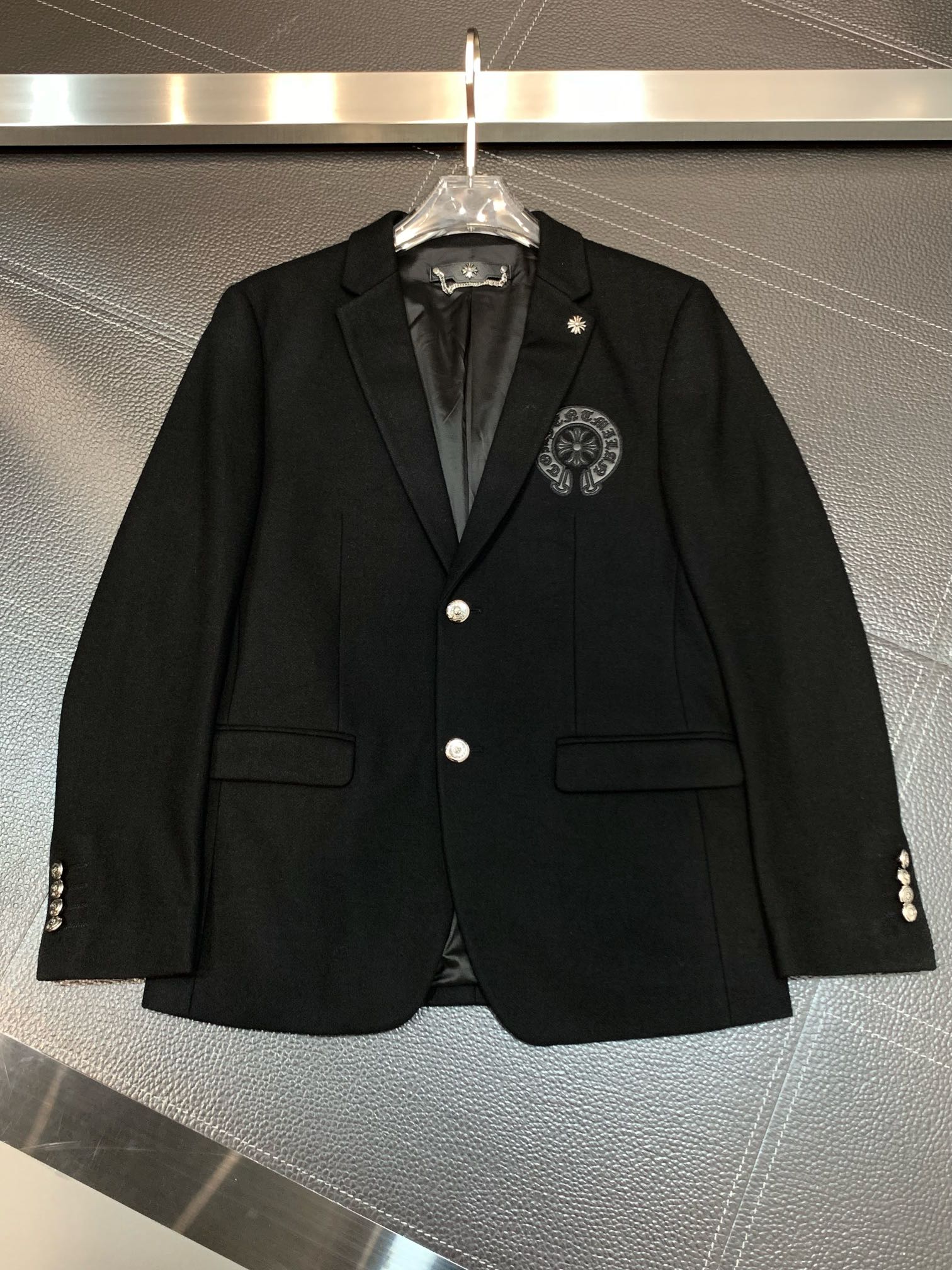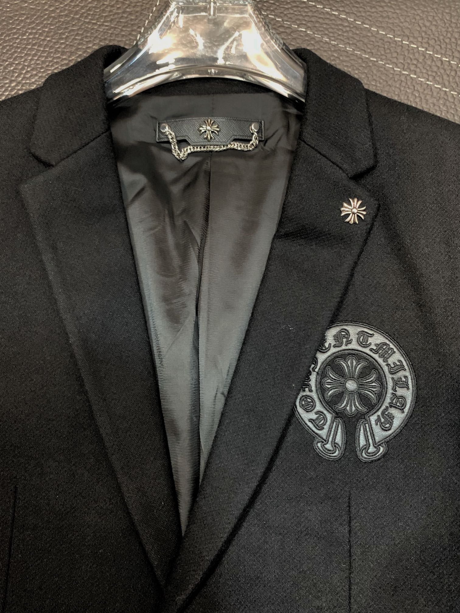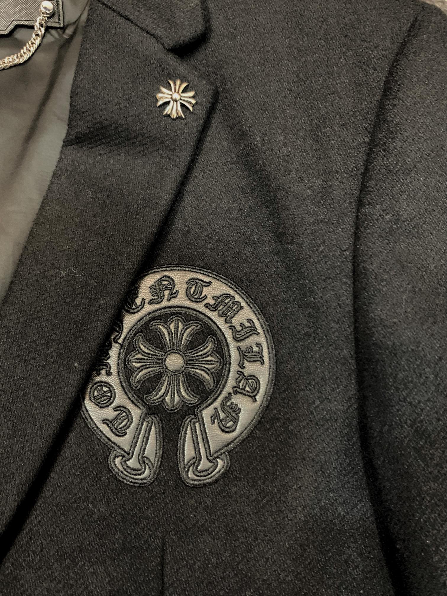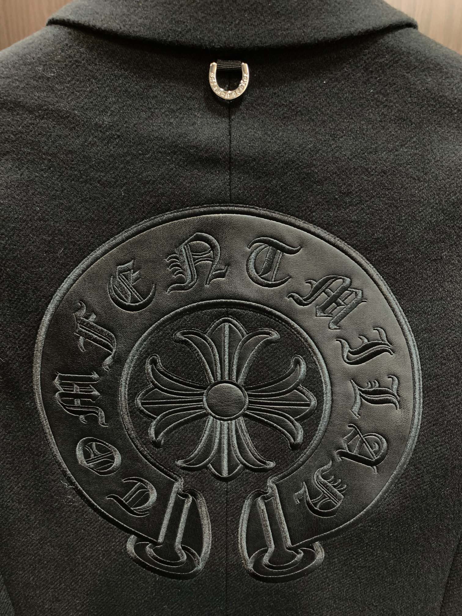 这款衣服是AAAAA 1:1 质量 (非常棒). 使用了和原版一模一样的材料. 商标部分也保持了和克罗心/Chrome Hearts一样. 图片拍摄是实物衣服拍摄, 您所收到的实物保证和我们图片一模一样.