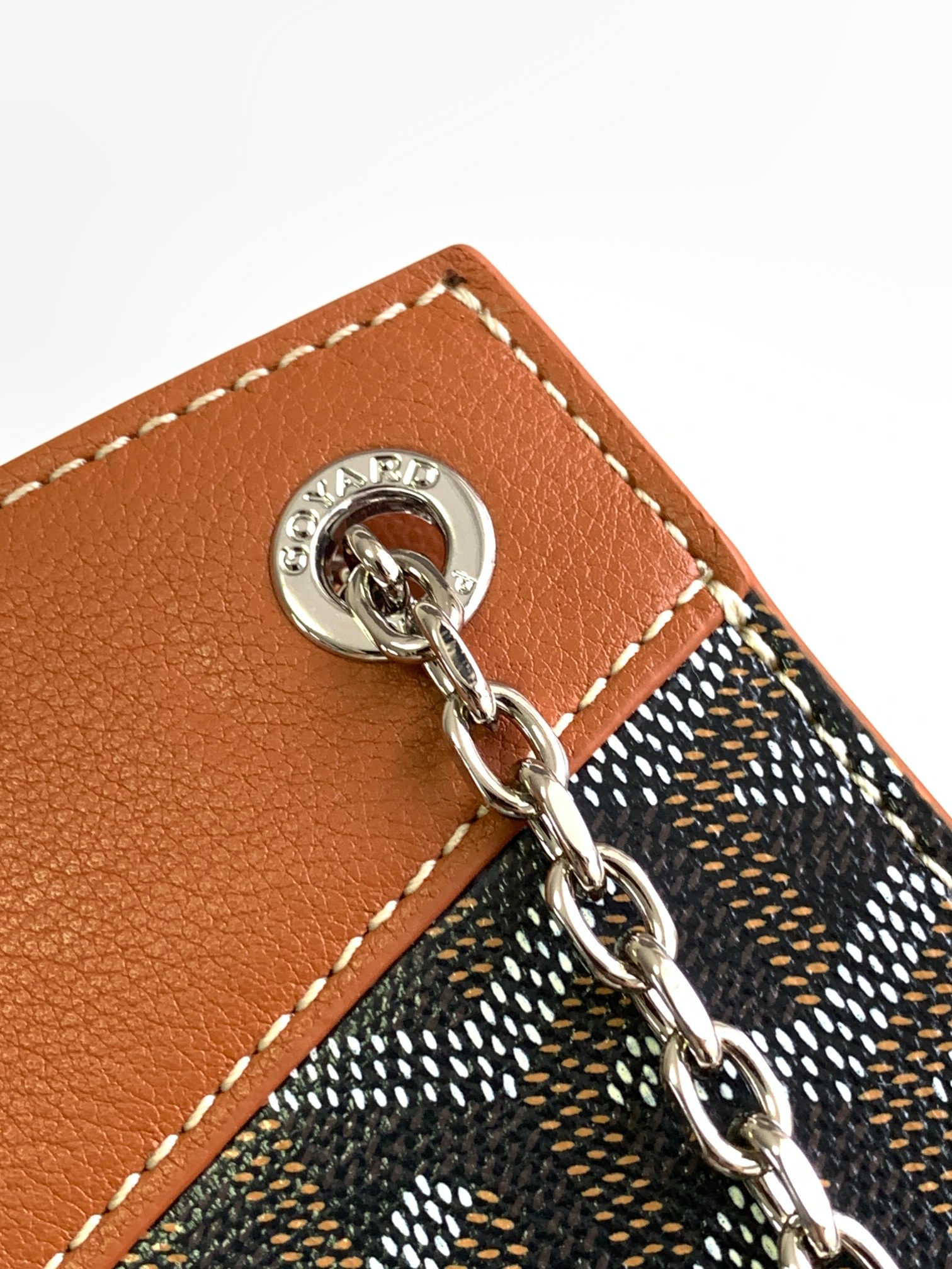 这款包包是AAAAA 1:1 质量 (非常棒). 使用了和原版一模一样的材料. 商标部分也保持了和Goyard一样. 图片拍摄是实物包包拍摄, 您所收到的实物保证和我们图片一模一样.