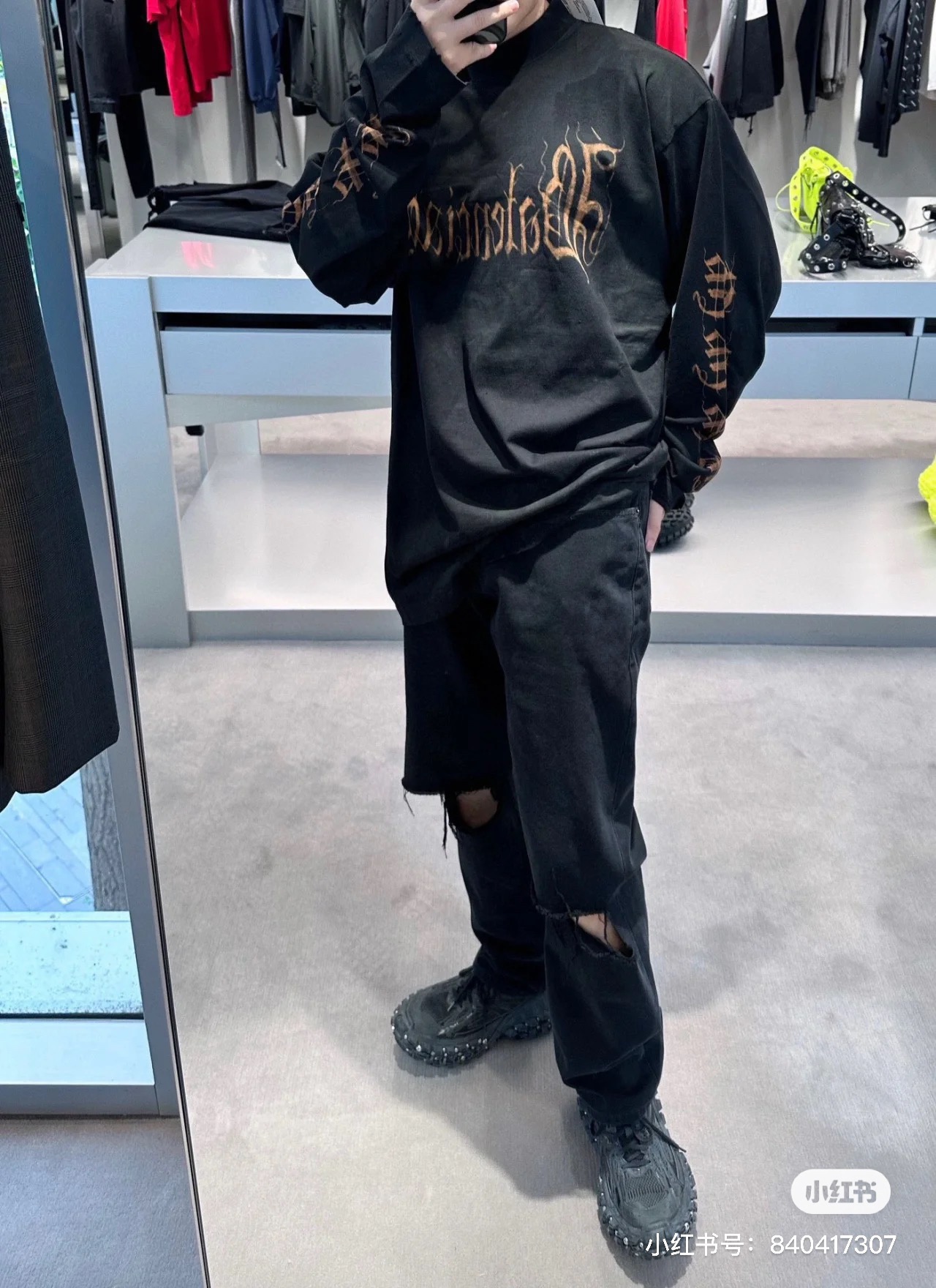 这款衣服是AAAAA 1:1 质量 (非常棒). 使用了和原版一模一样的材料. 商标部分也保持了和巴黎世家/Balenciaga一样. 图片拍摄是实物衣服拍摄, 您所收到的实物保证和我们图片一模一样.